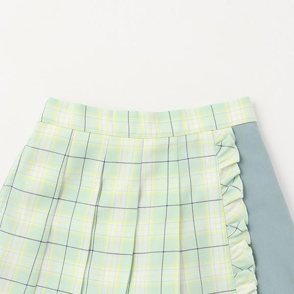 T/R 面料觸感輕盈,厚薄適中,易於穿著,而少女感十足的格紋則會讓你的搭配更上一層樓。