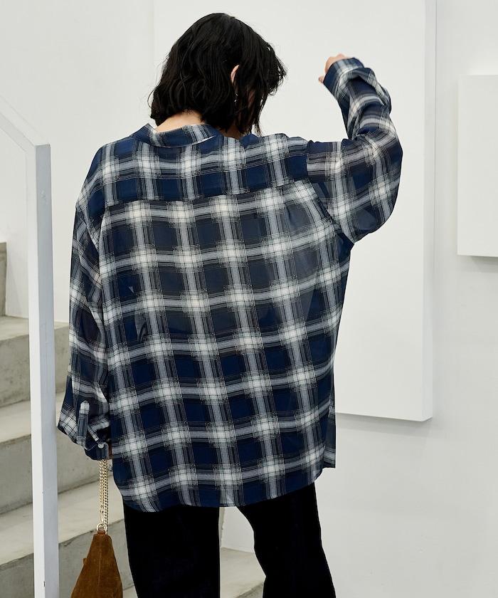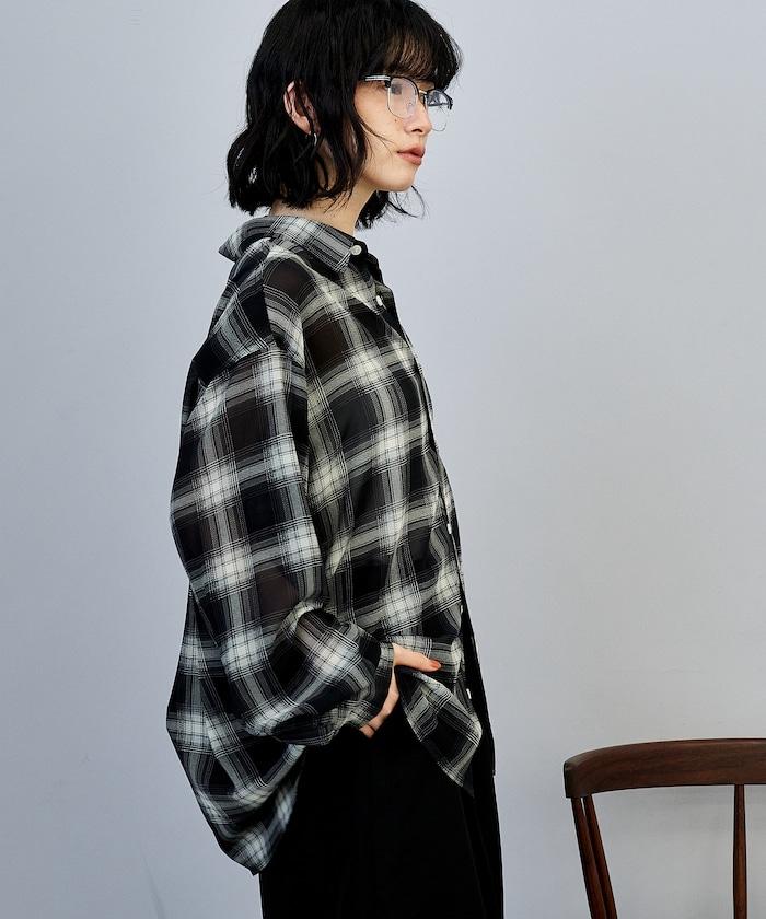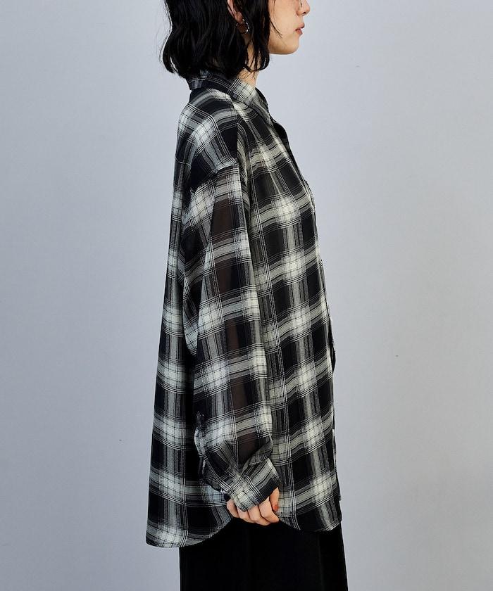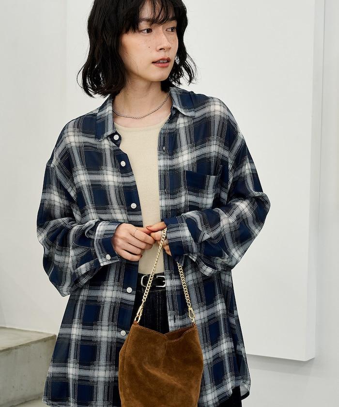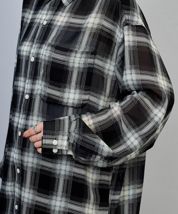 質地輕薄厚實的透視格紋襯衫,正適合換季時穿著。