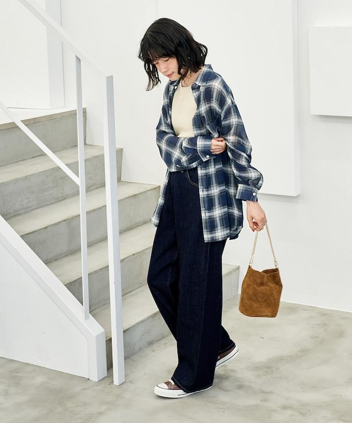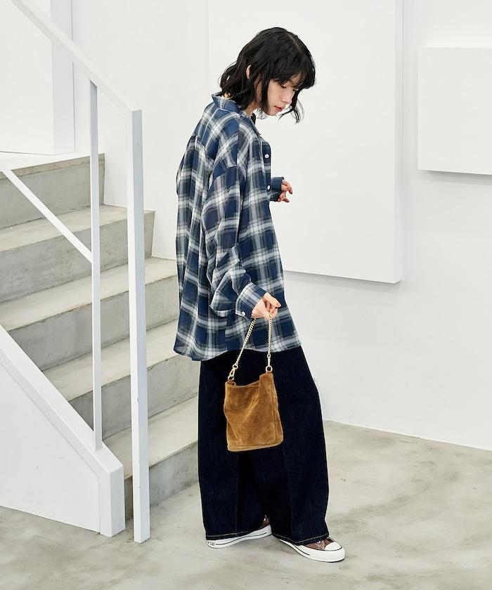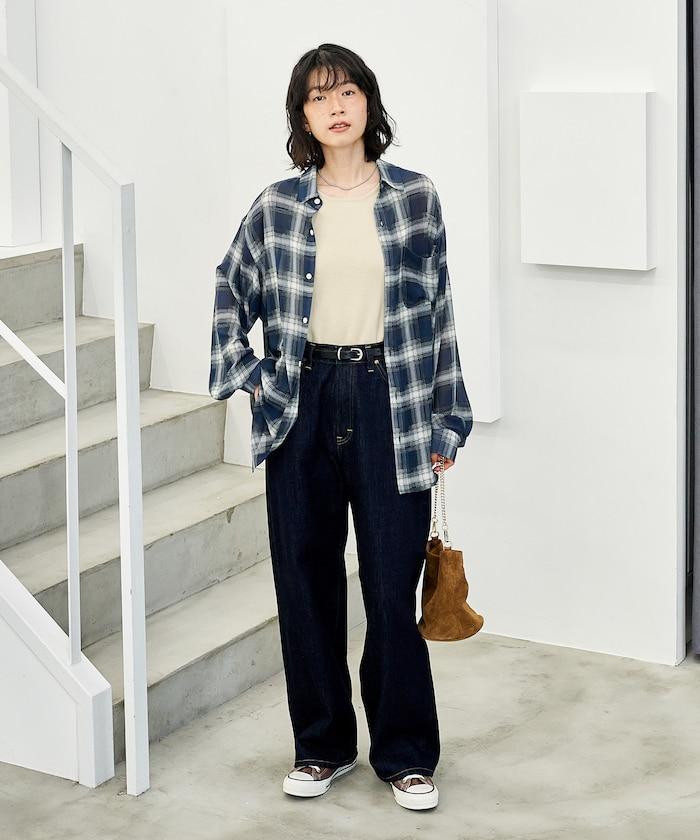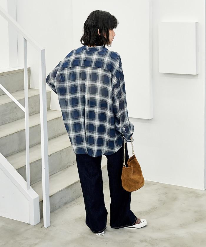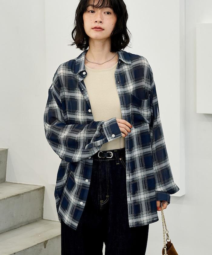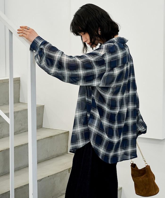 質地輕薄厚實的透視格紋襯衫,正適合換季時穿著。