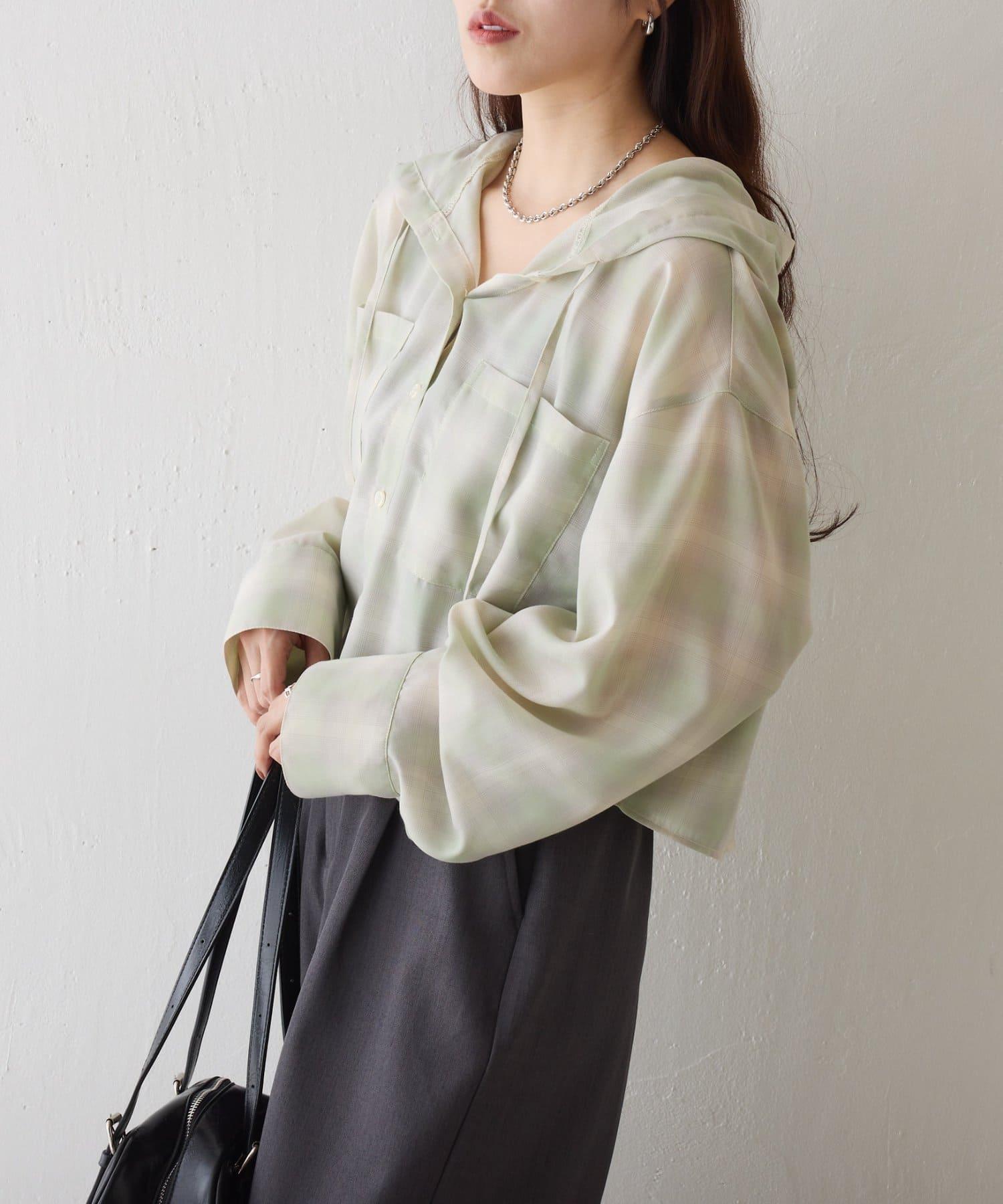 連帽的設計和適度的透明感讓這款單品看起來既休閒又成熟。