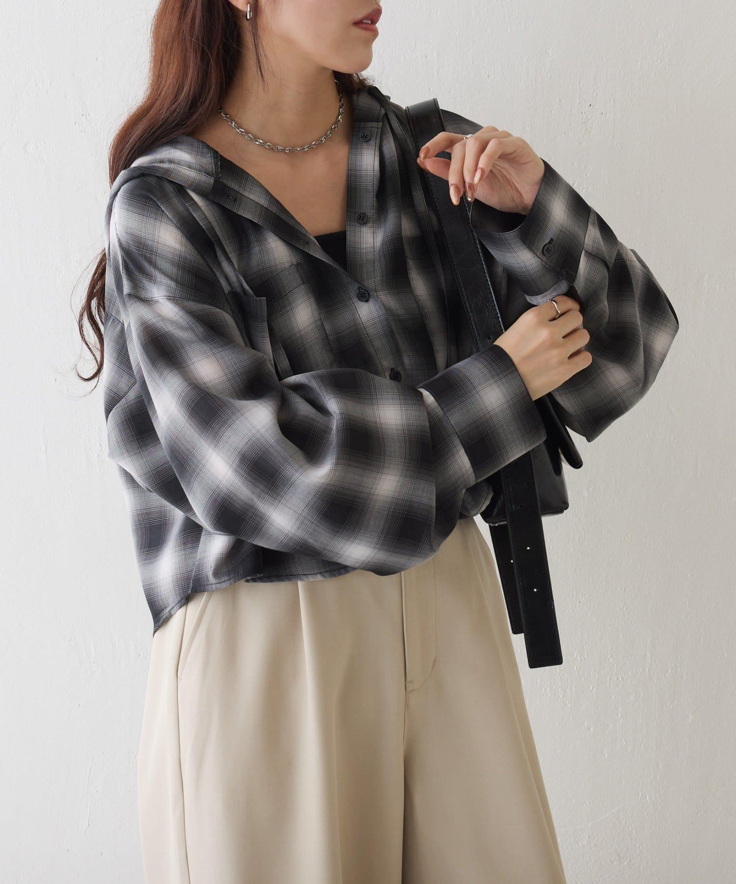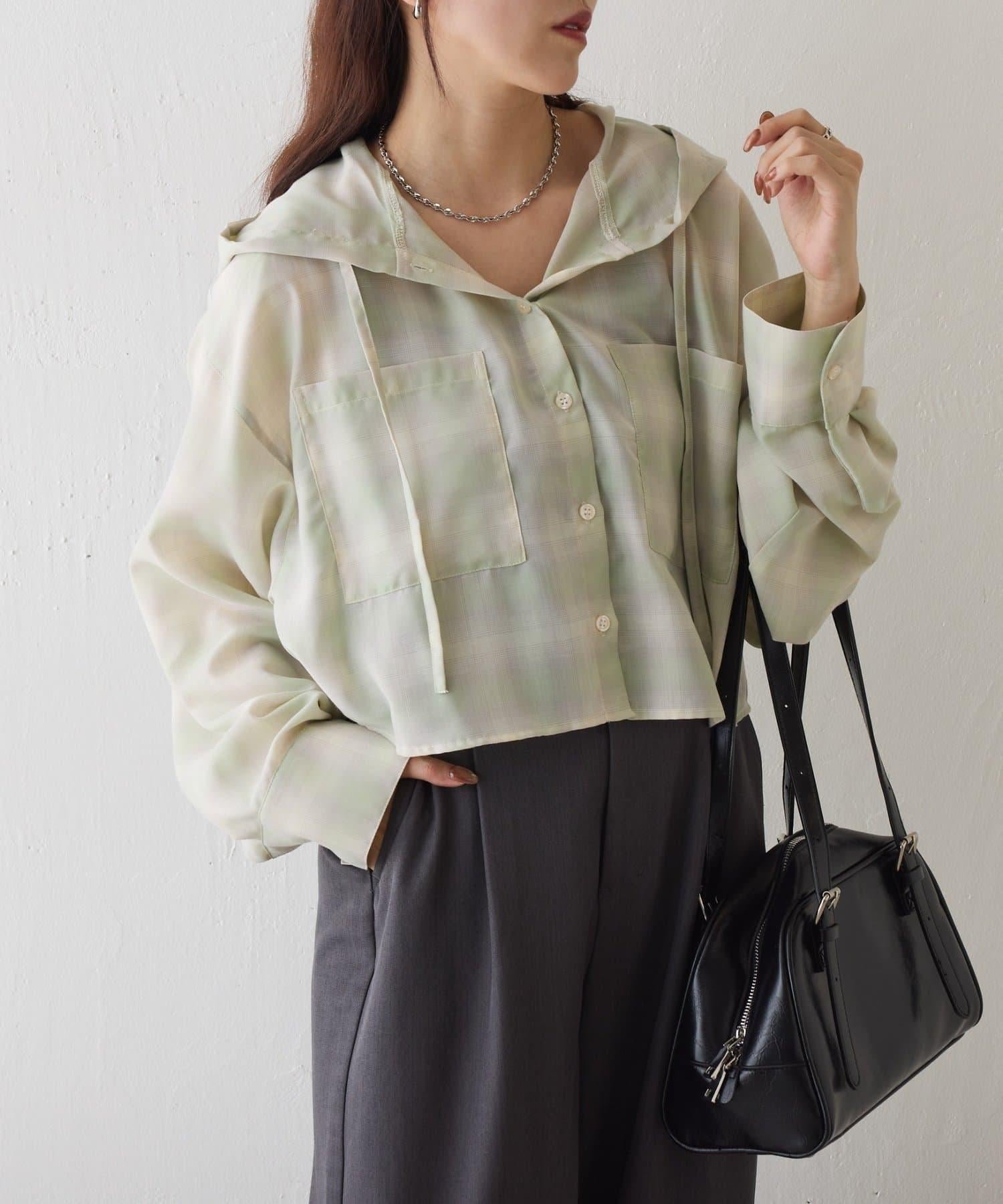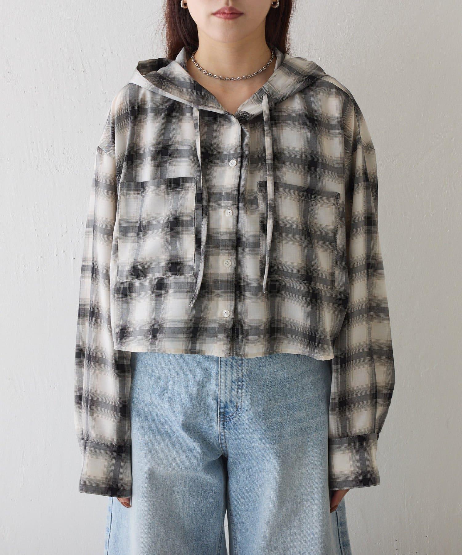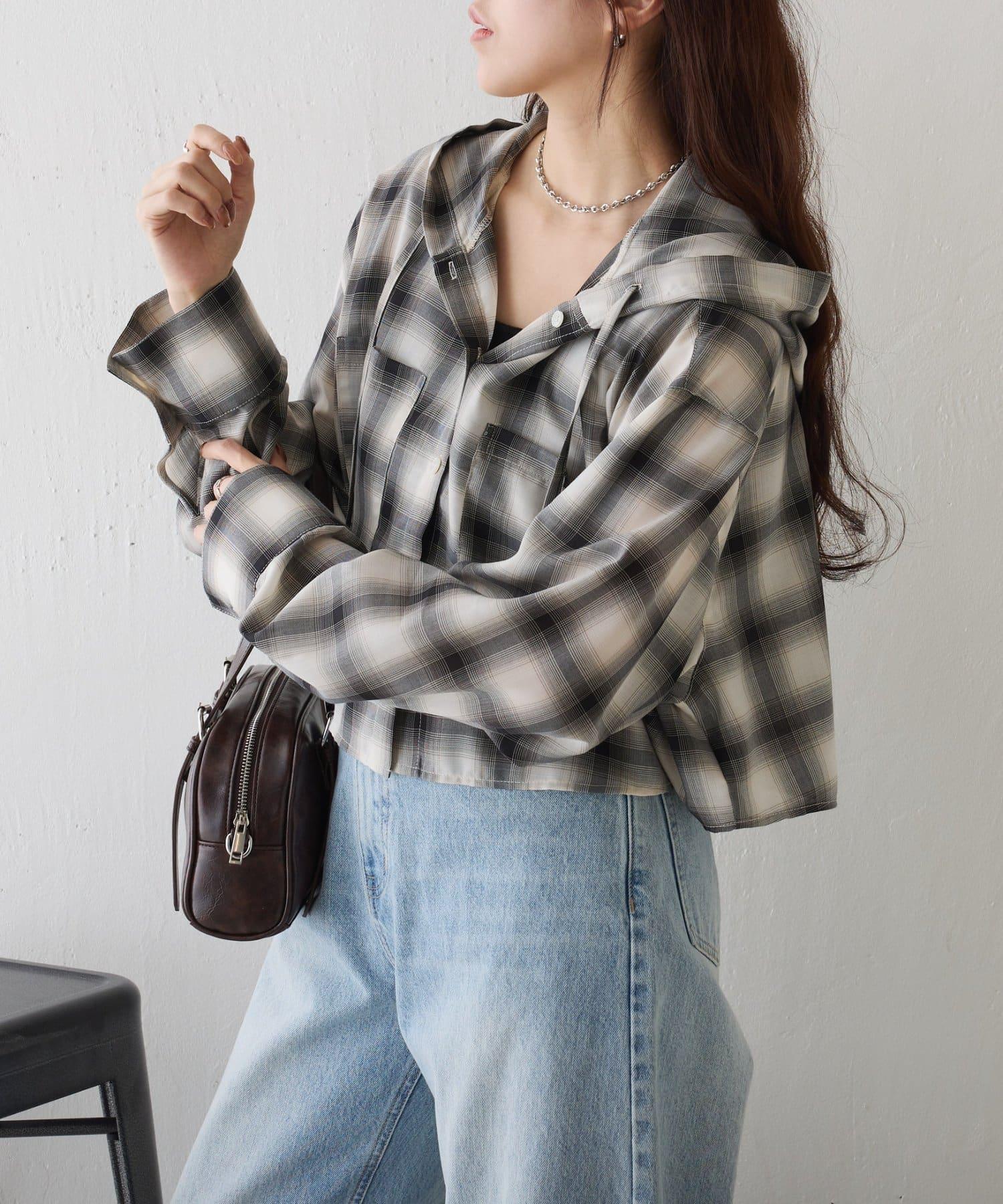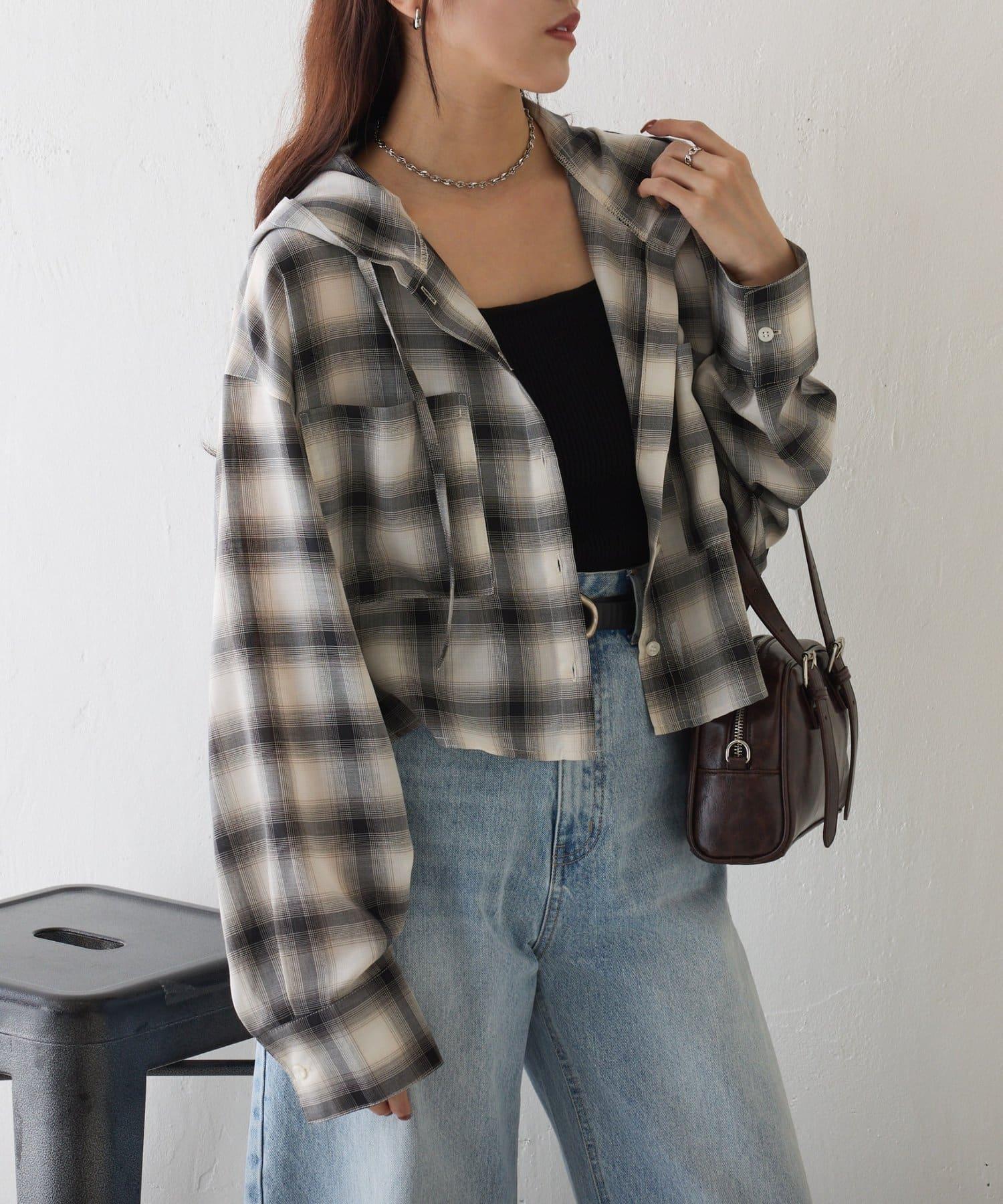 格紋連帽短款襯衫
