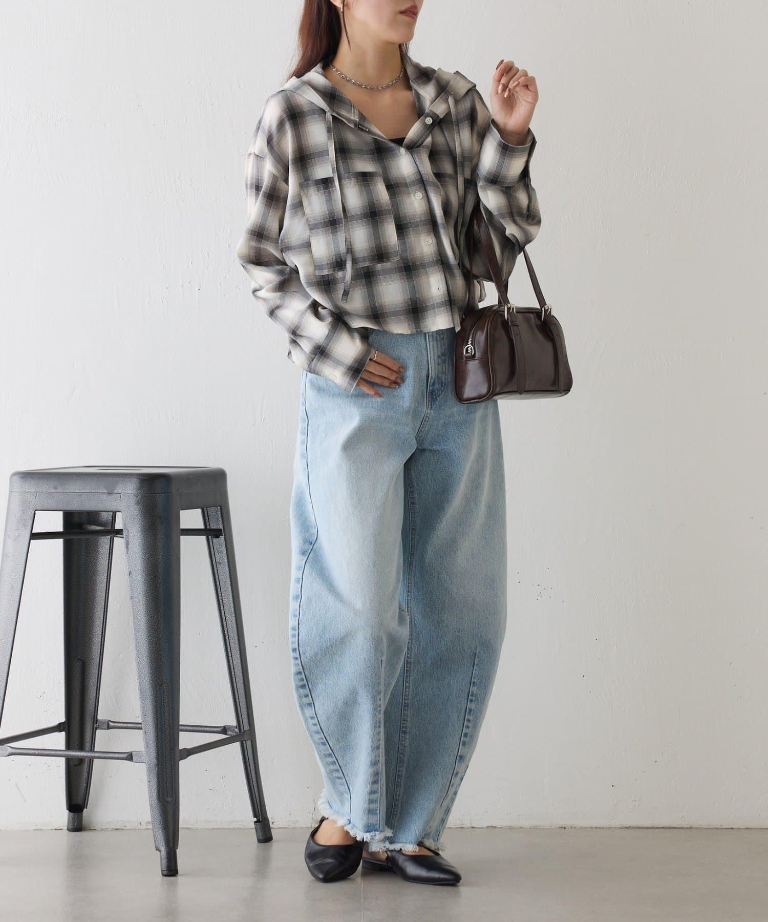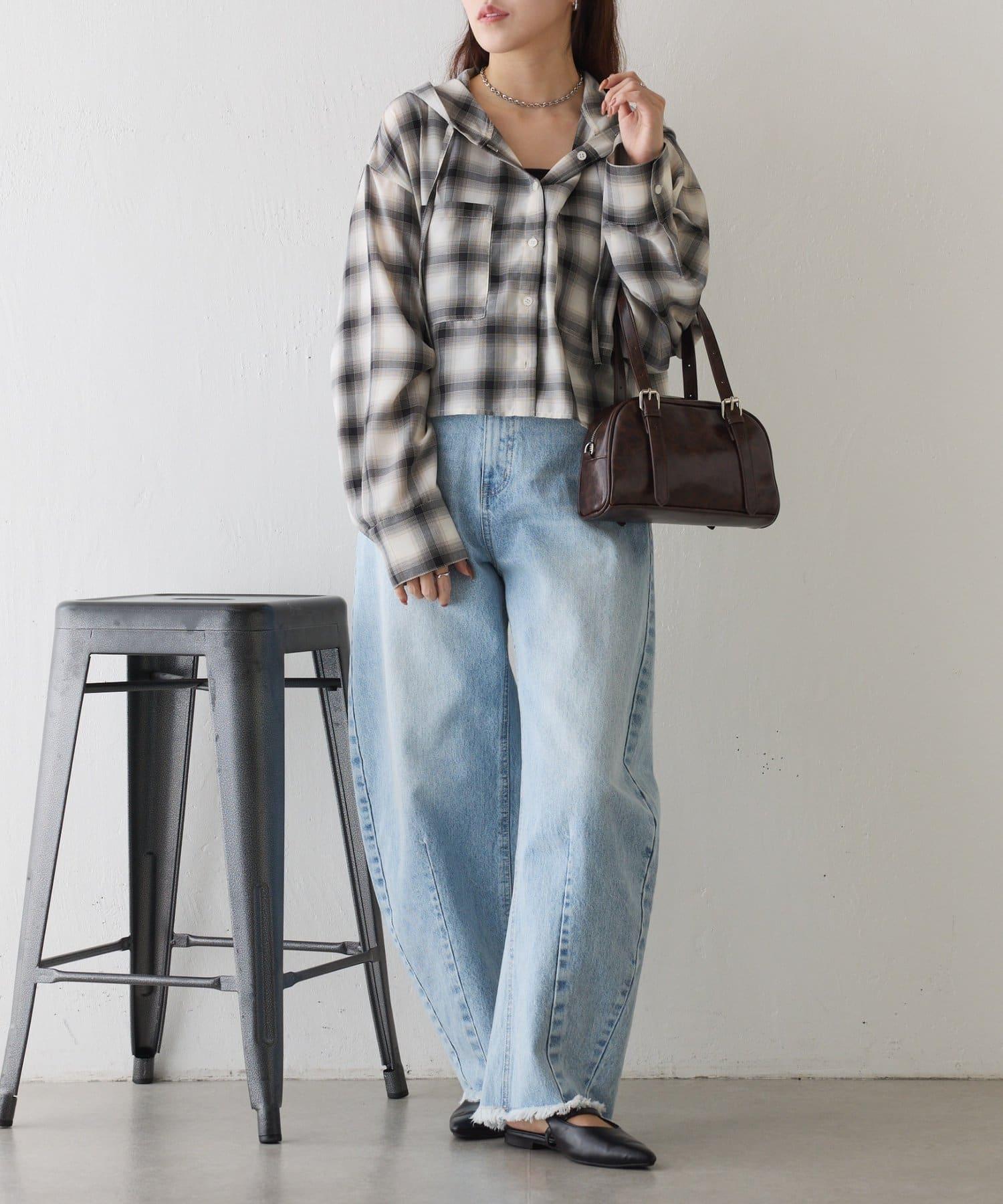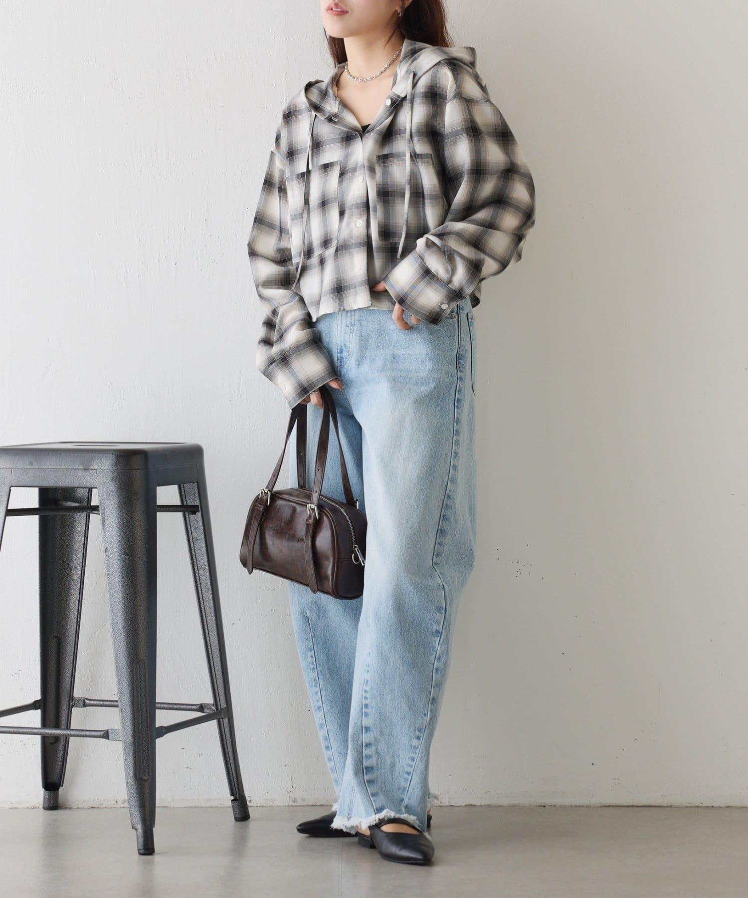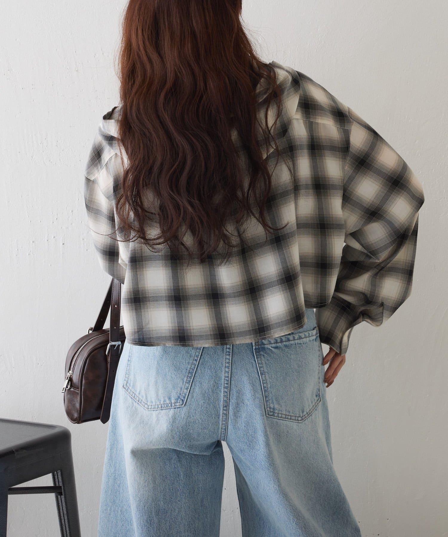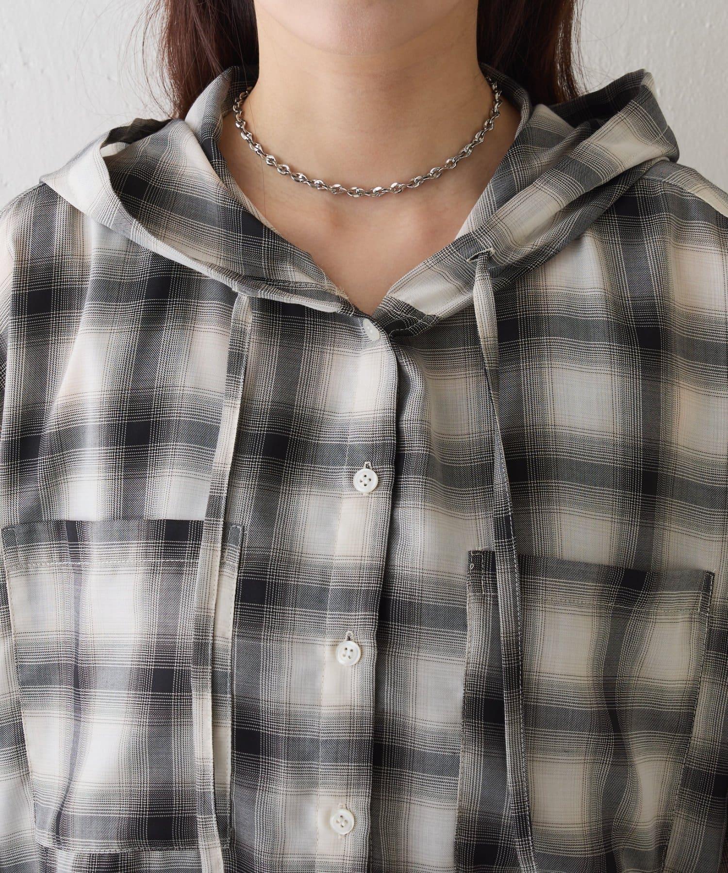 格紋連帽短款襯衫