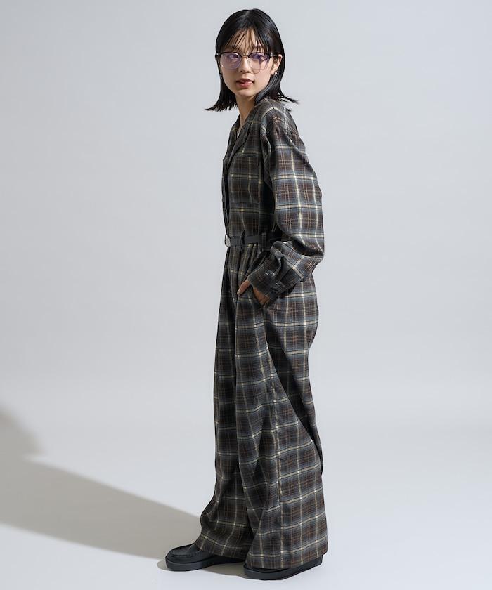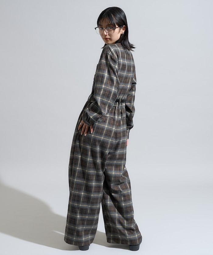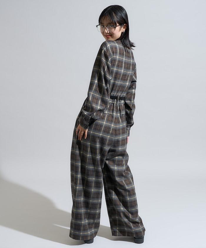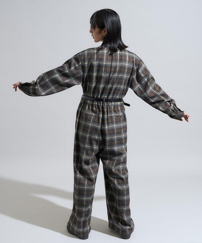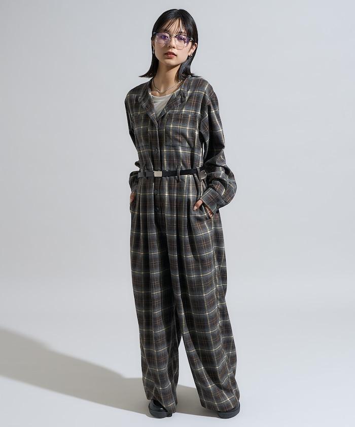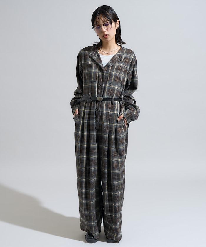 帶有混色格紋的連體褲,在保留工作感的同時,增添了季節感和潮流感。