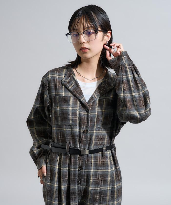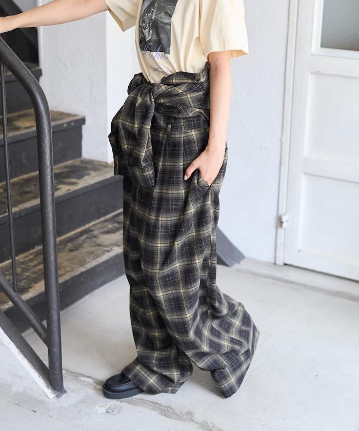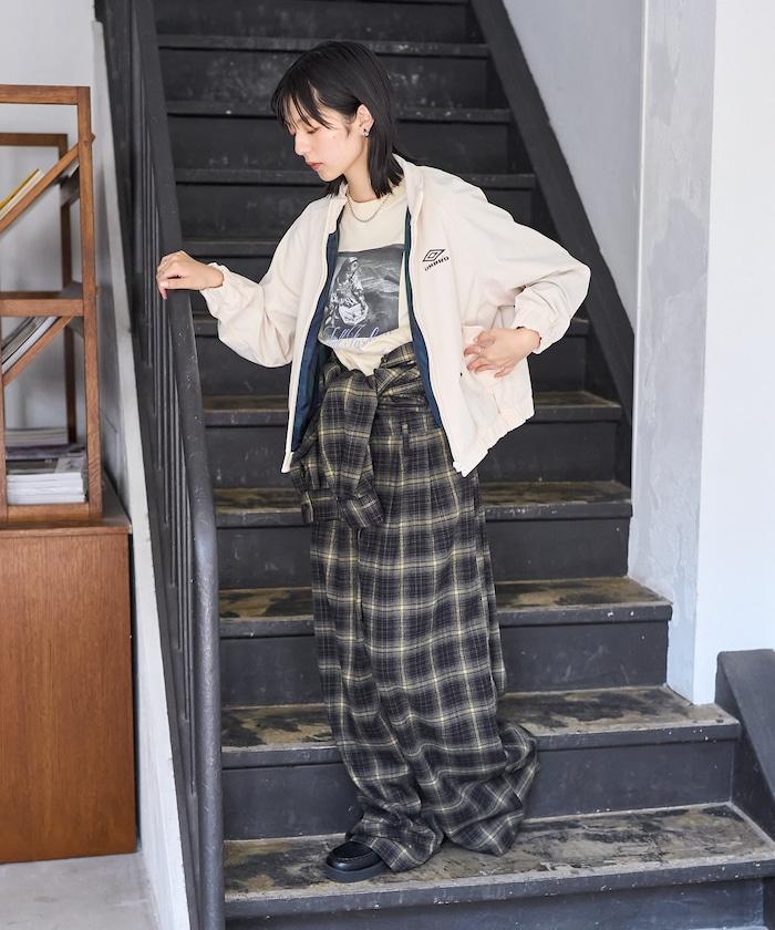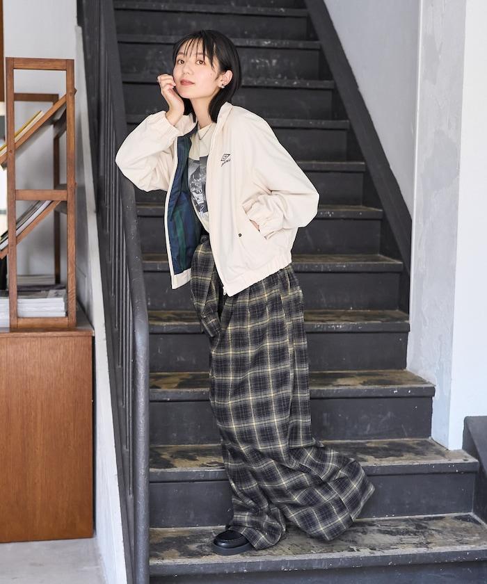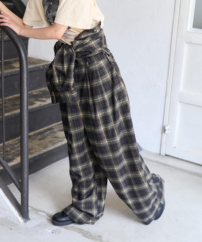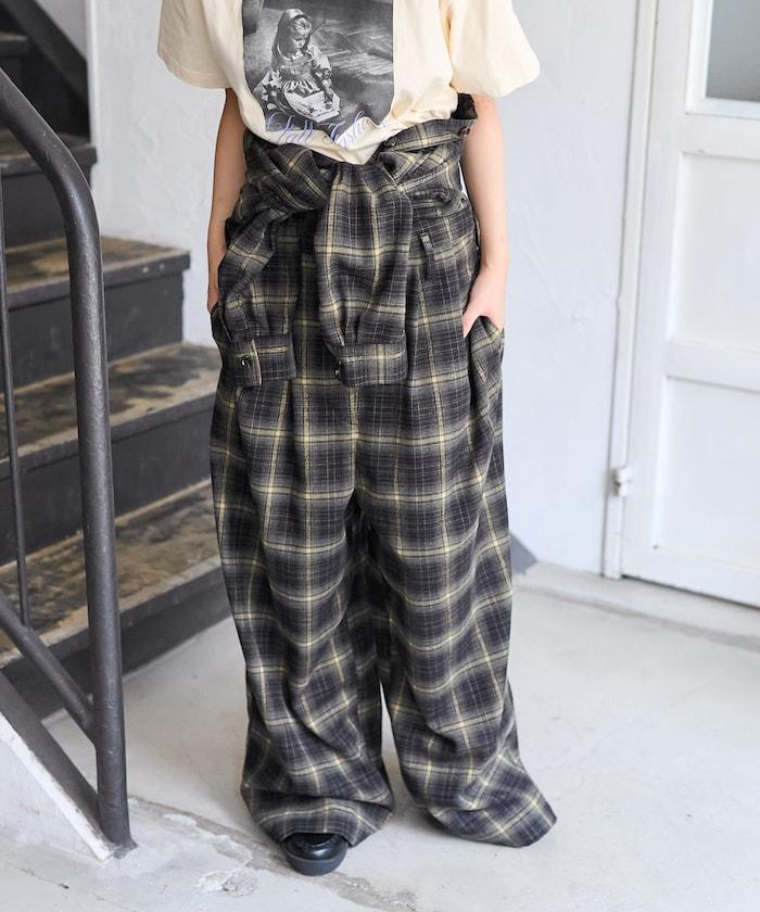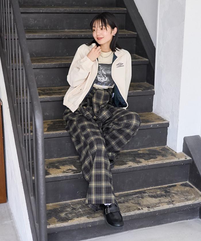 帶有混色格紋的連體褲,在保留工作感的同時,增添了季節感和潮流感。