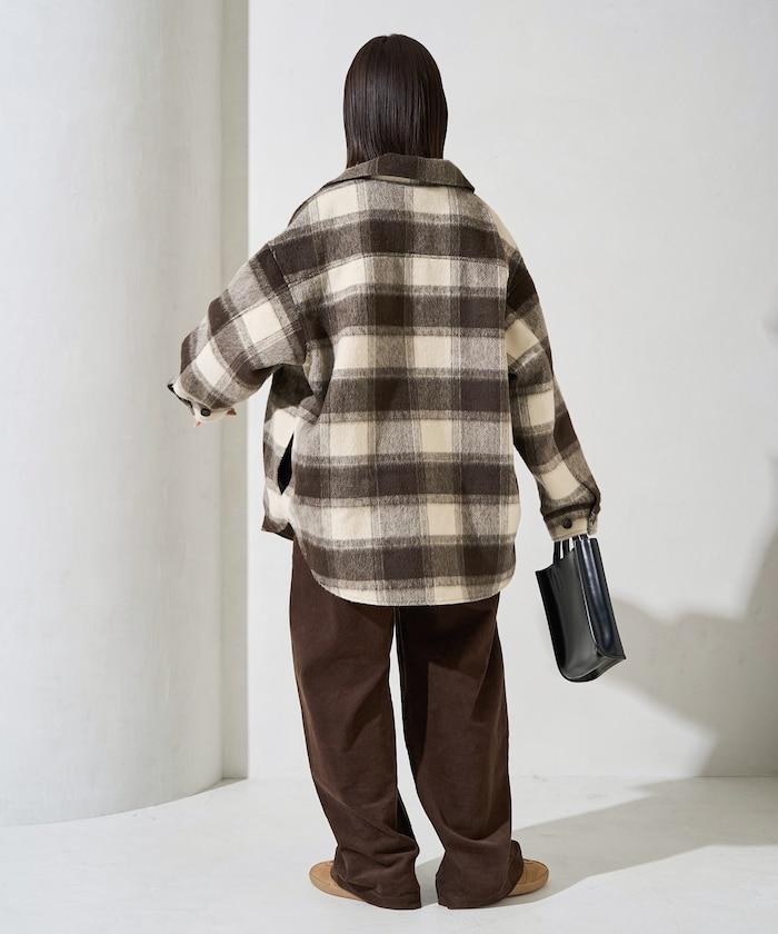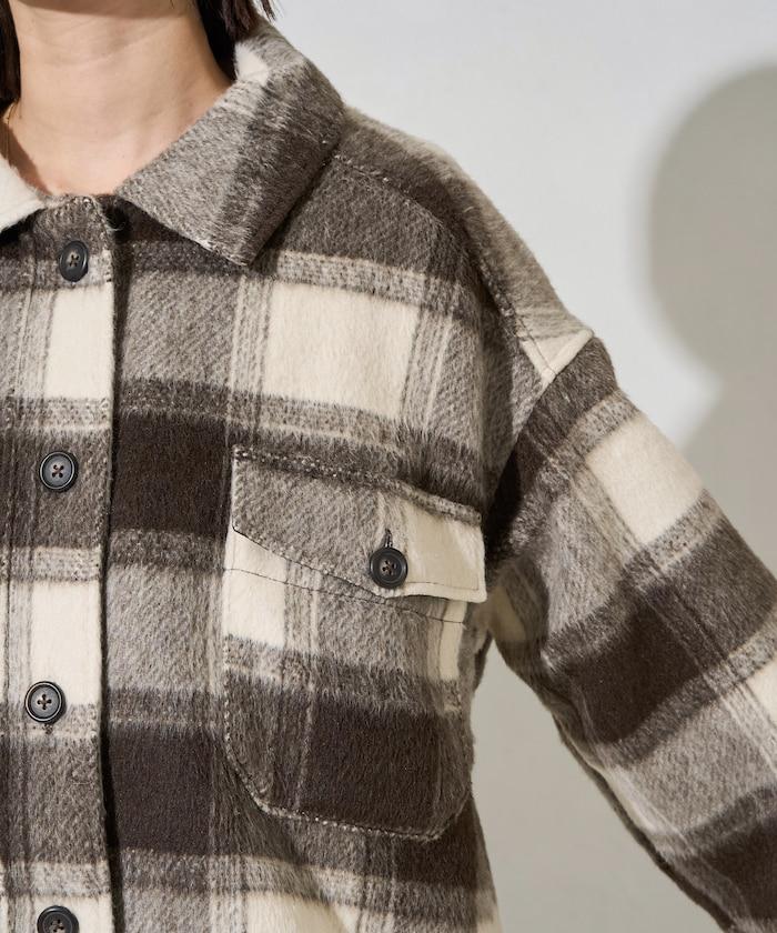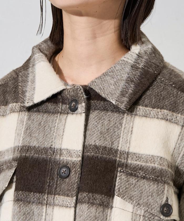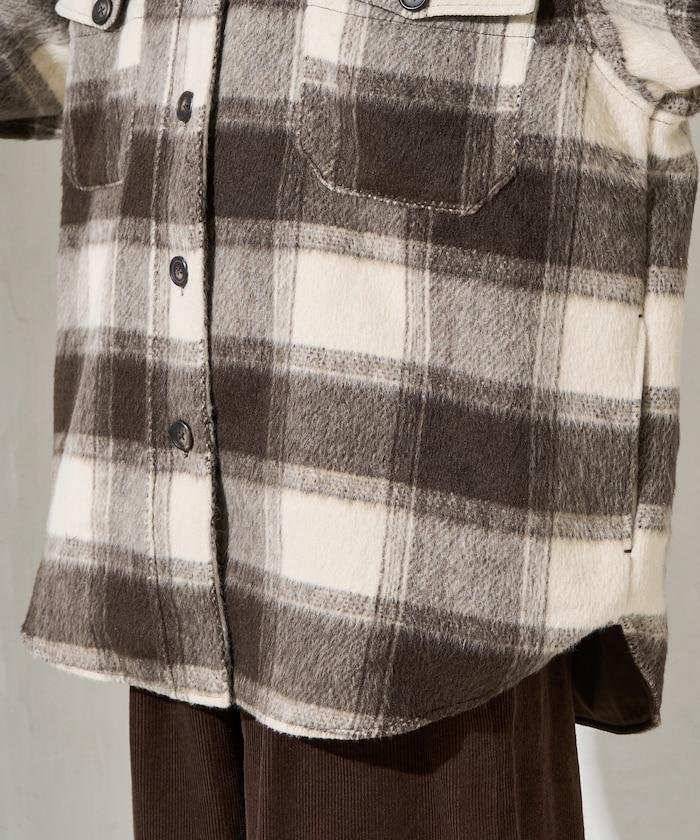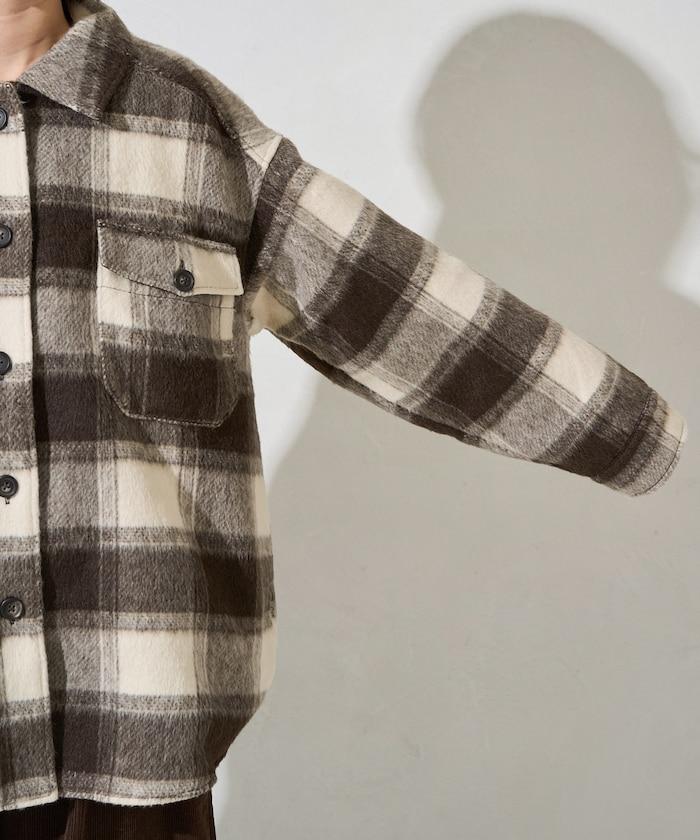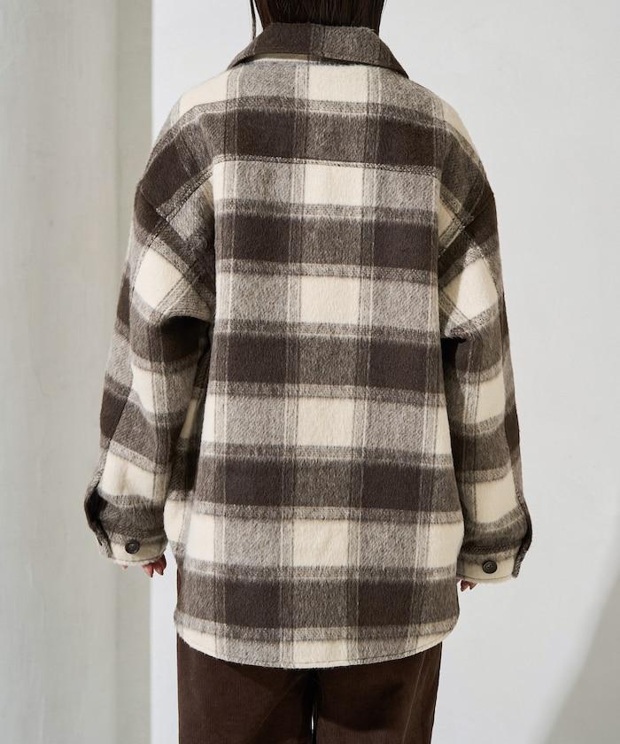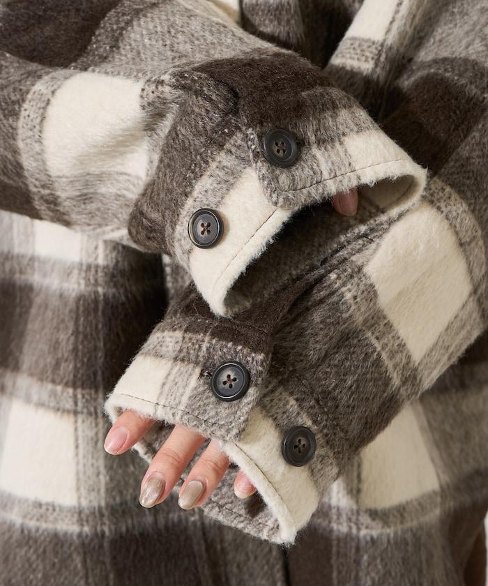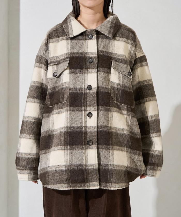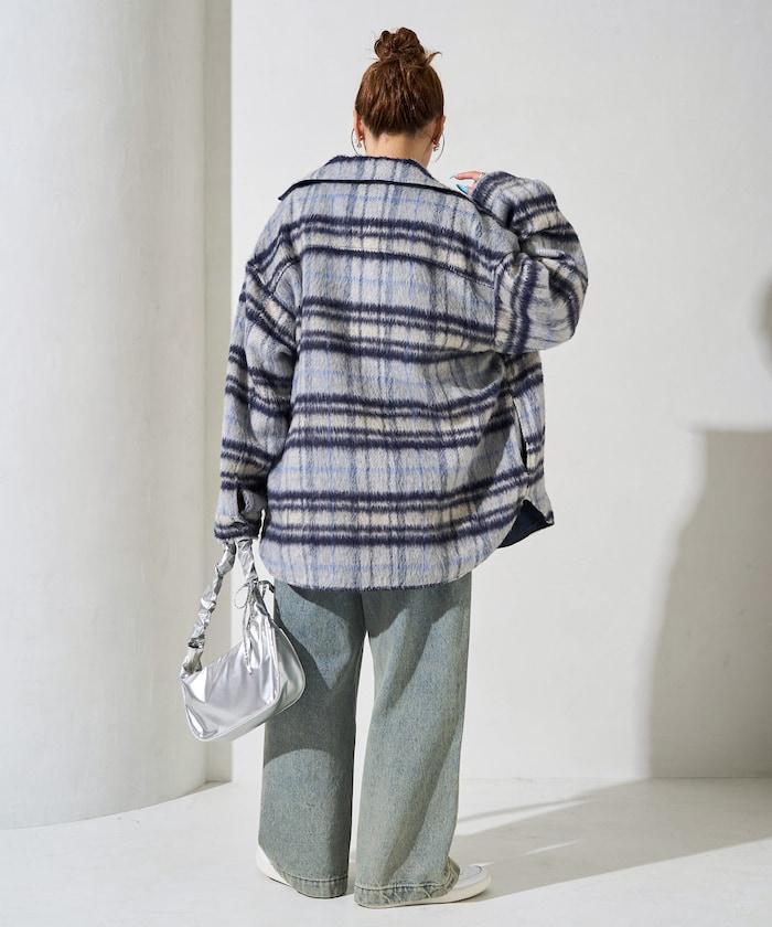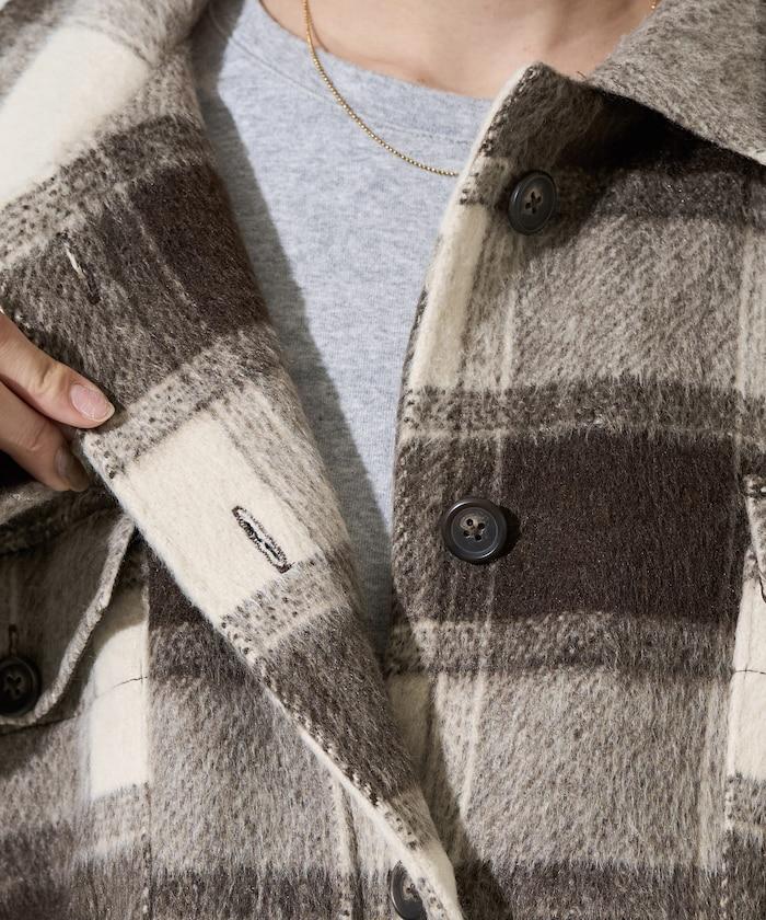 格紋襯衫外套,採用蓬鬆的絨毛面料,手感極佳。