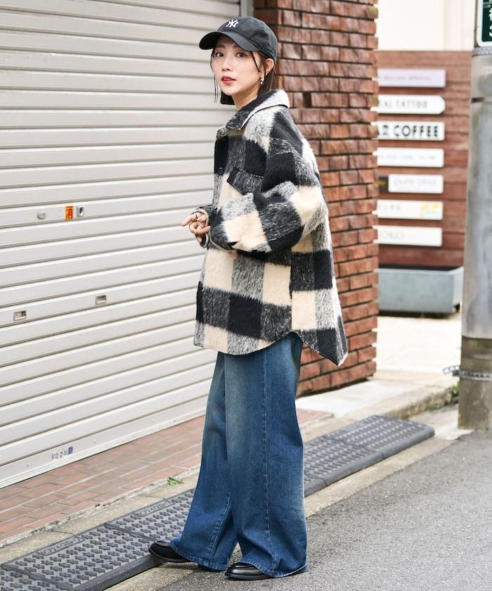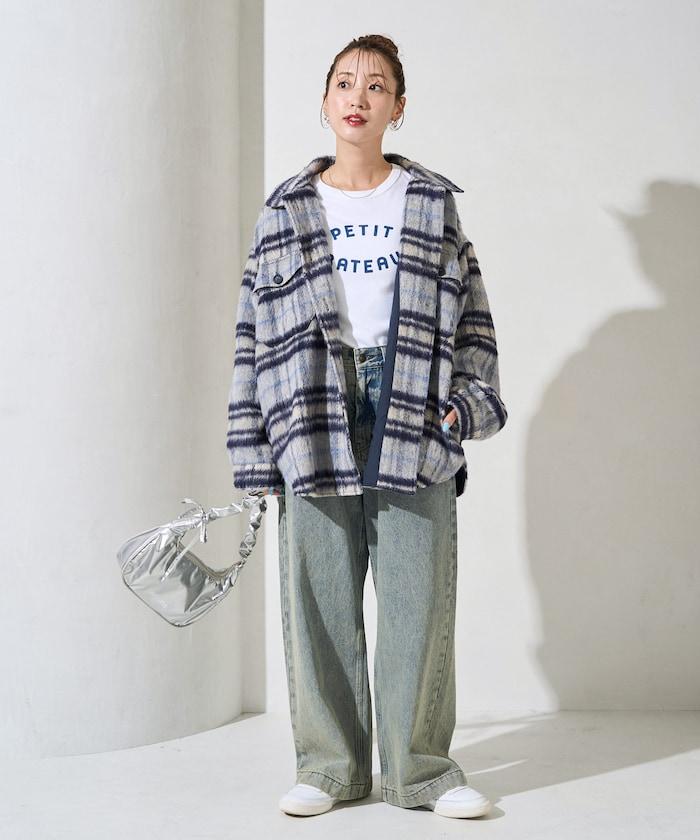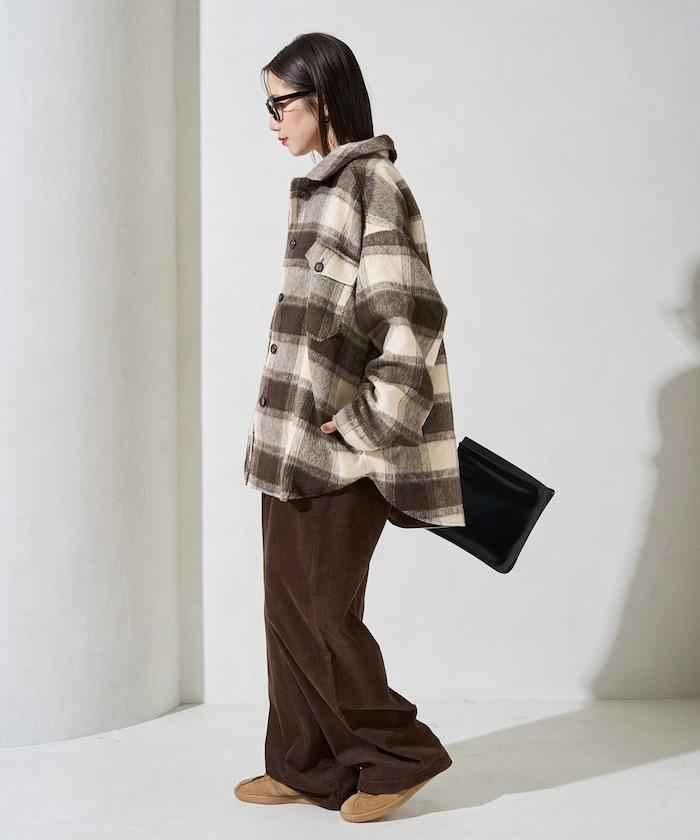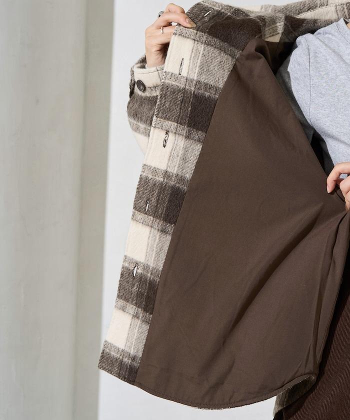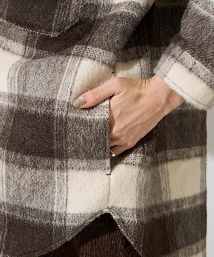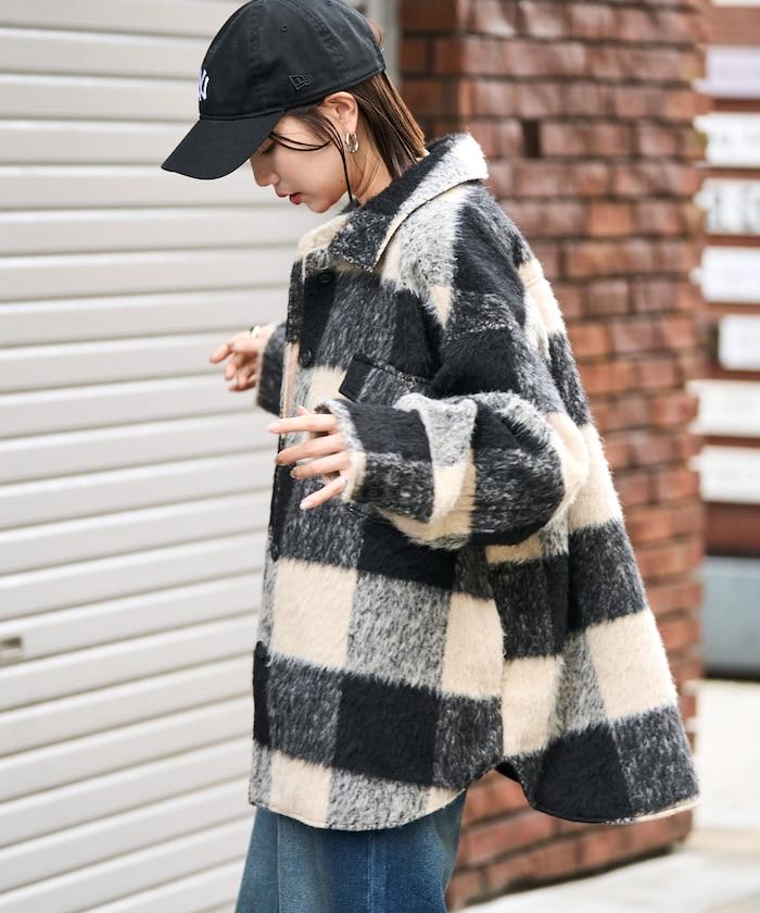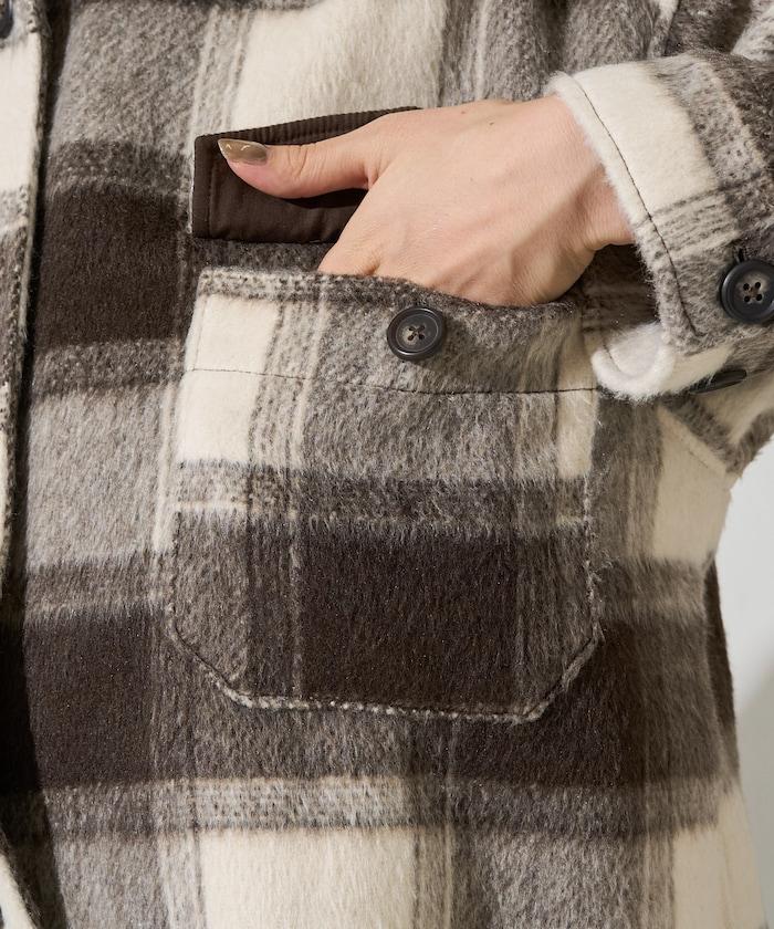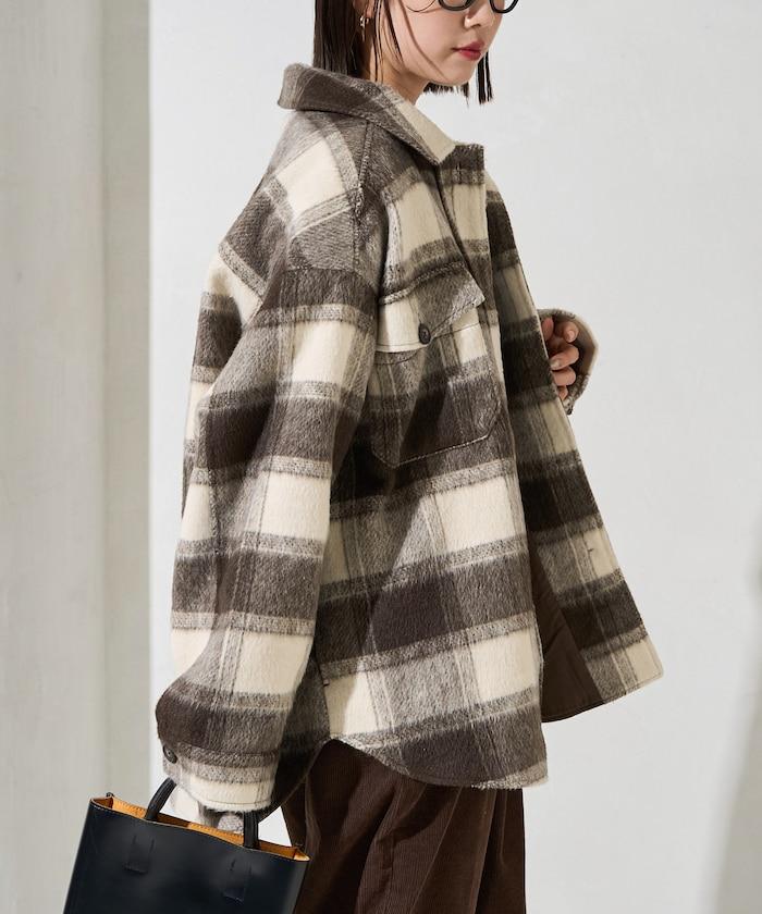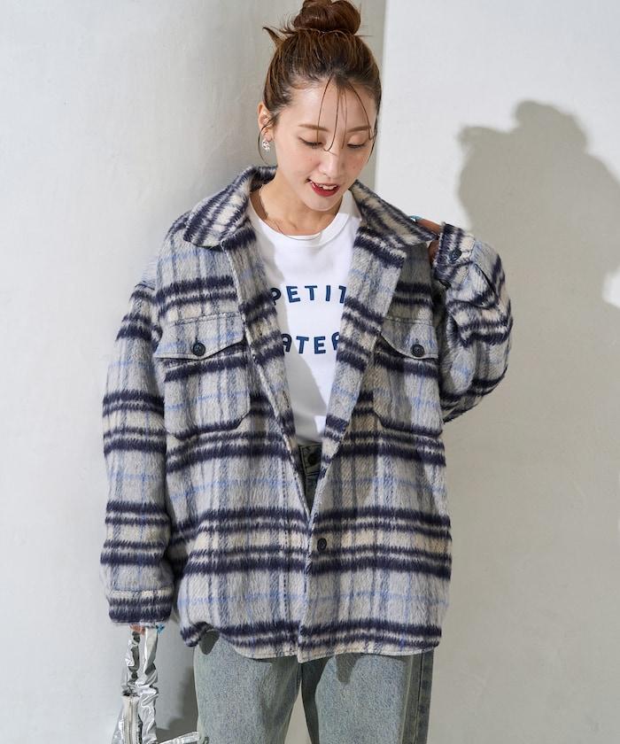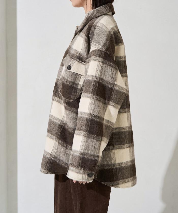 格紋襯衫外套,採用蓬鬆的絨毛面料,手感極佳。