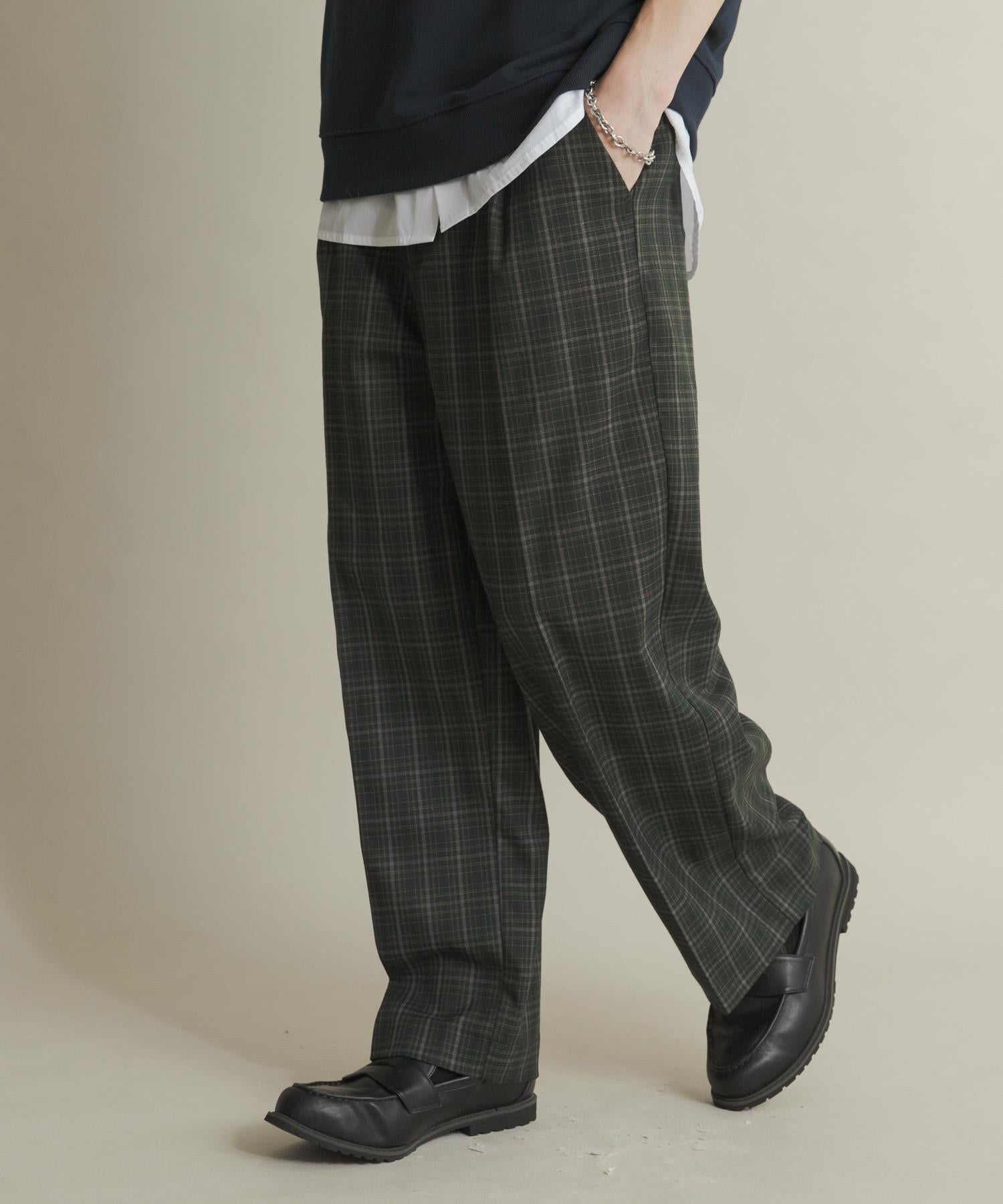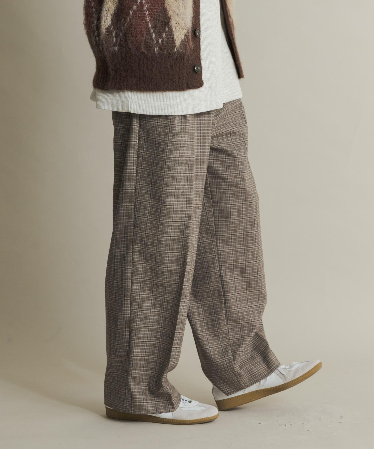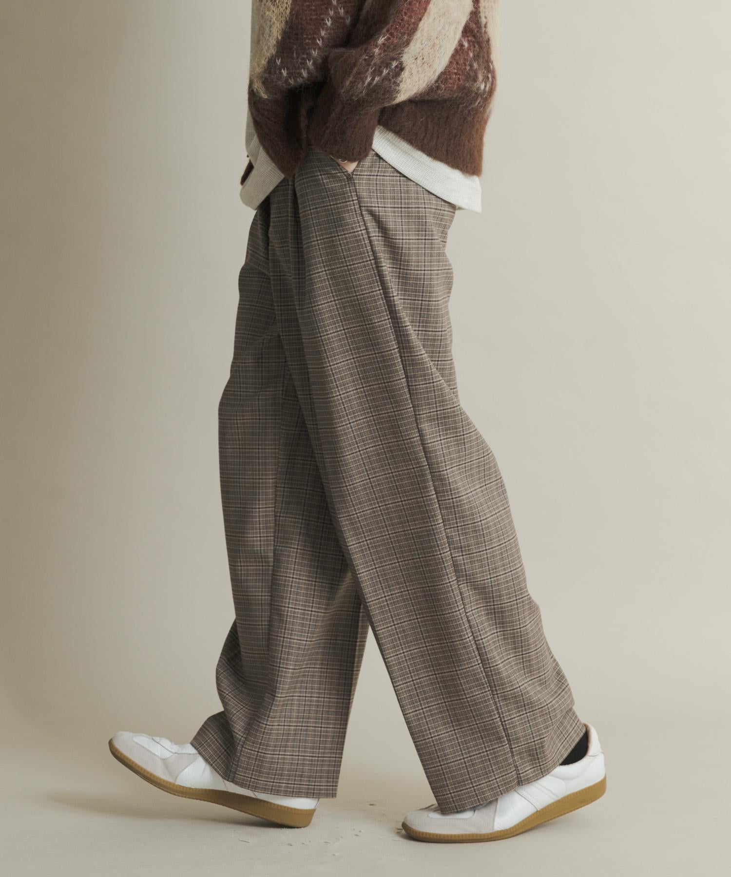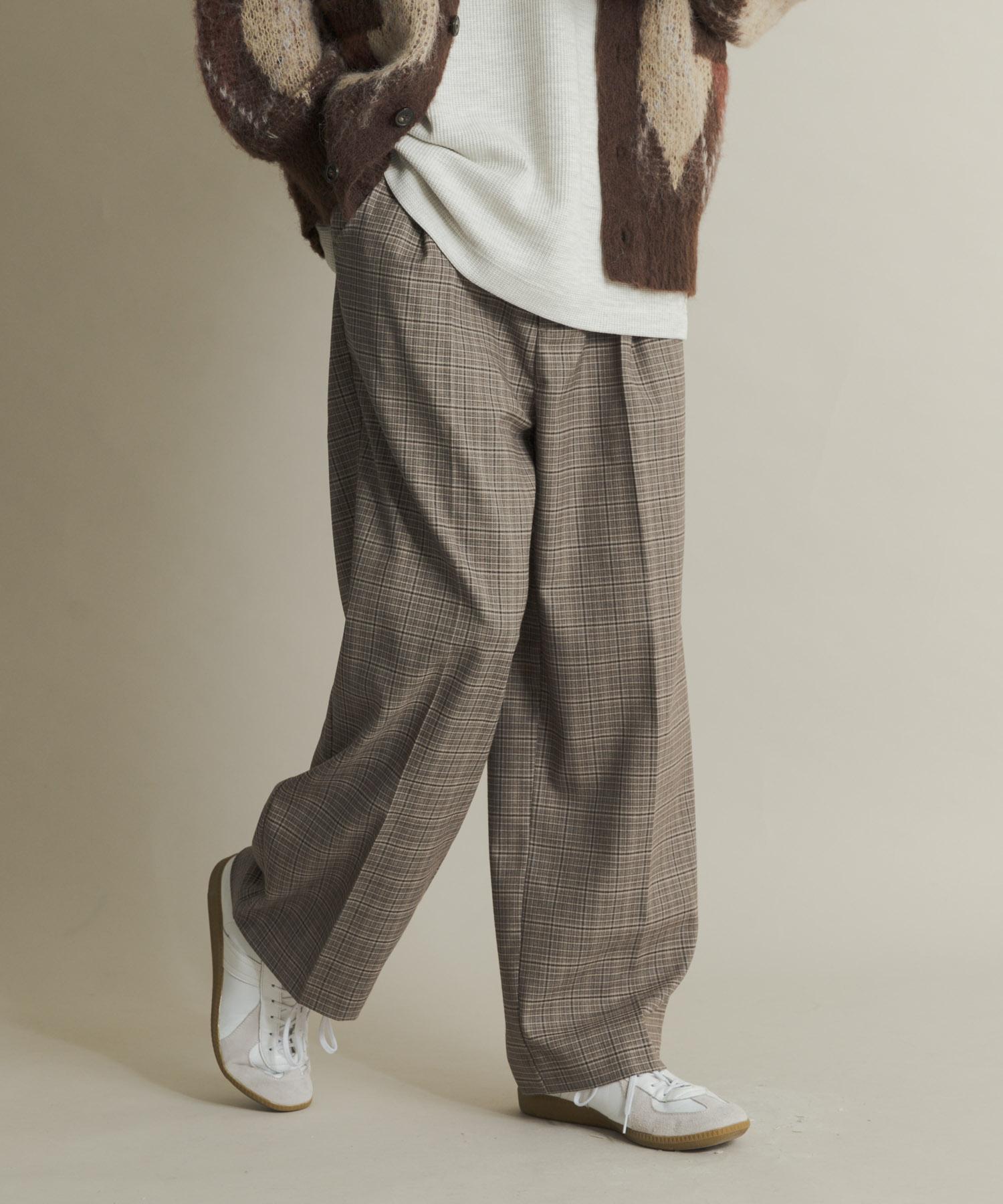 格紋高腰寬鬆西裝褲