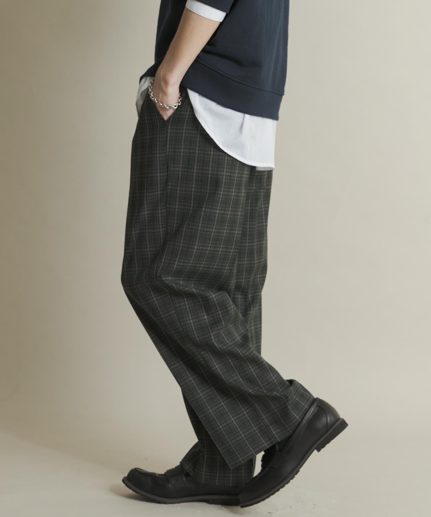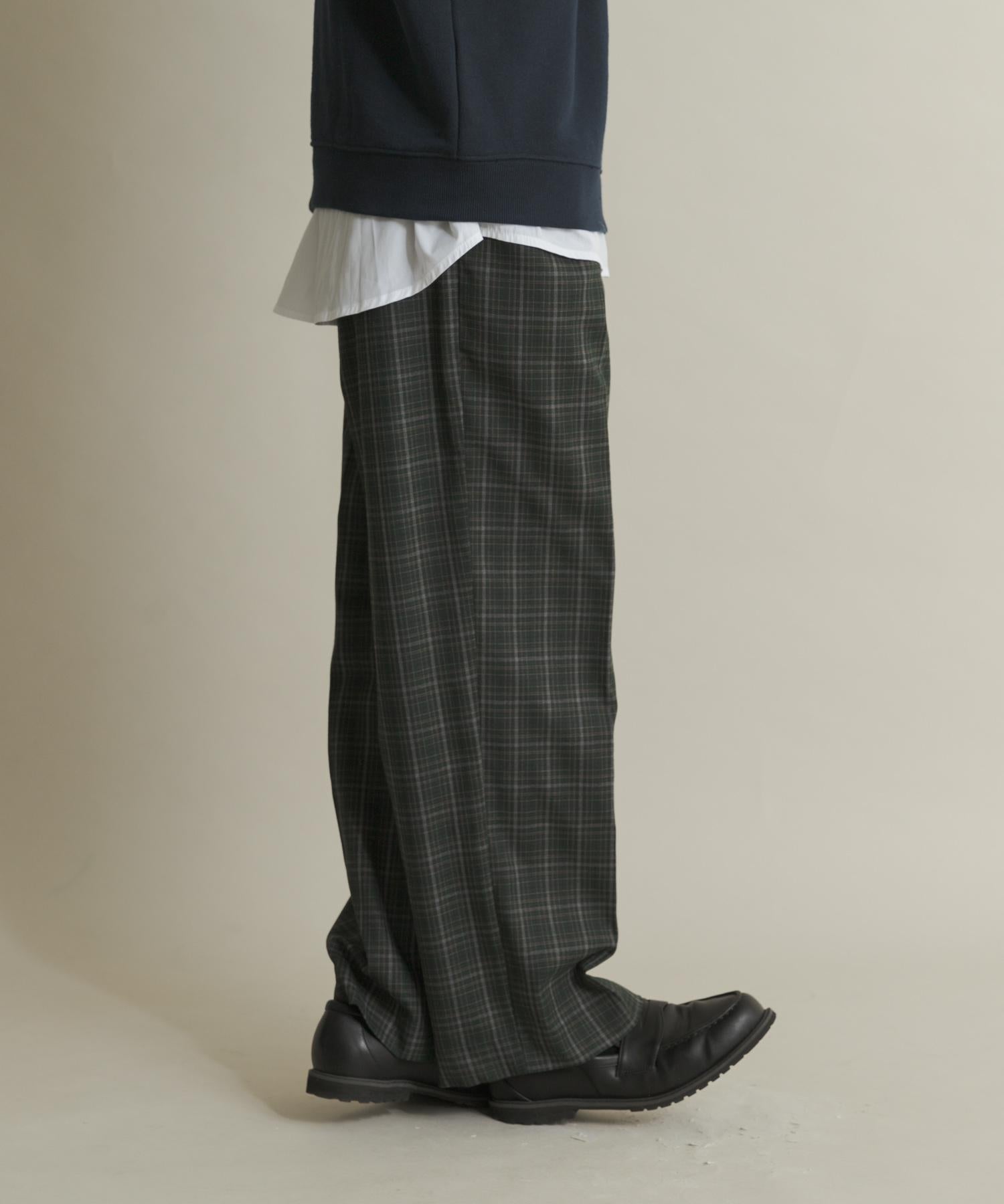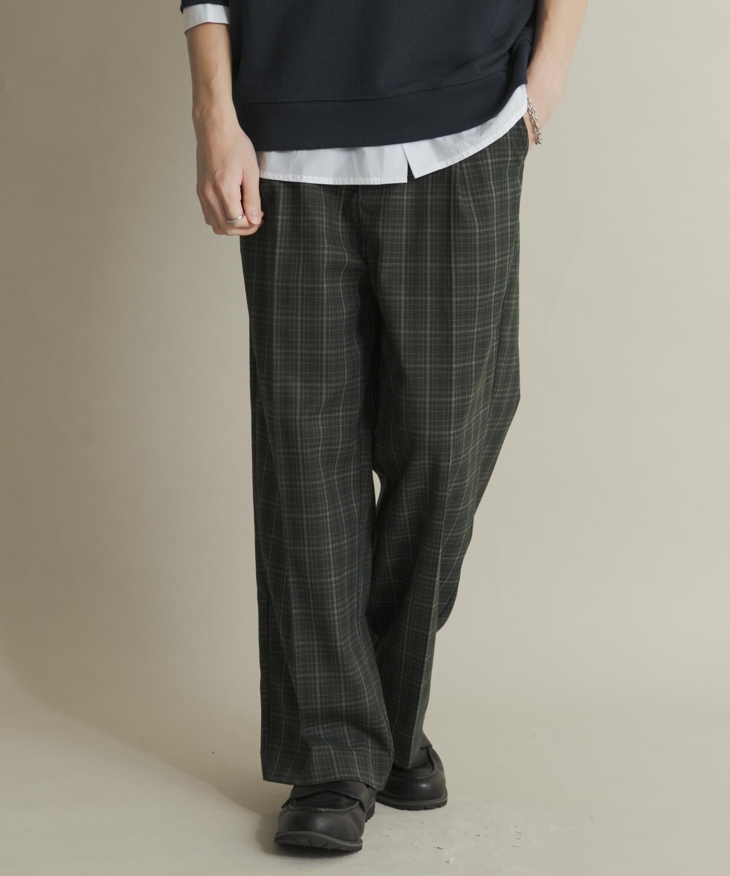 格紋高腰寬鬆西裝褲