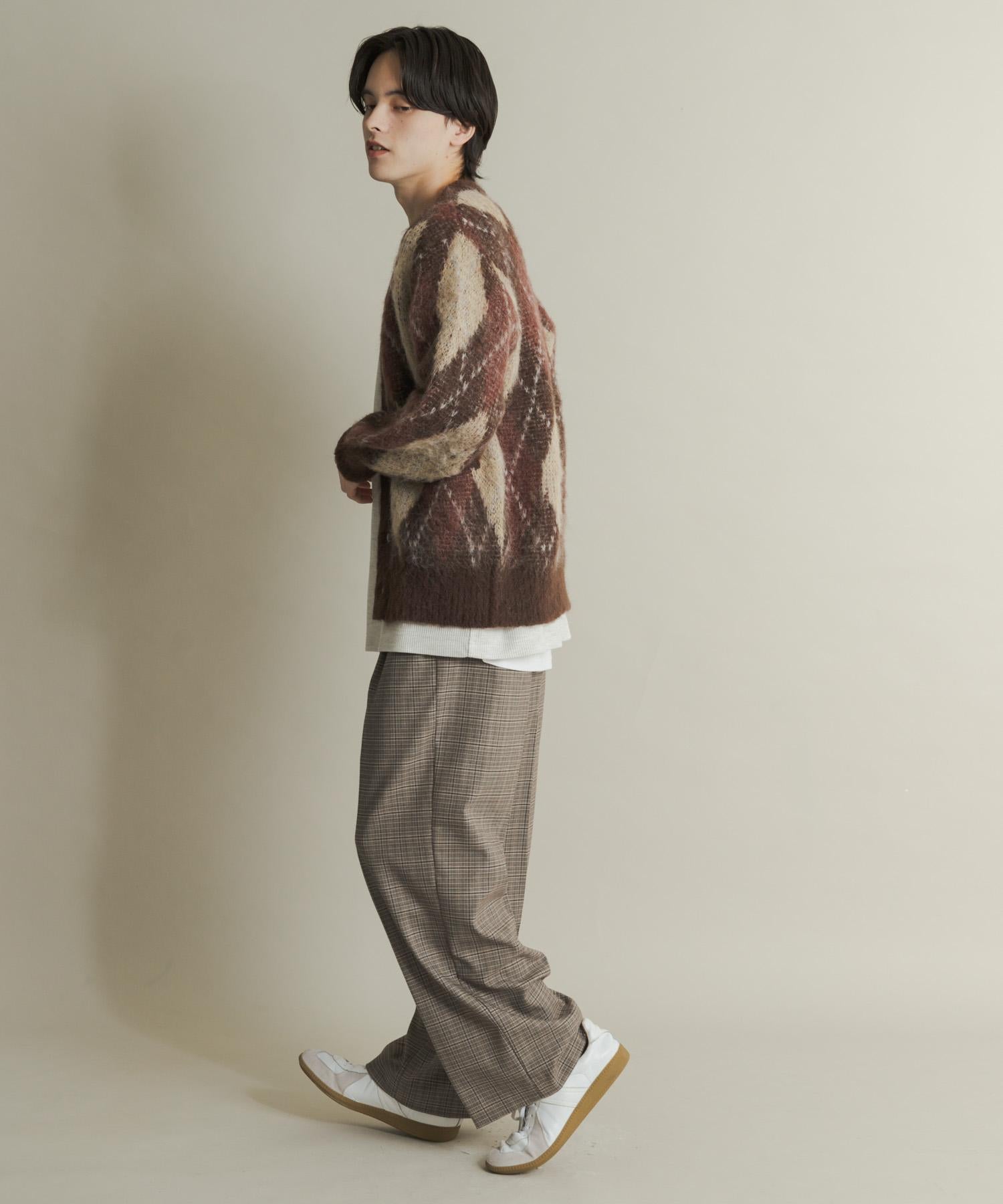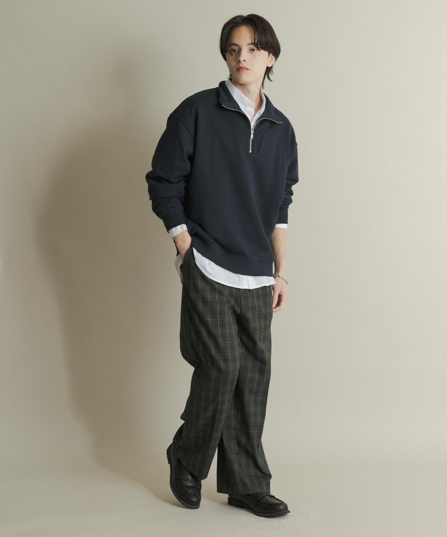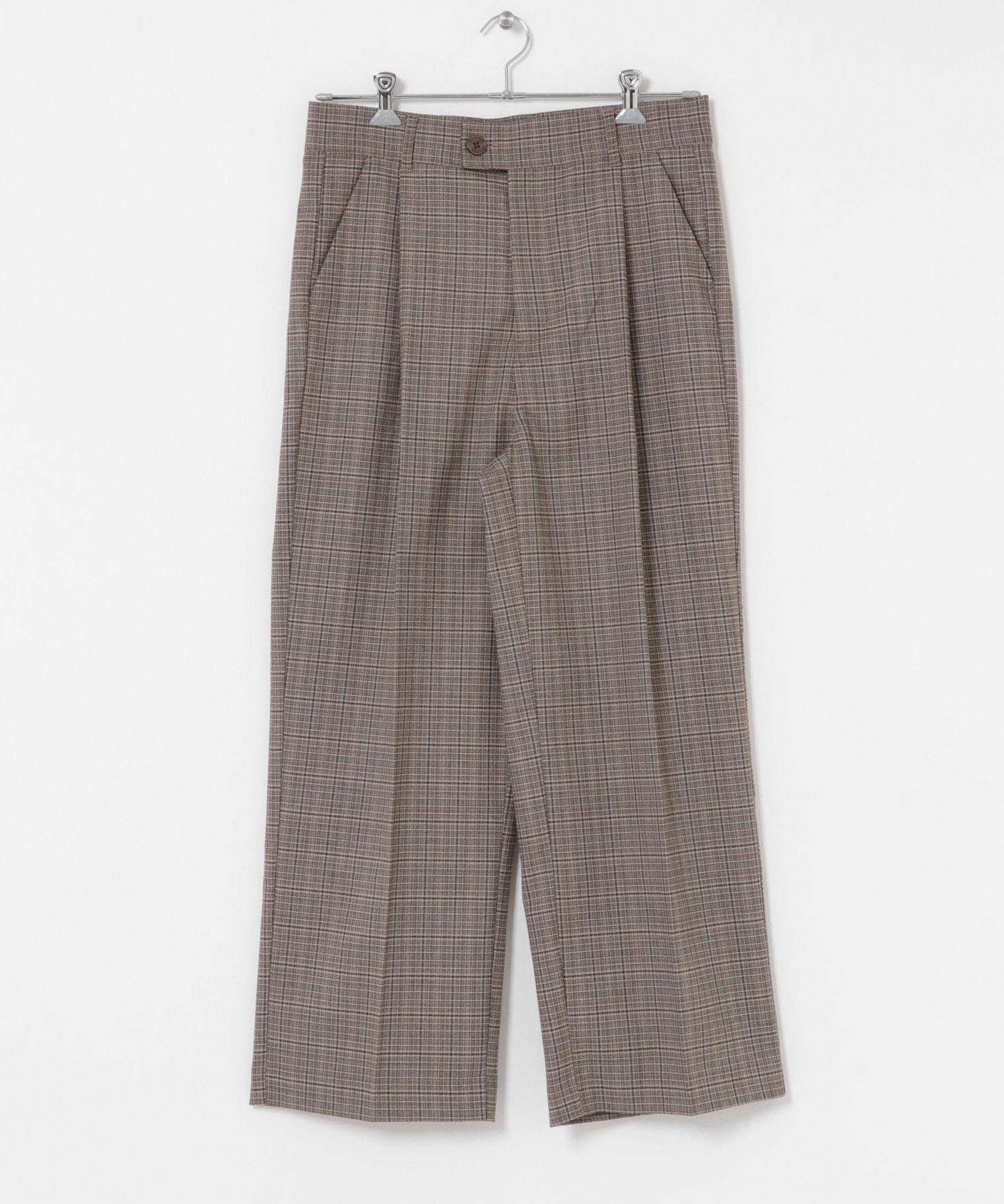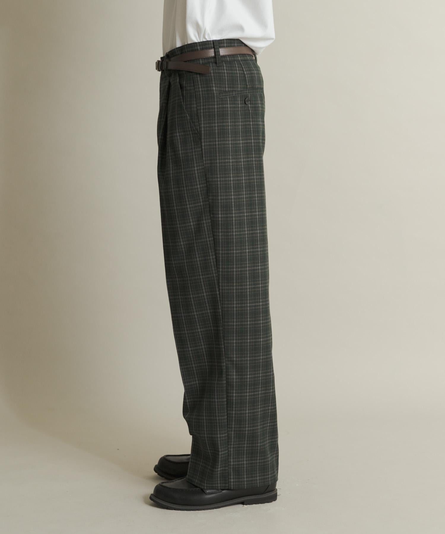 格紋高腰寬鬆西裝褲