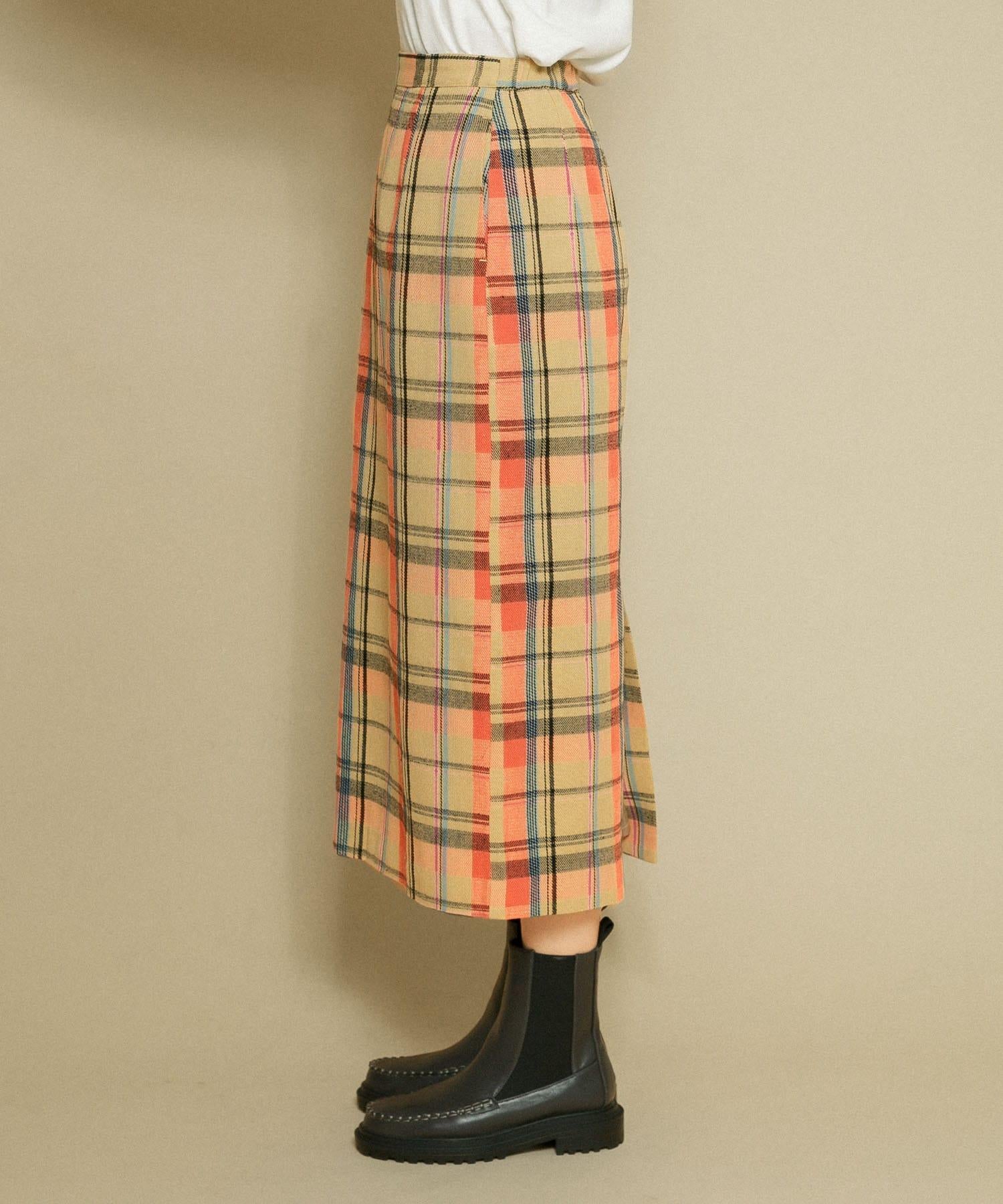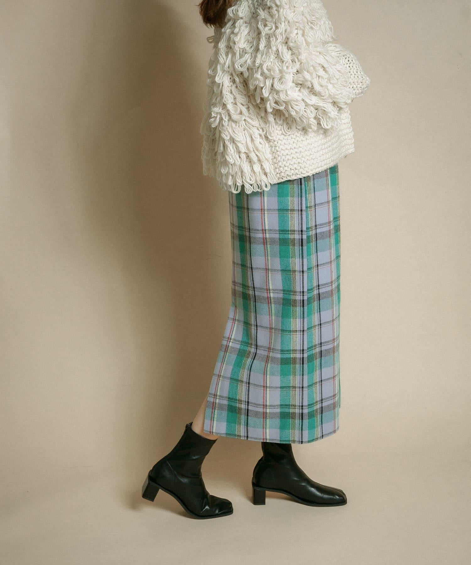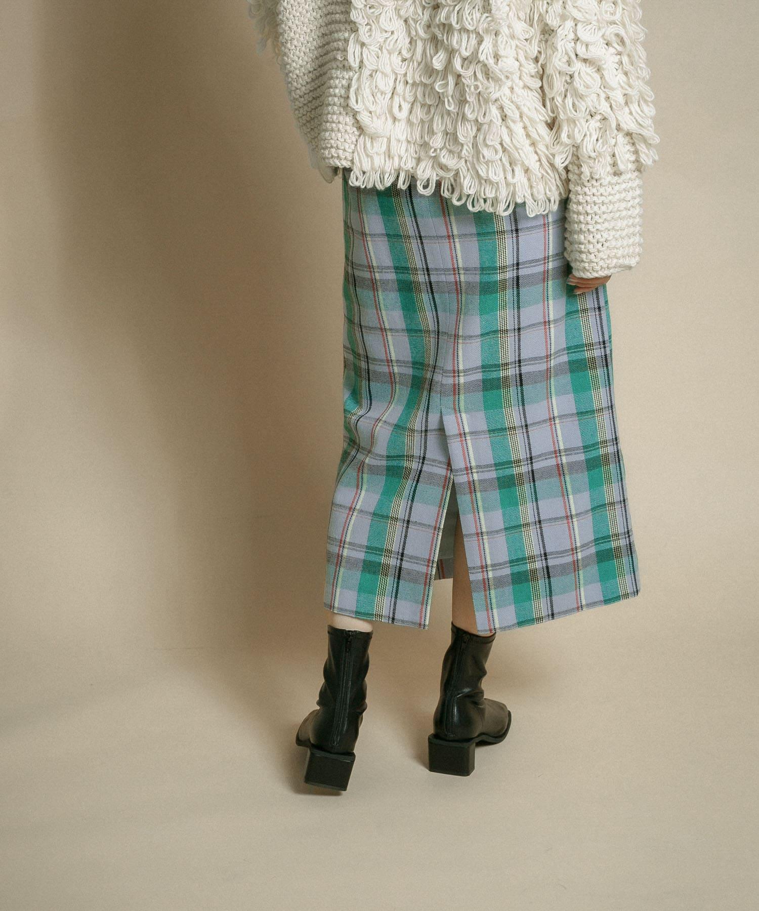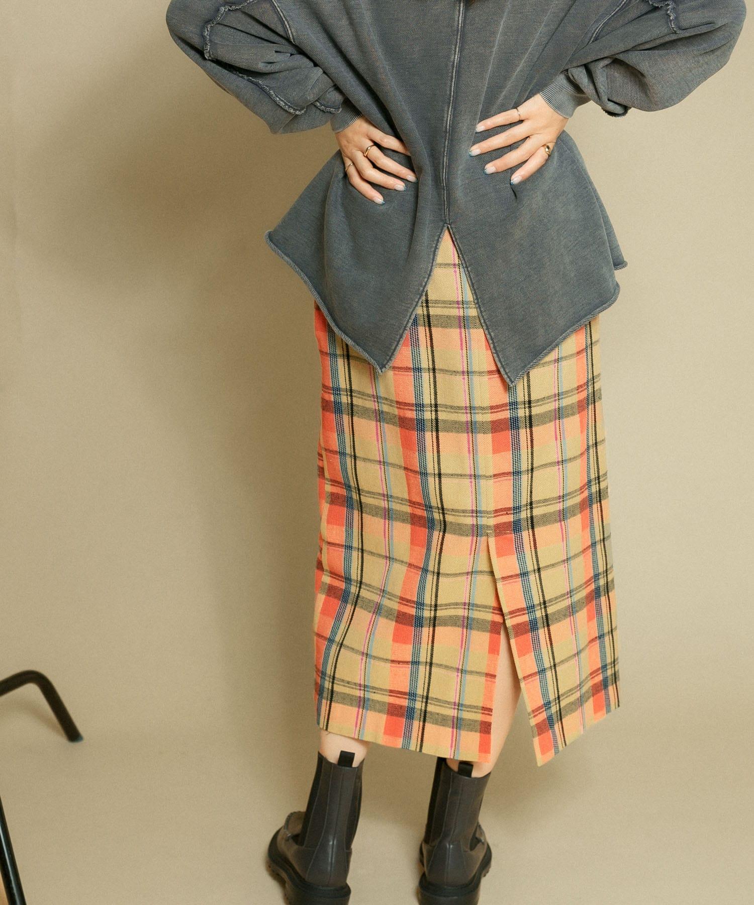 格紋I型中長裙
