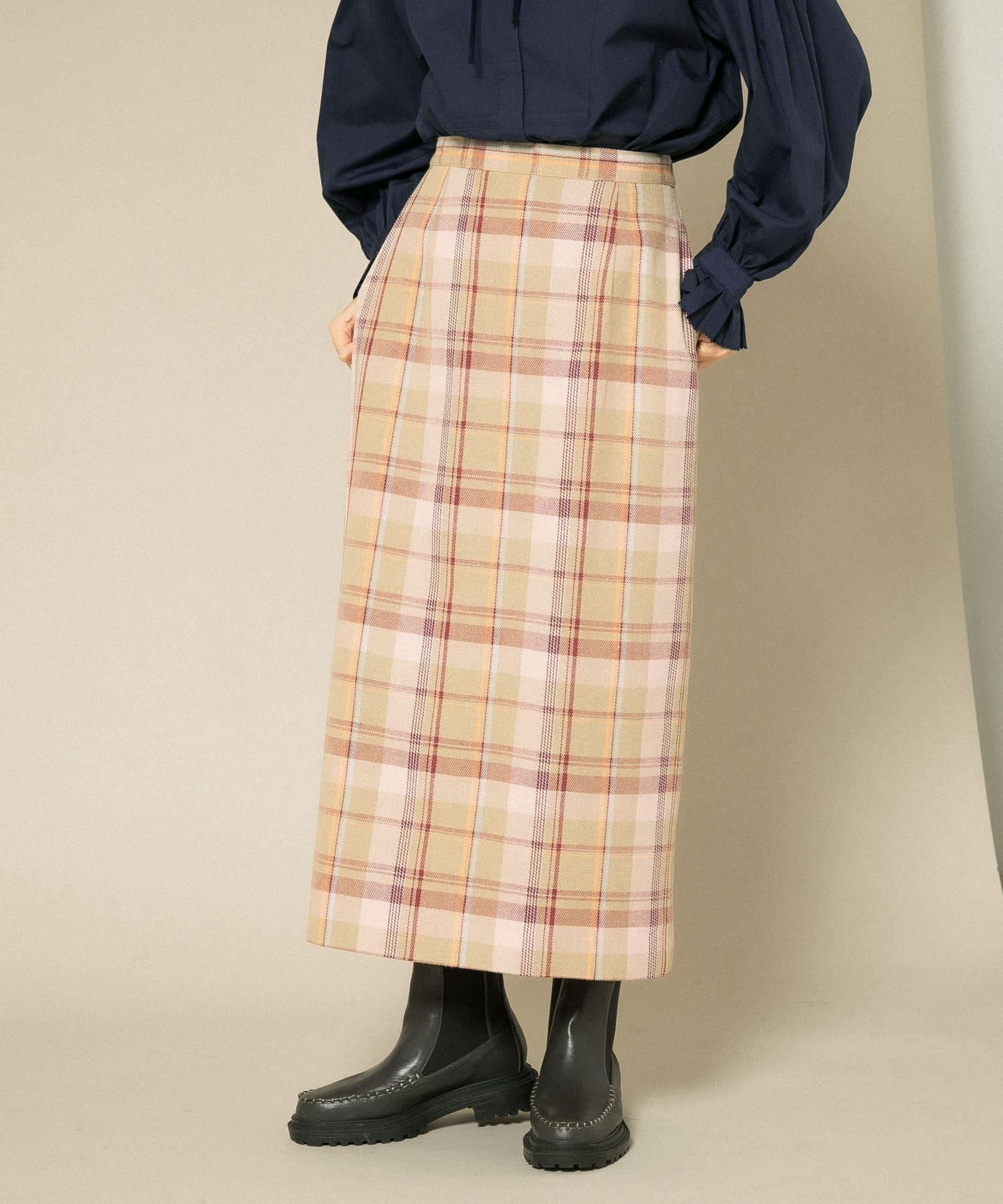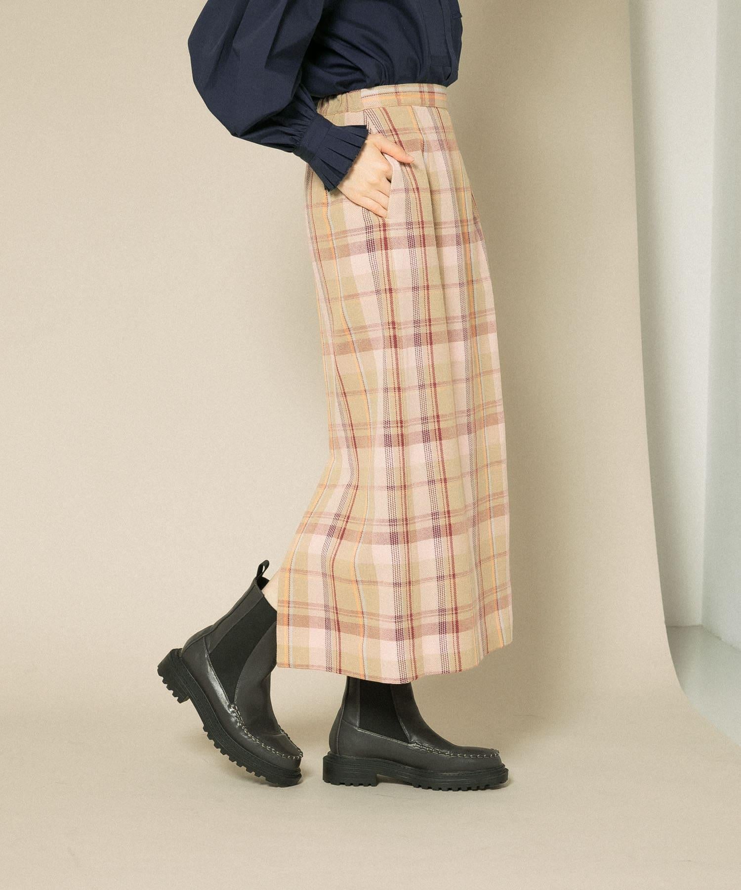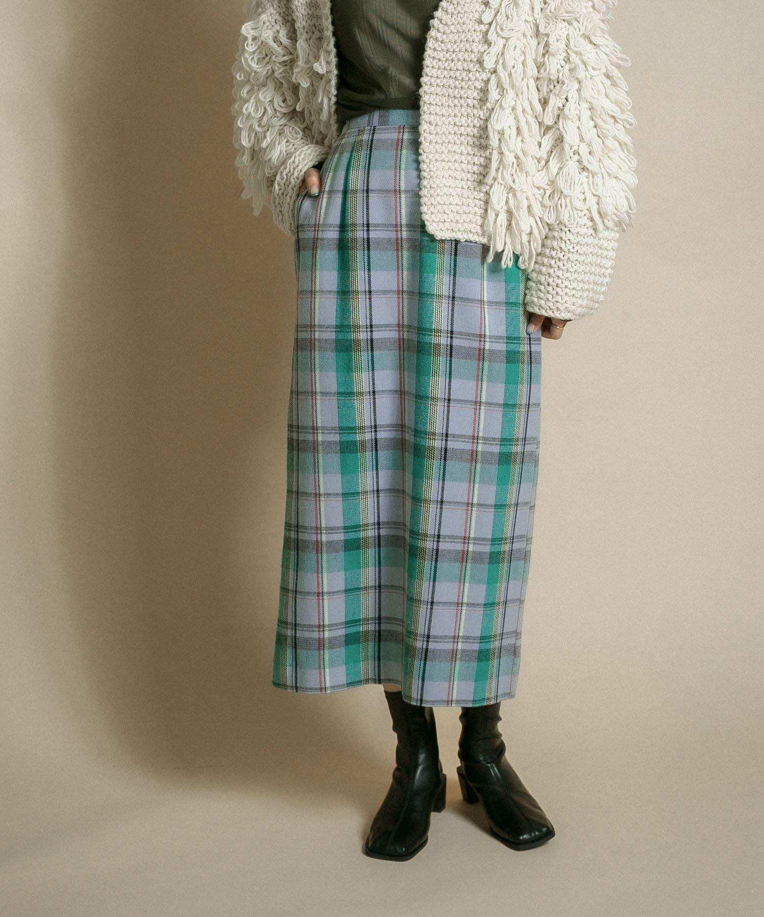 格紋I型中長裙