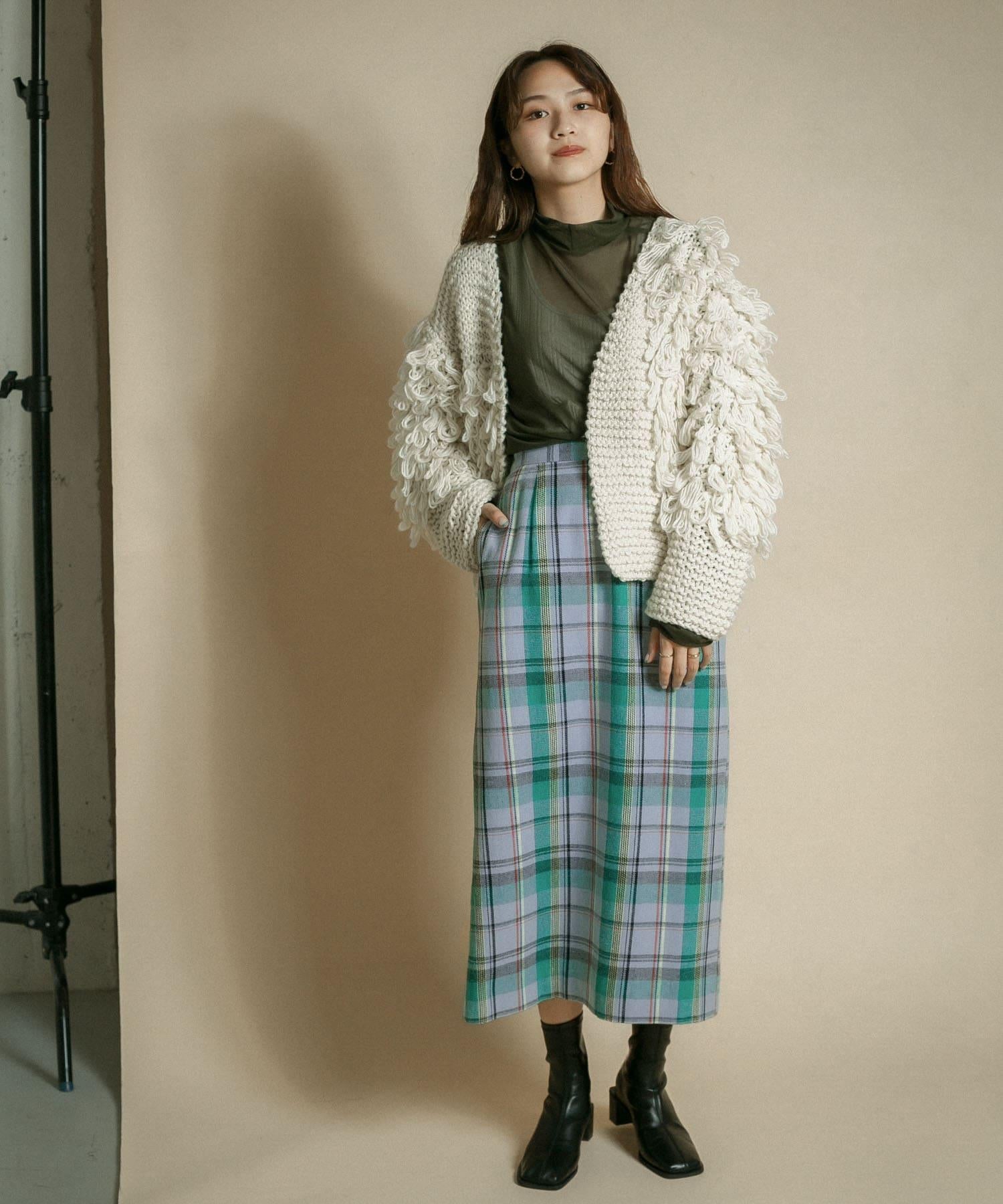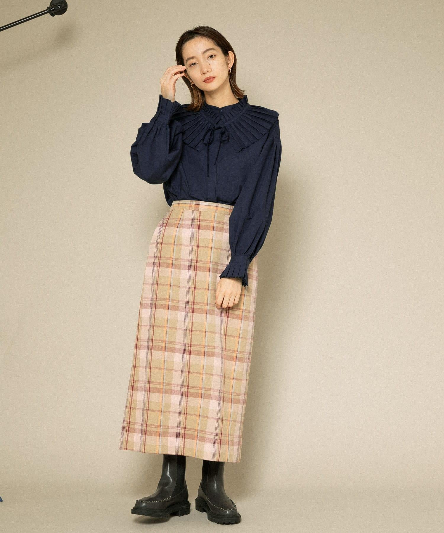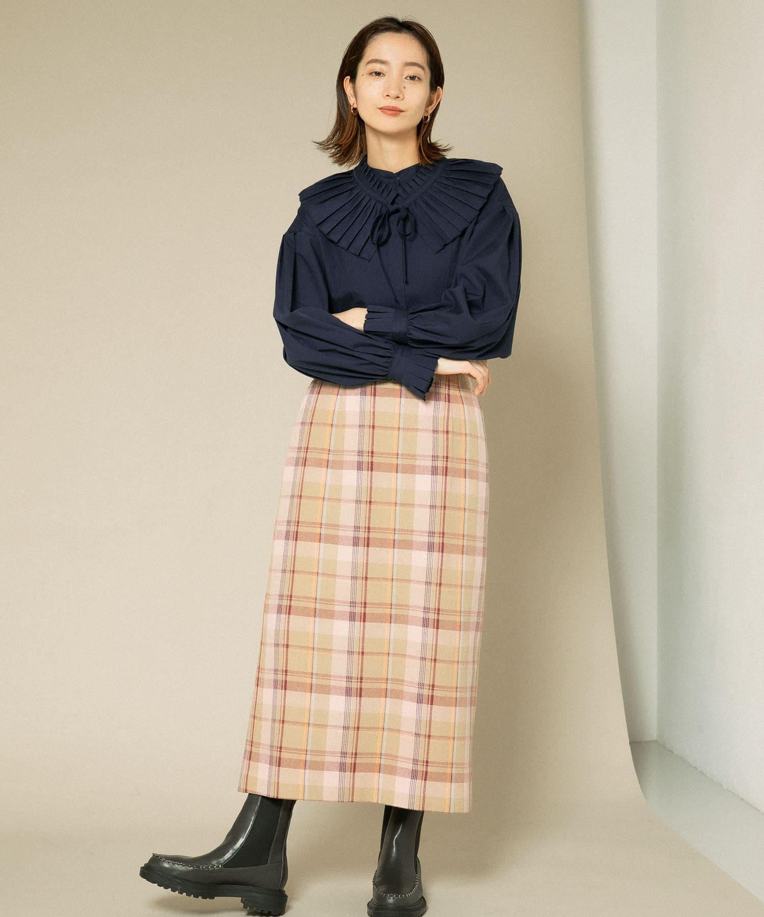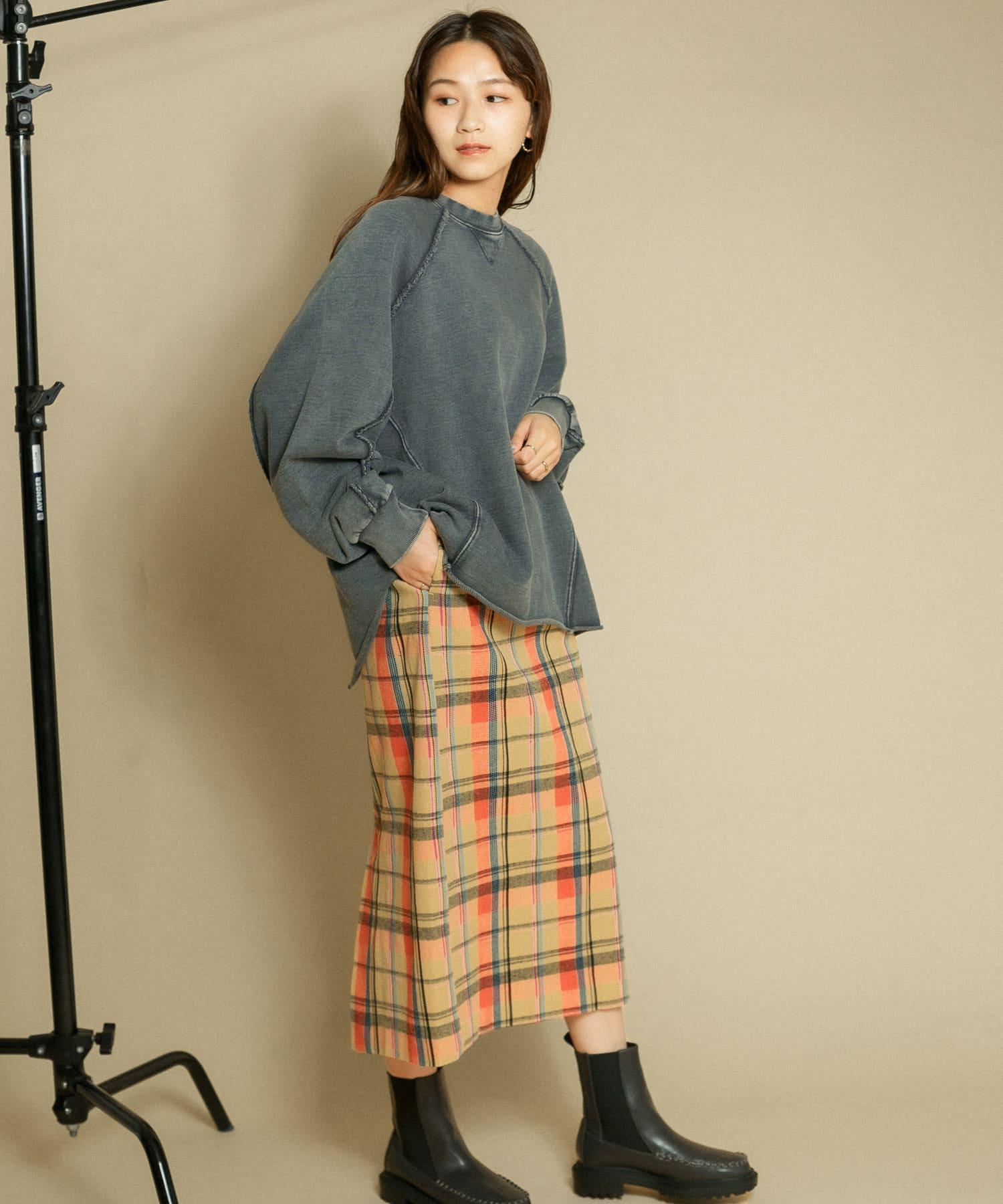 格紋I型中長裙