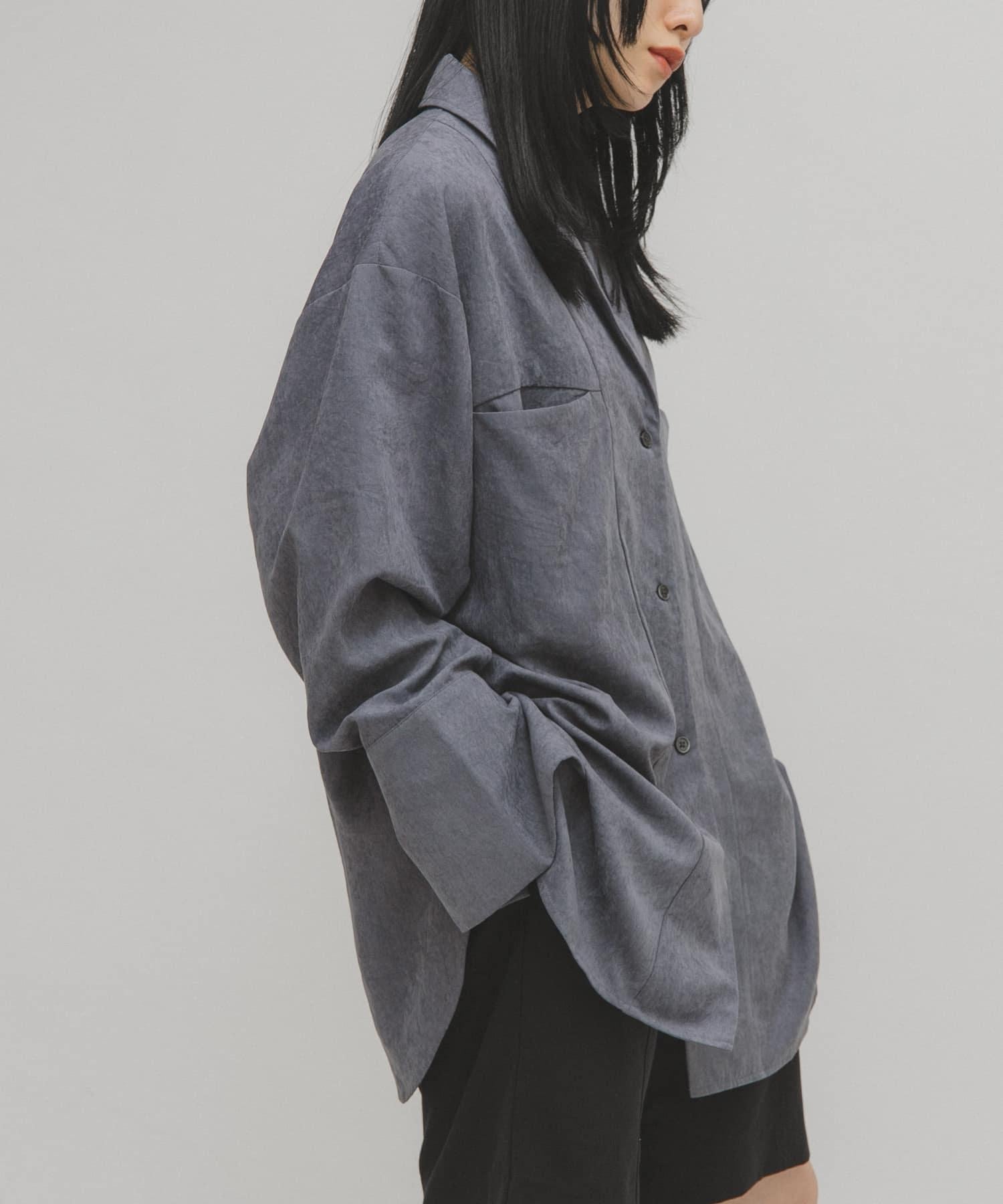 這款 BIG 襯衫採用時尚的麂皮絨面料製成,無論是單穿還是作為梭織服裝都非常百搭。長短適中,不會過於突顯身體線條,是短褲和長靴的絕佳搭配。袖子可以用紐扣打開,因此也建議搭配內搭。這款單品看似基本,卻蘊含著特別的設計。
