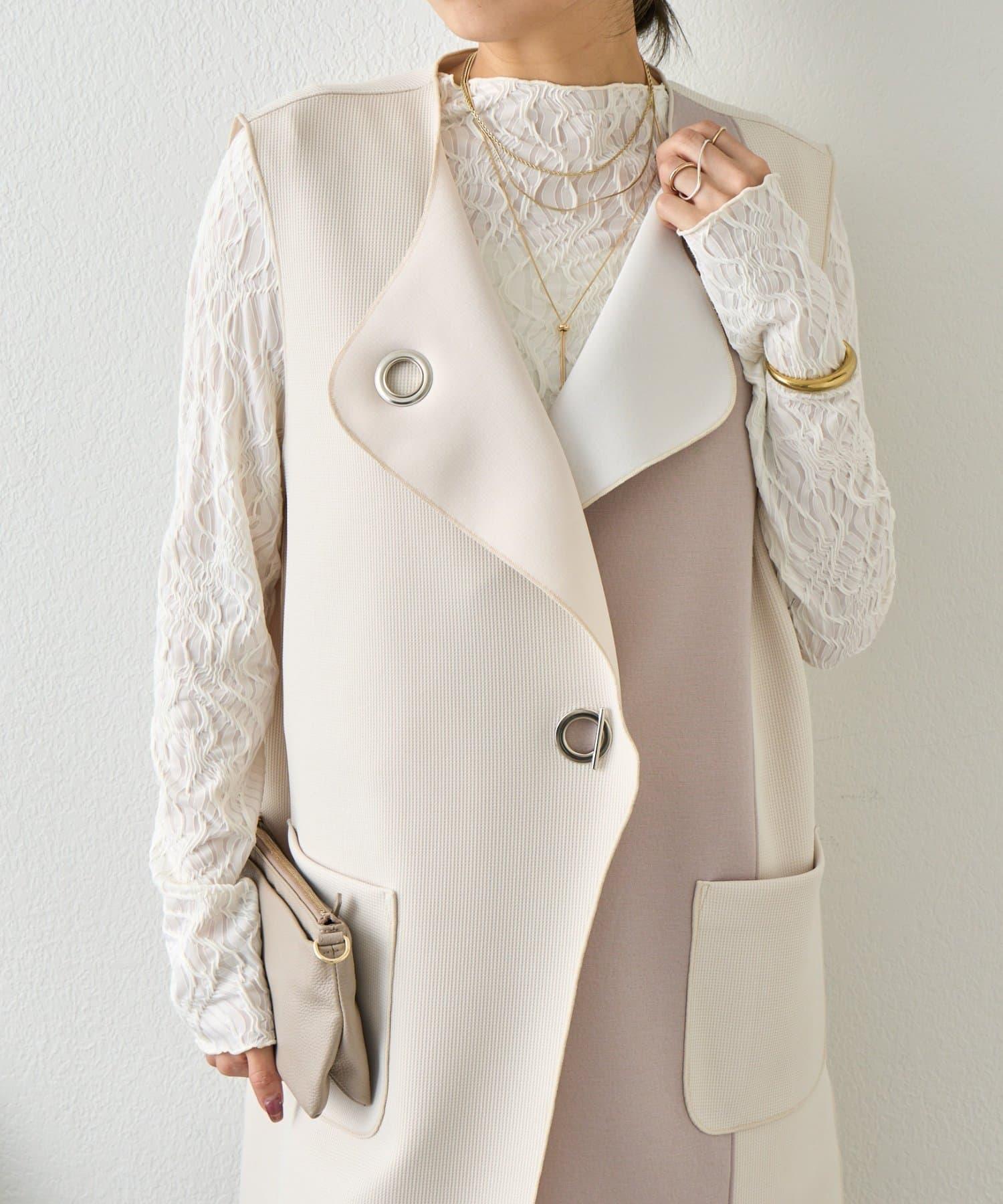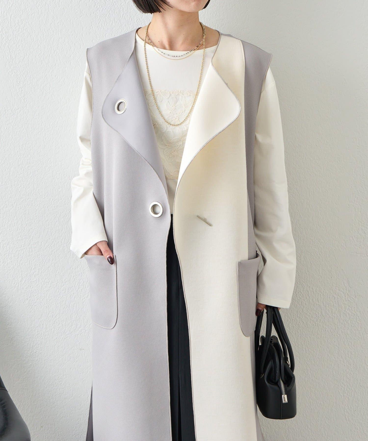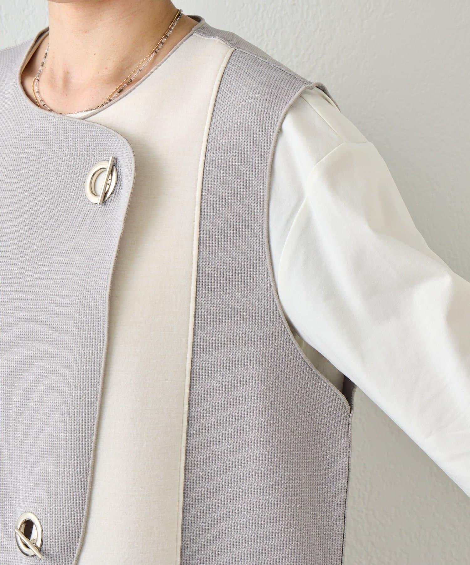 條形紐扣 華夫格 馬甲