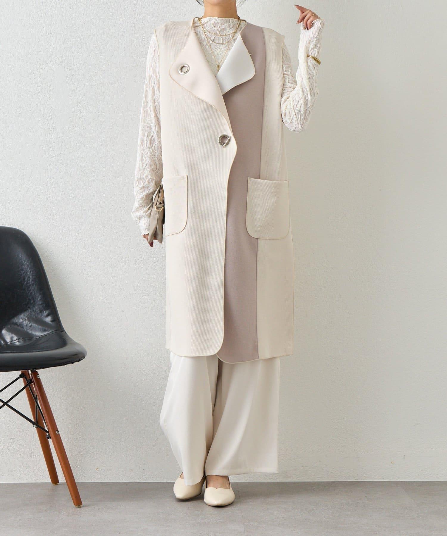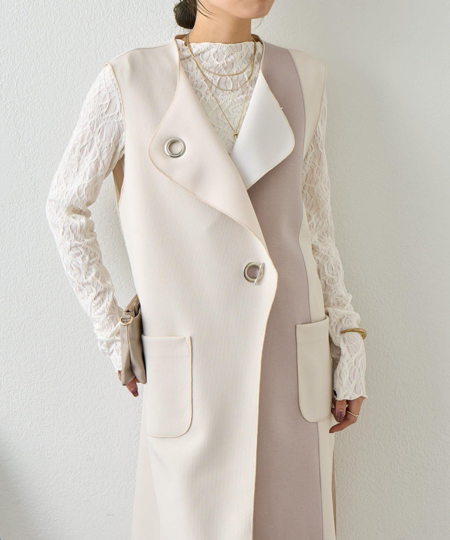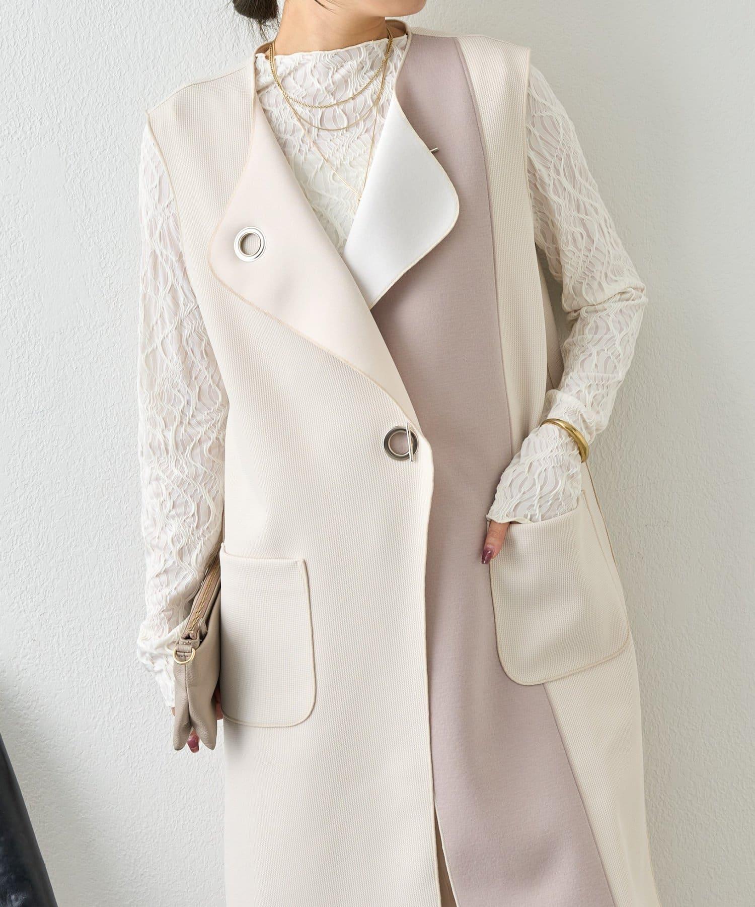 條形紐扣 華夫格 馬甲
