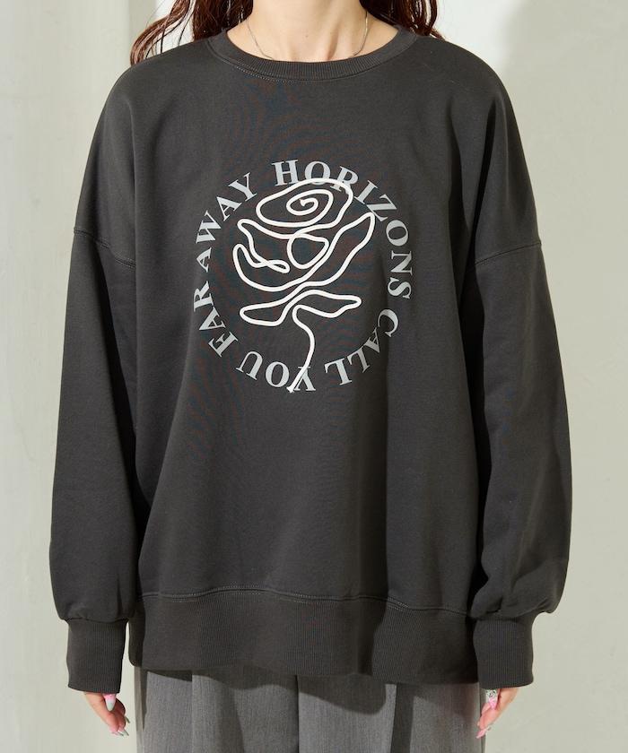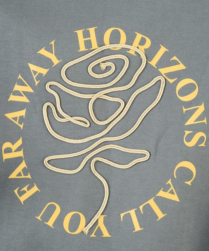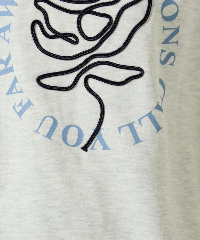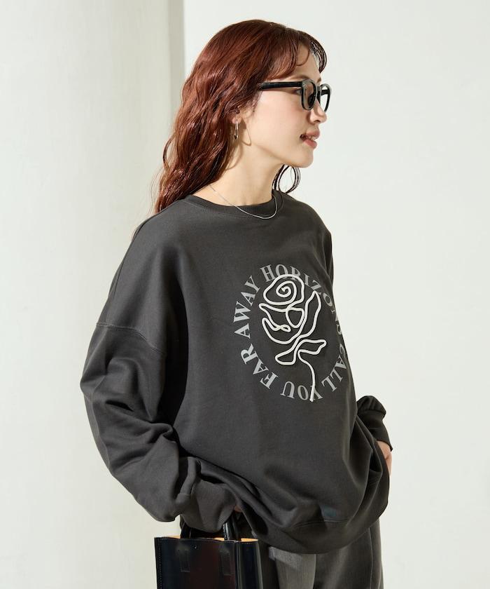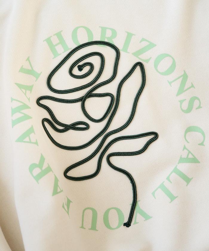 立體玫瑰繩繡與圓形徽標印花相結合的運動衫。