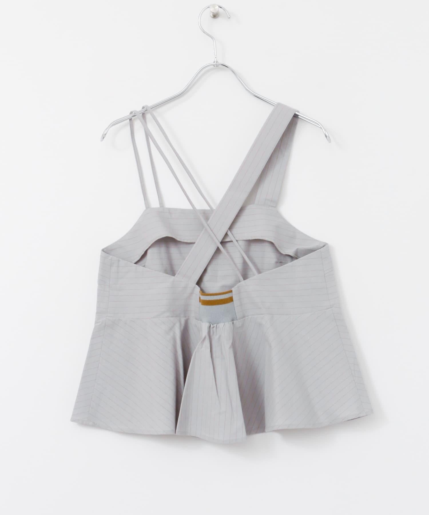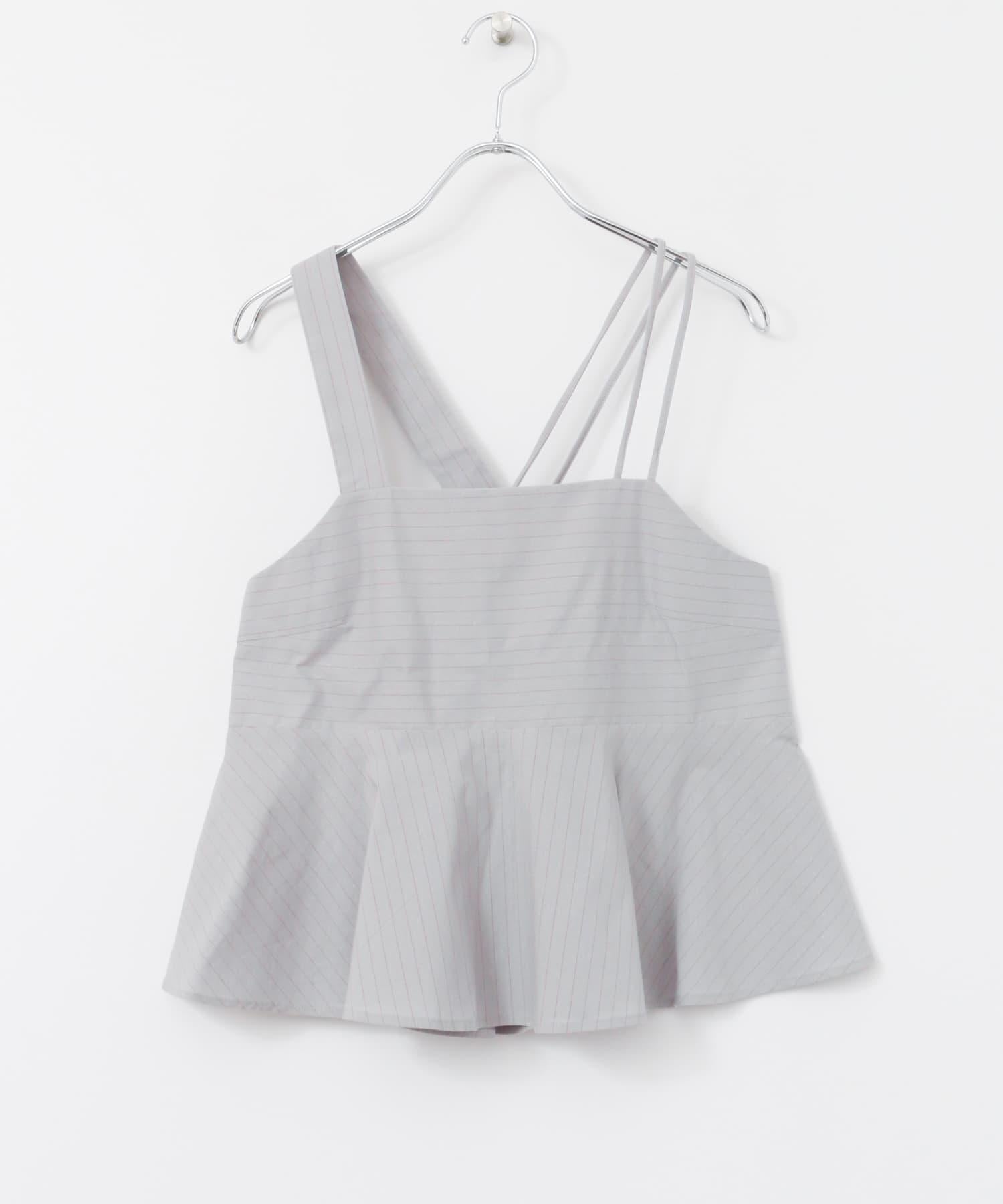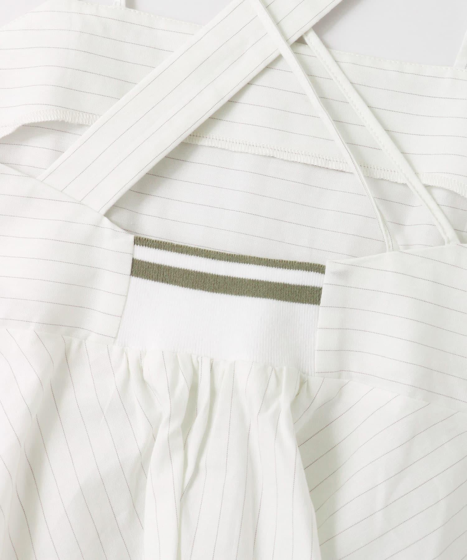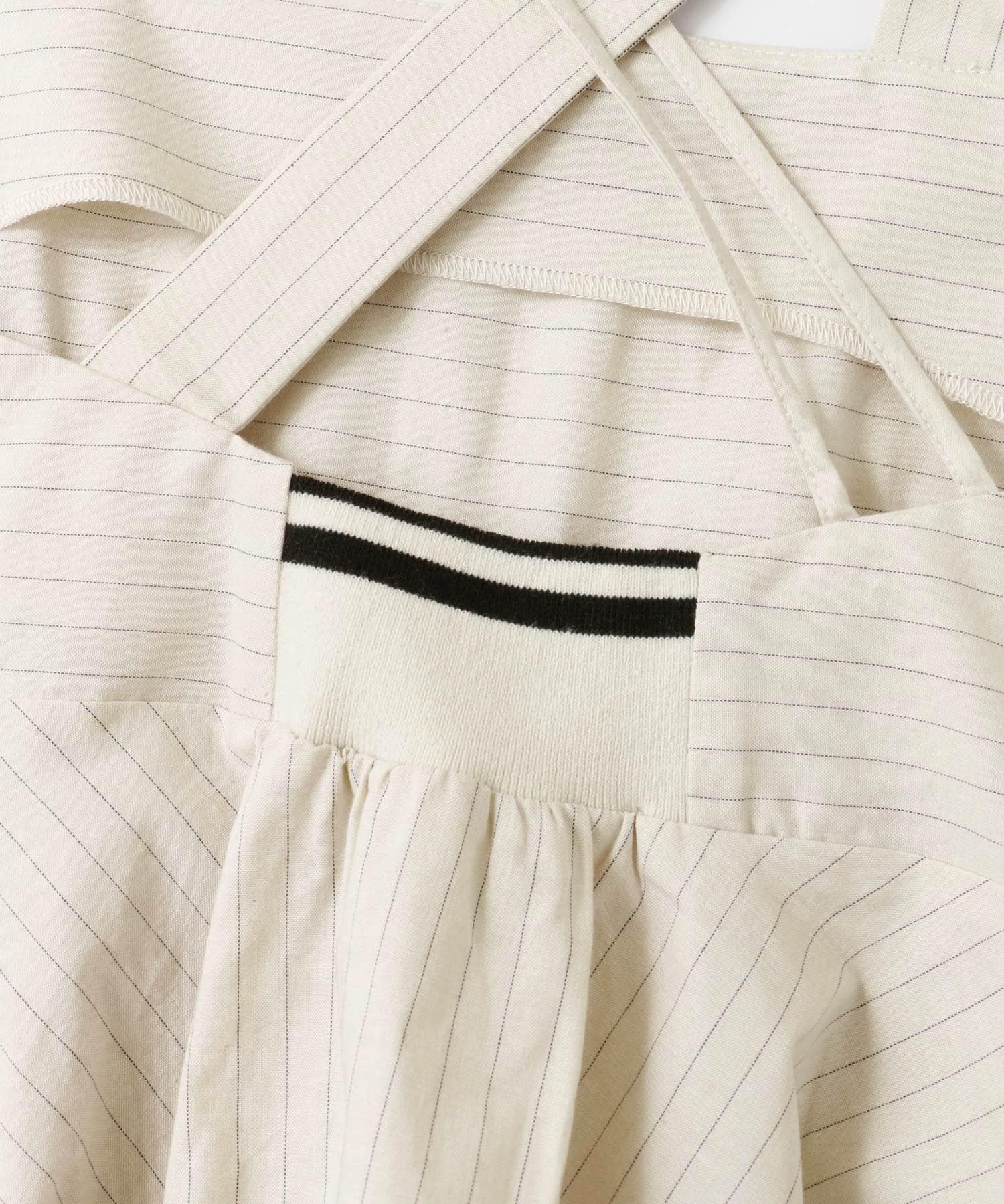 吊帶背心,俏皮的不對稱肩帶設計,只需簡單裁剪和縫製即可疊穿。條紋圖案使其看起來更成熟。巧妙的蓬蓬裙設計增強了女性的柔美氣質,背部的羅紋款式也是一大亮點。它還能與時尚的運動混搭協調搭配。