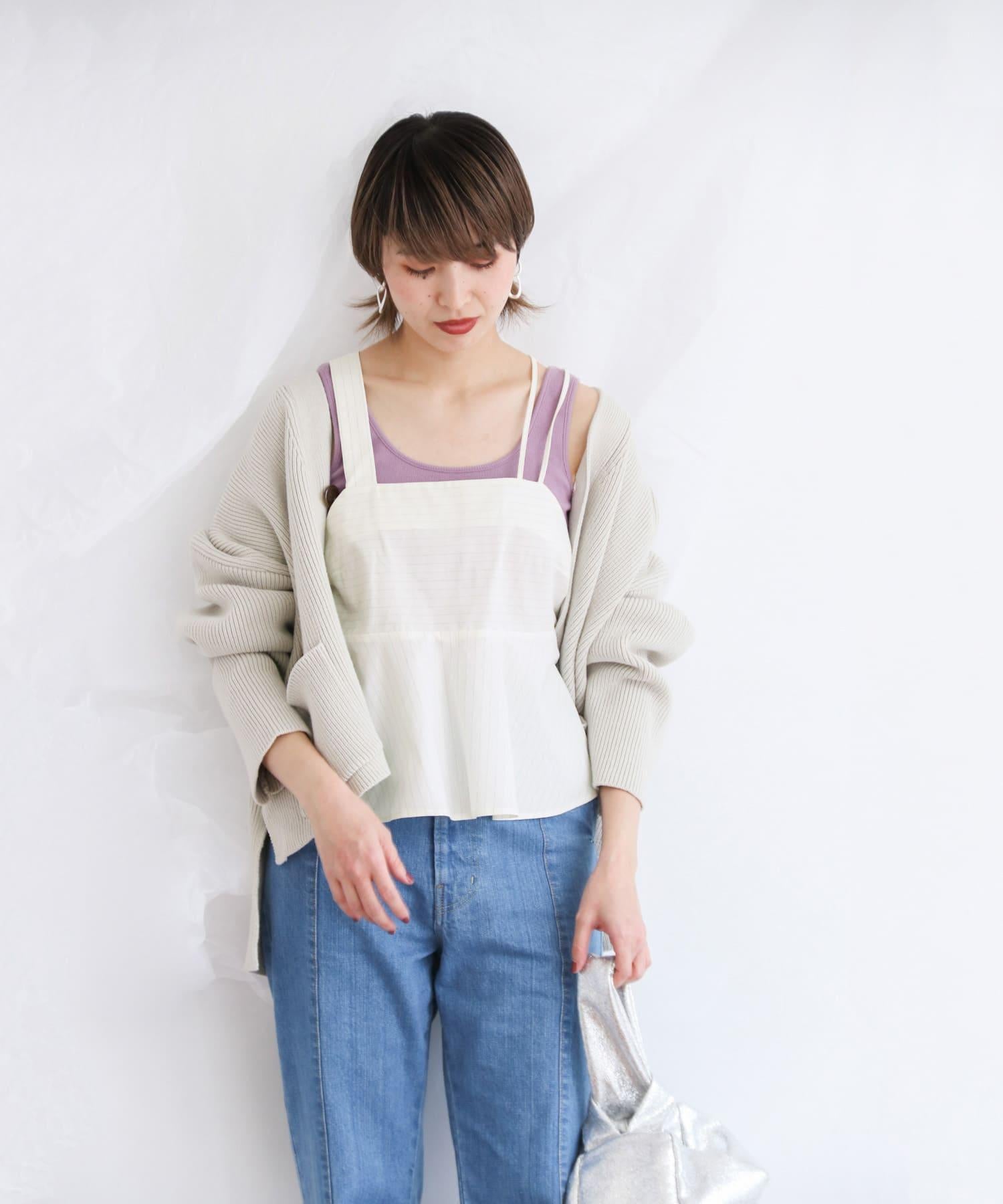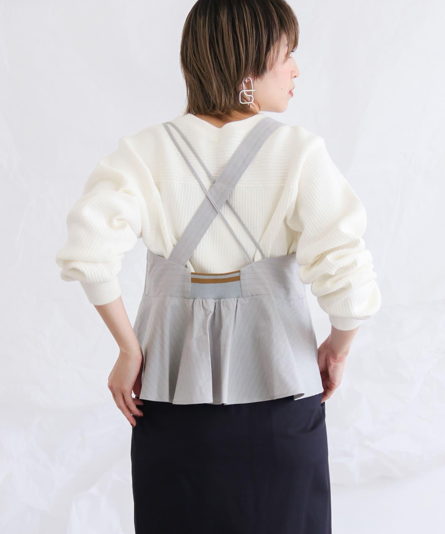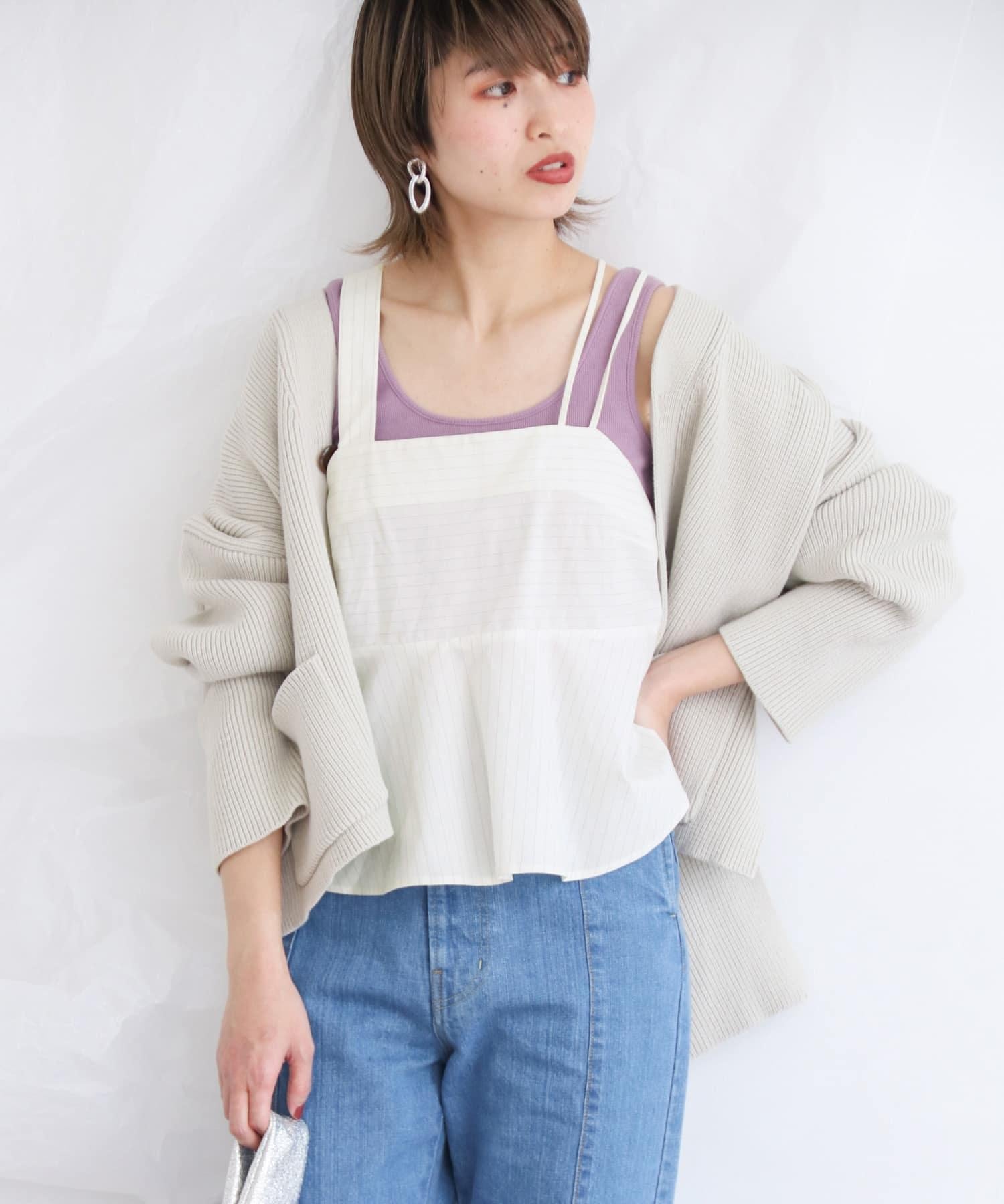 吊帶背心,俏皮的不對稱肩帶設計,只需簡單裁剪和縫製即可疊穿。條紋圖案使其看起來更成熟。巧妙的蓬蓬裙設計增強了女性的柔美氣質,背部的羅紋款式也是一大亮點。它還能與時尚的運動混搭協調搭配。