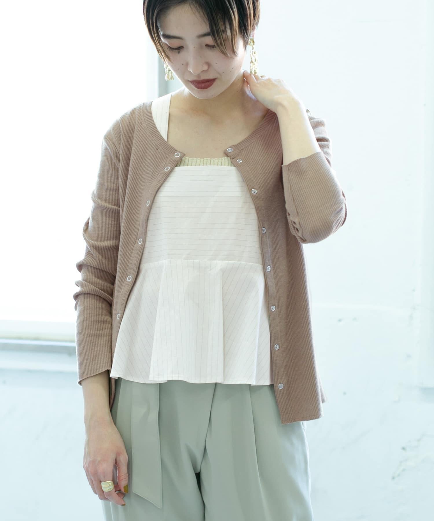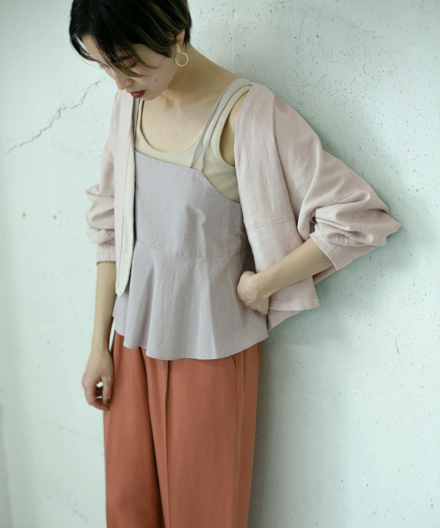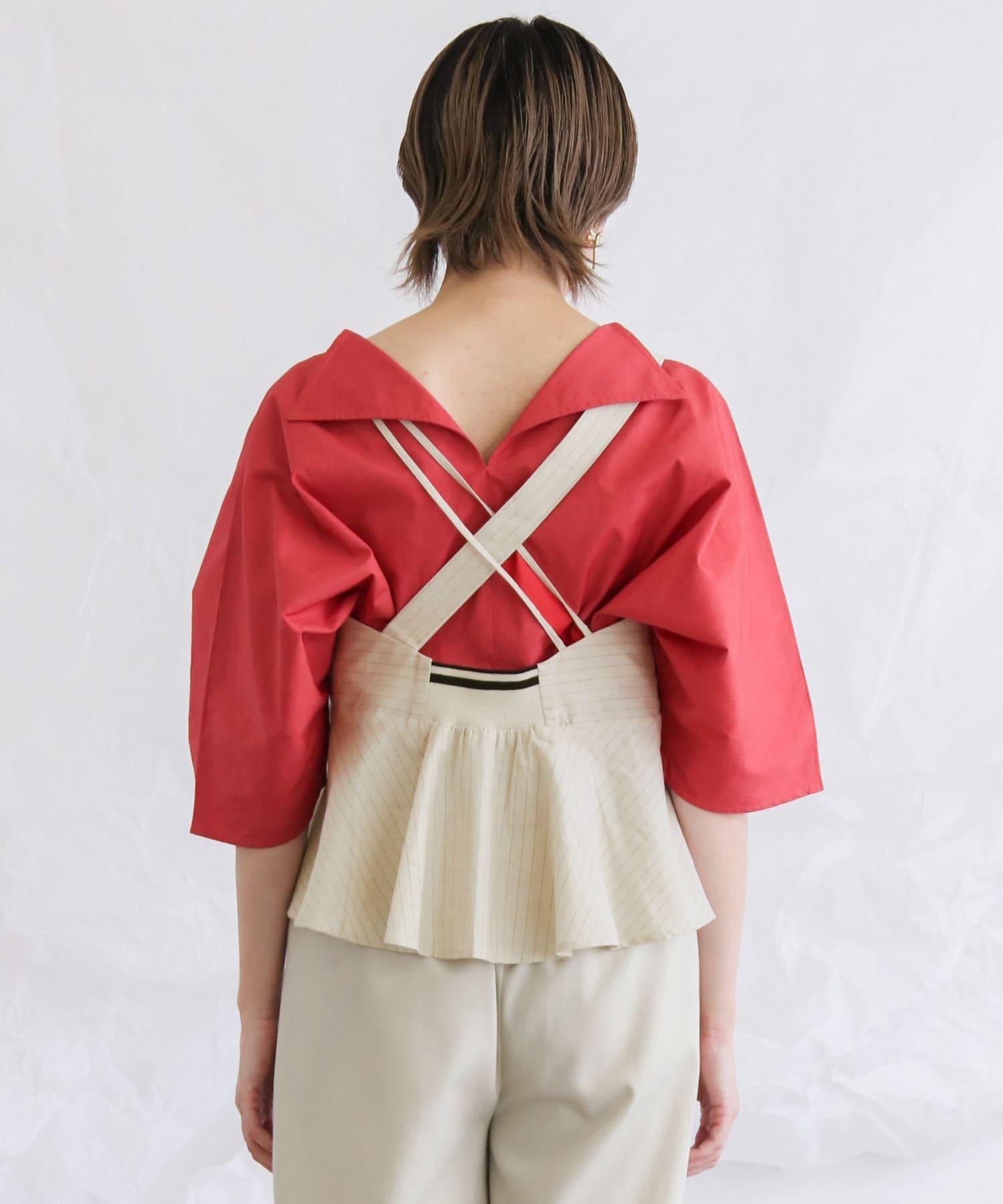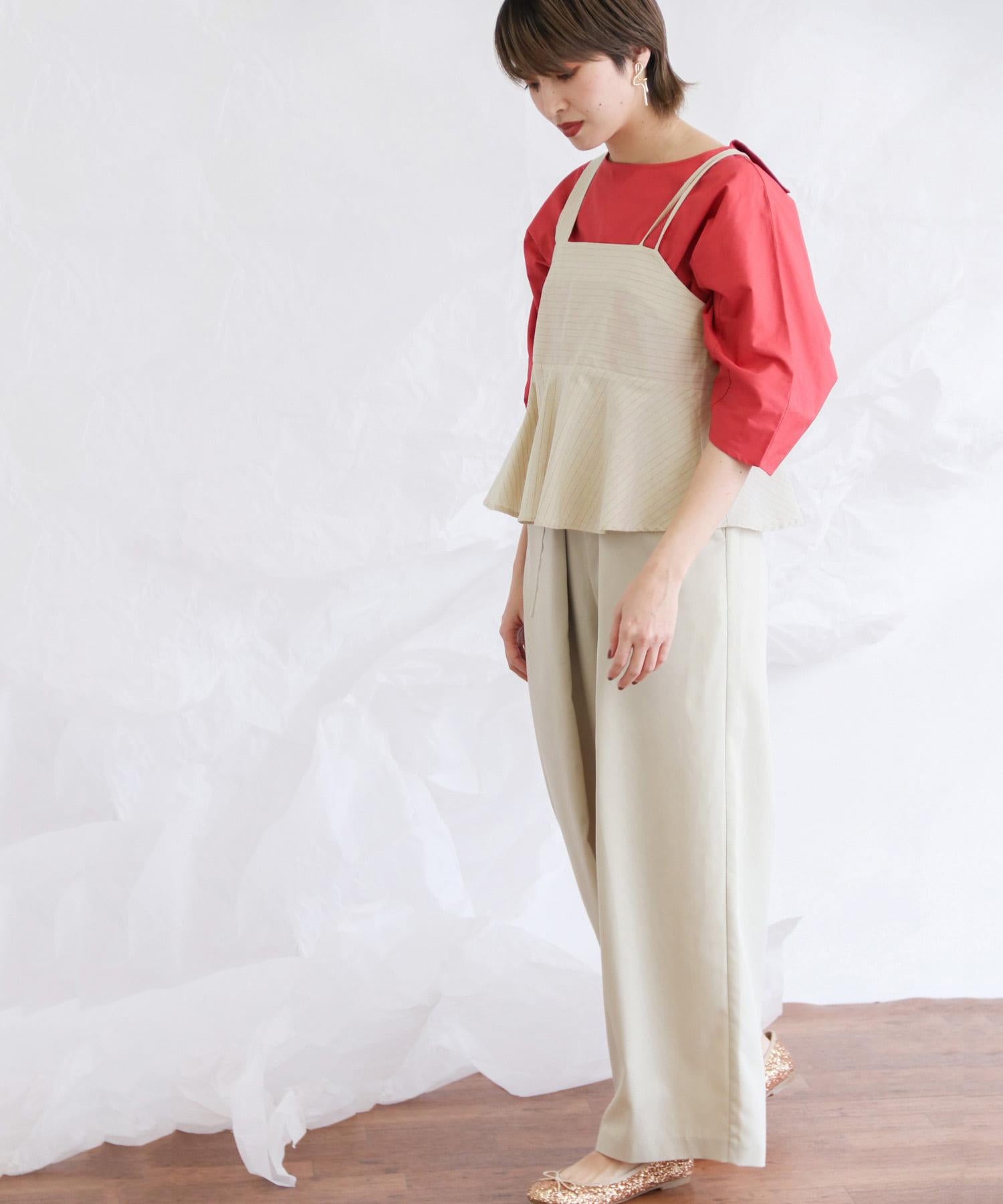 吊帶背心,俏皮的不對稱肩帶設計,只需簡單裁剪和縫製即可疊穿。條紋圖案使其看起來更成熟。巧妙的蓬蓬裙設計增強了女性的柔美氣質,背部的羅紋款式也是一大亮點。它還能與時尚的運動混搭協調搭配。