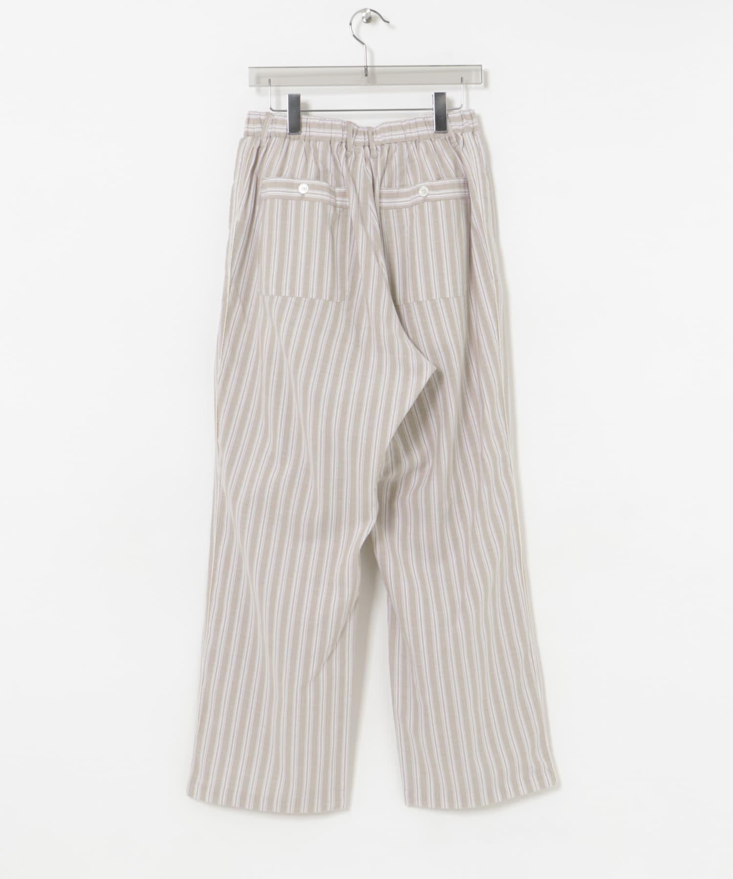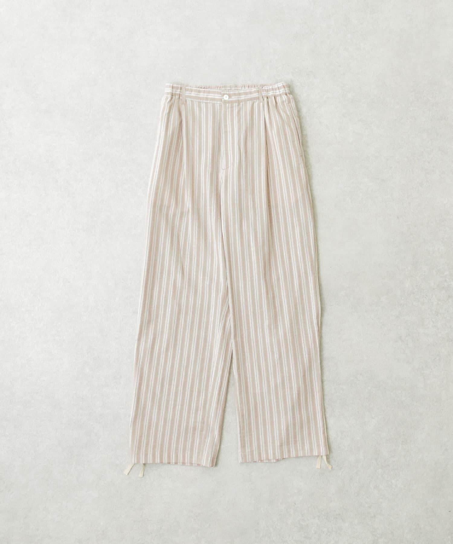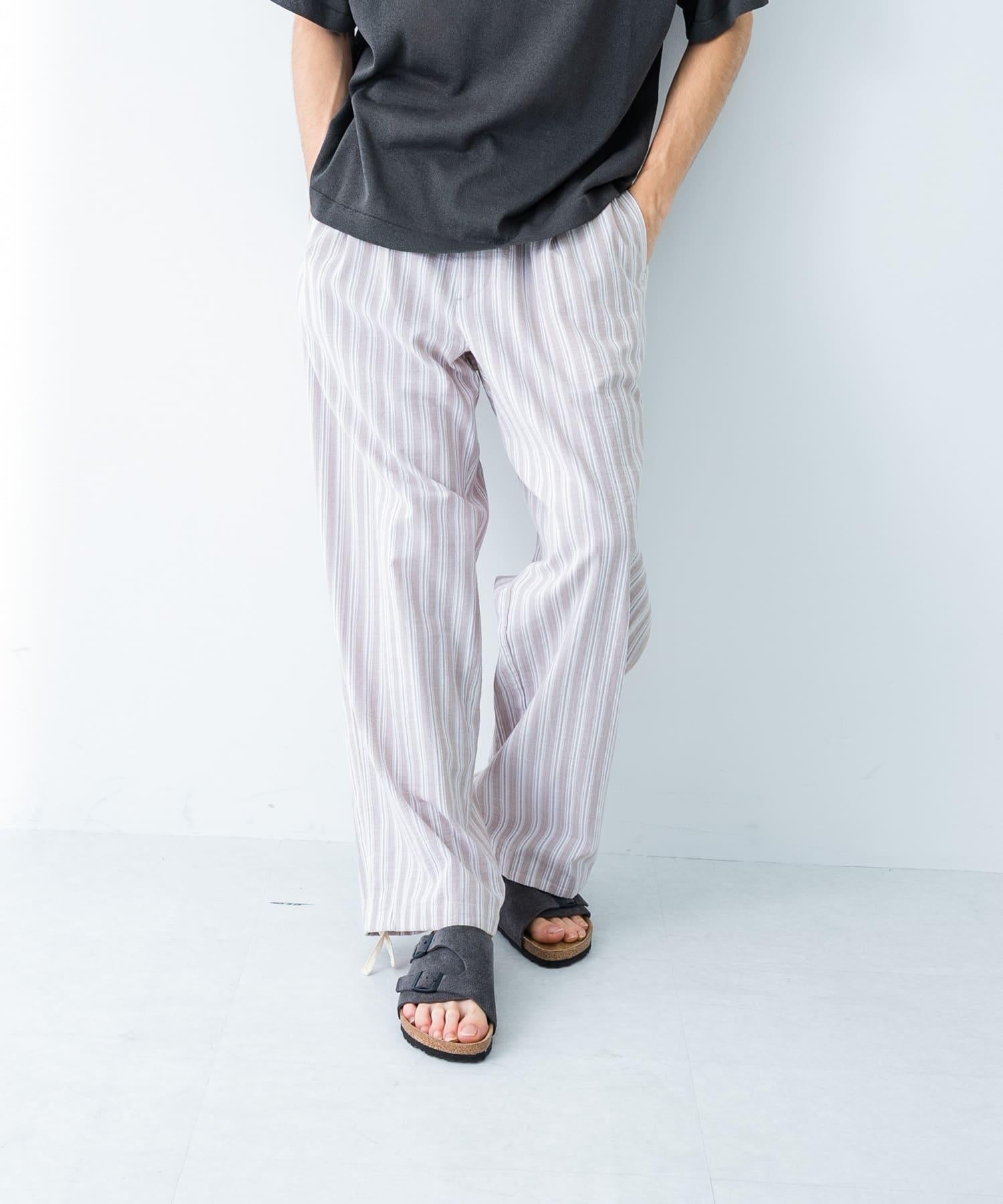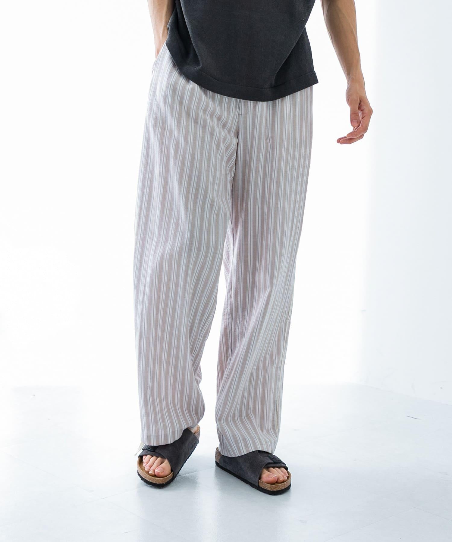 條紋休閒褲採用亞麻乾爽面料,剪裁適度寬鬆。