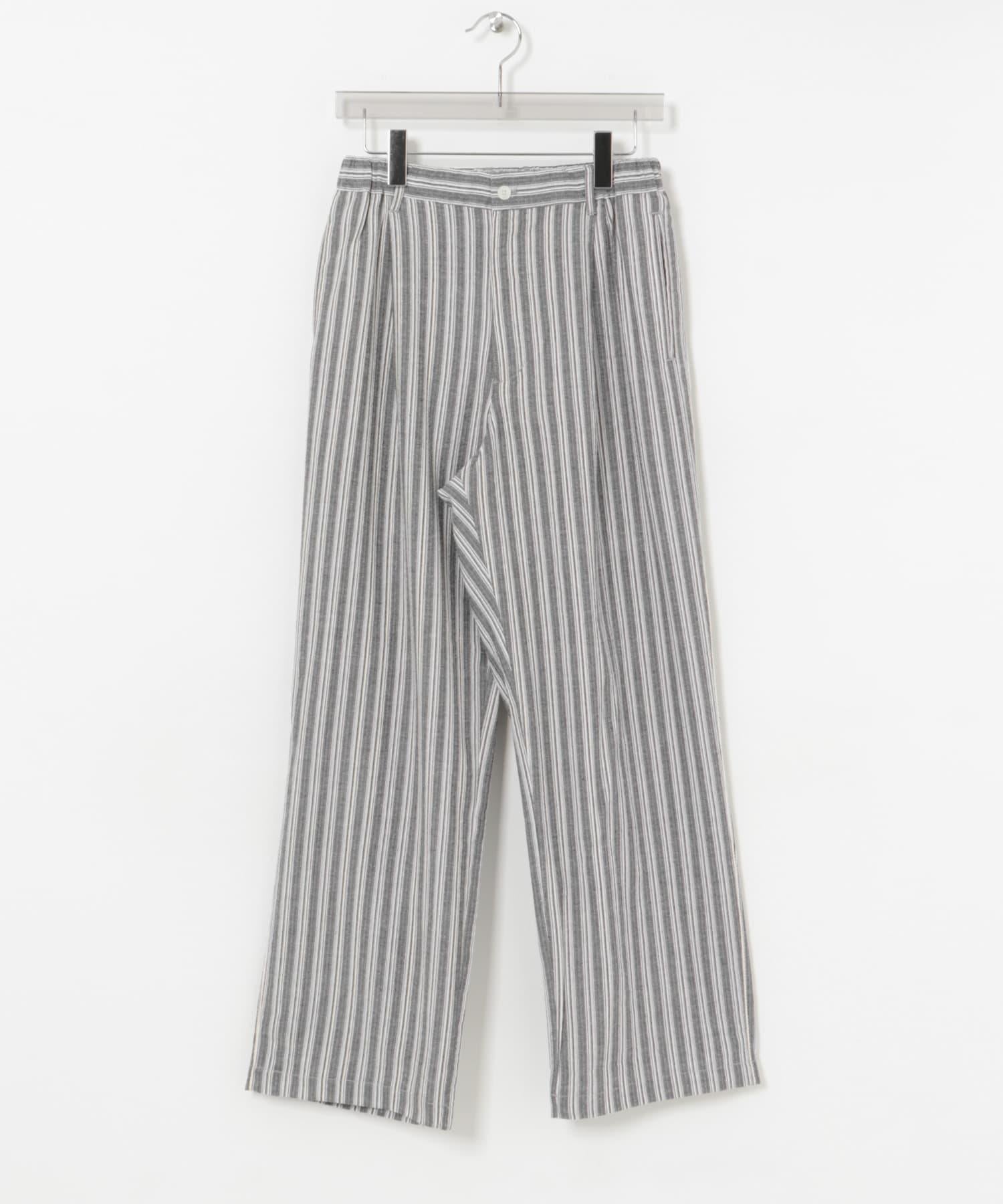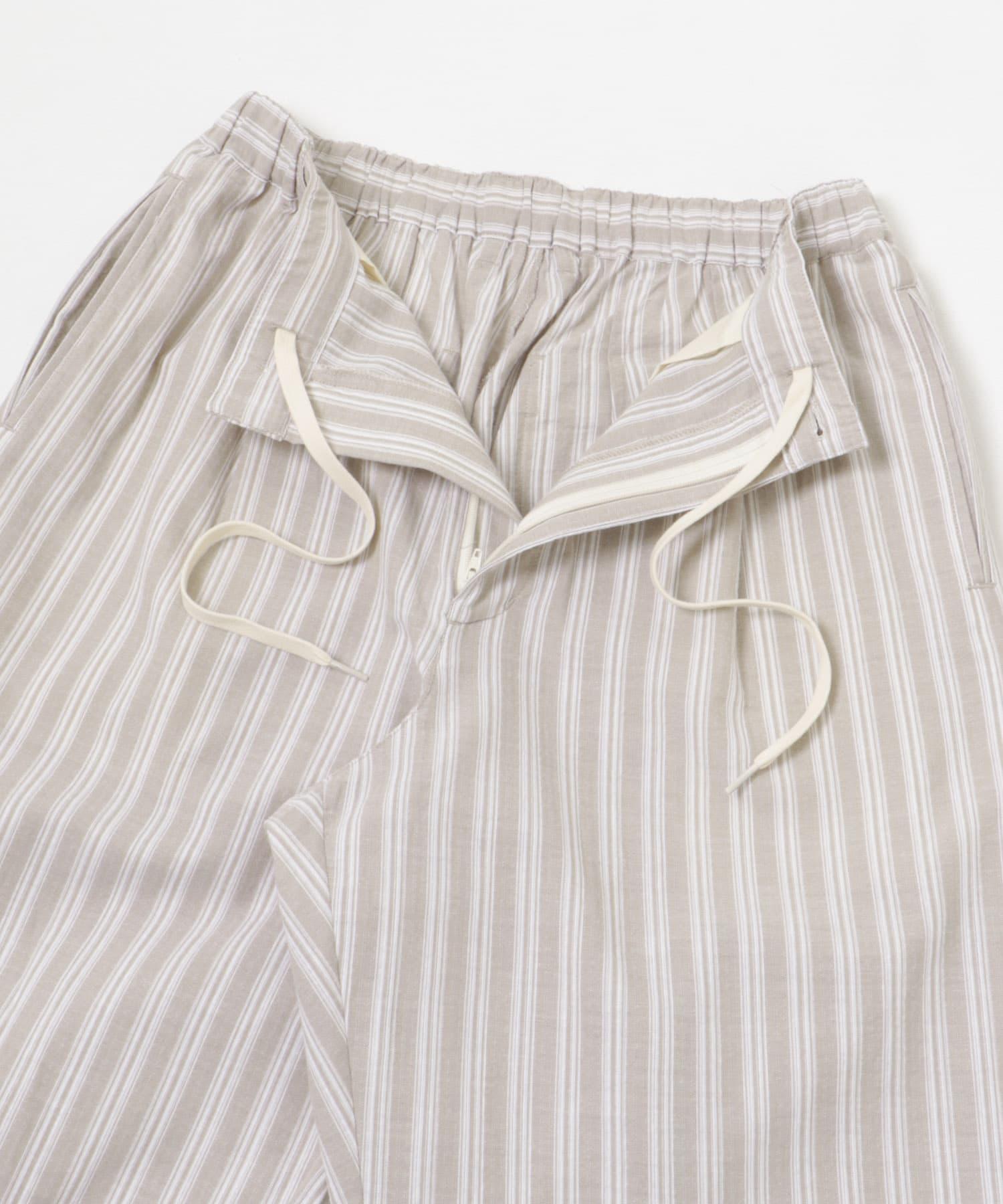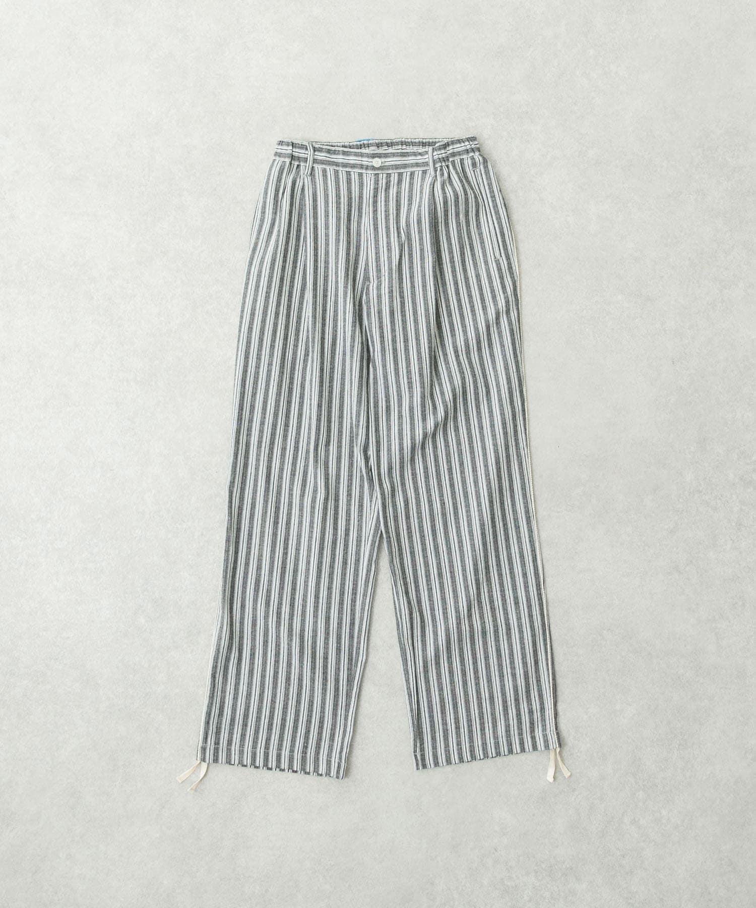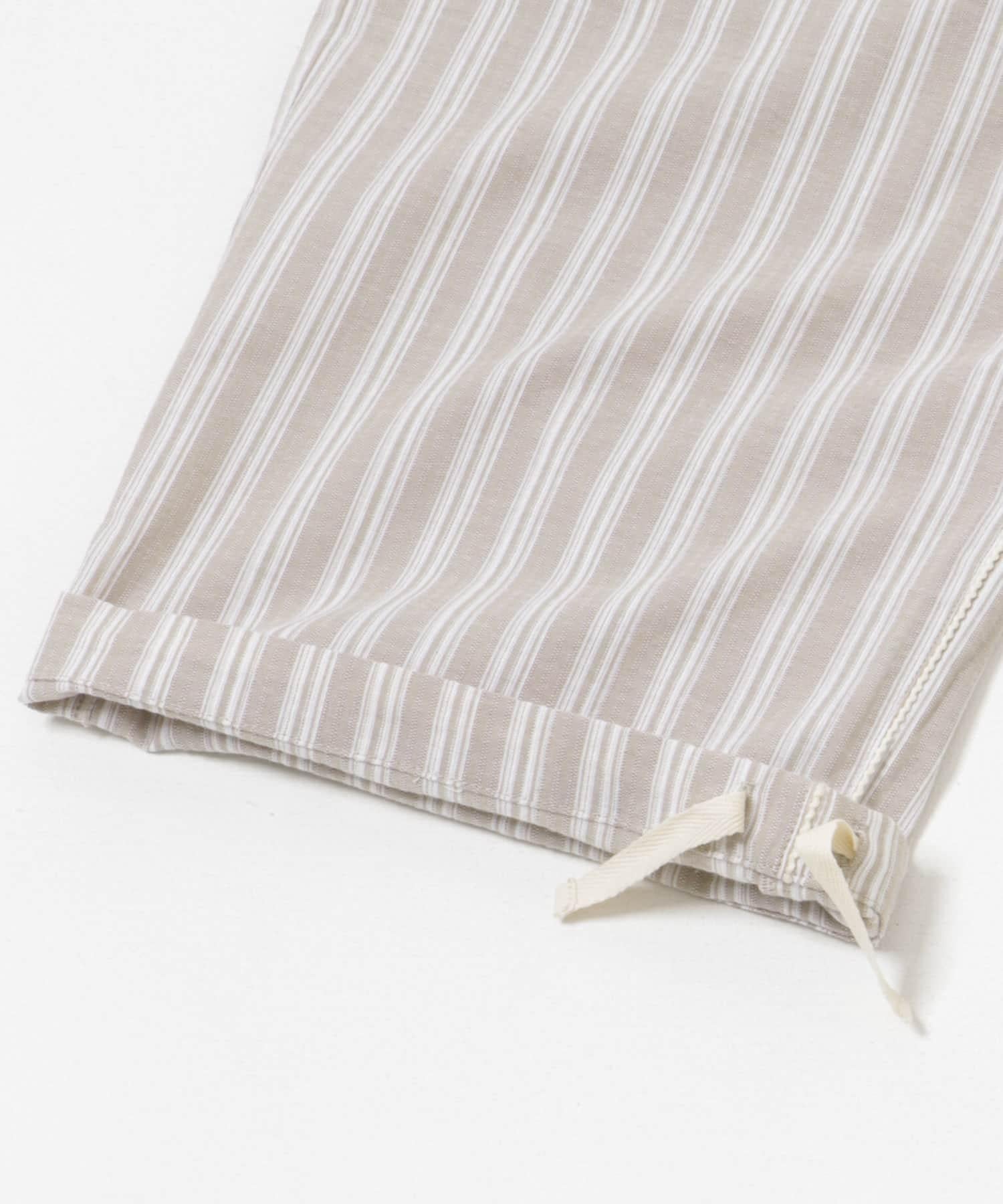 條紋休閒褲採用亞麻乾爽面料,剪裁適度寬鬆。