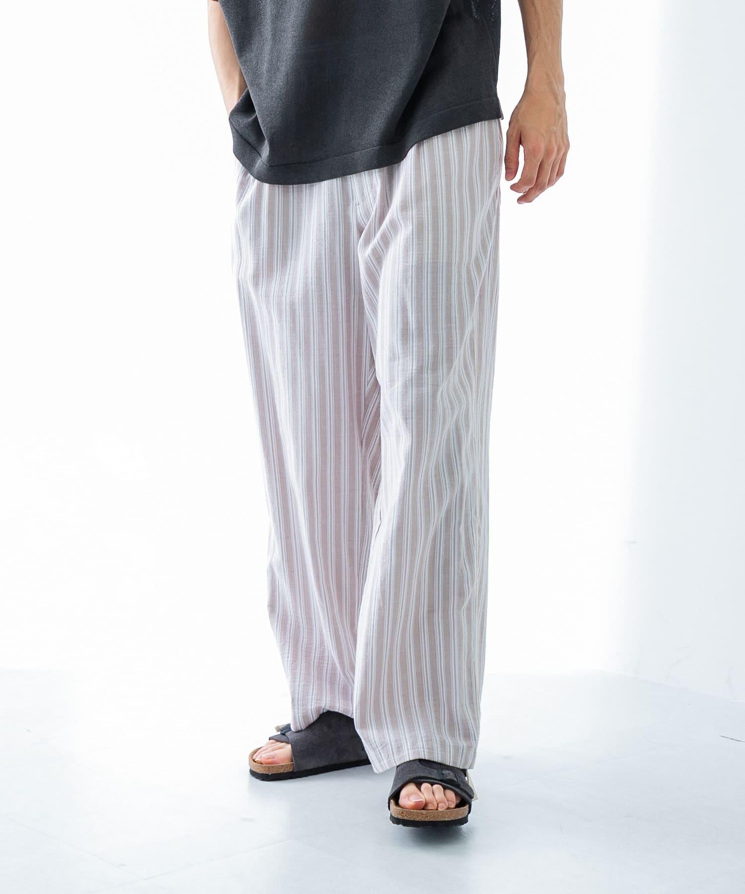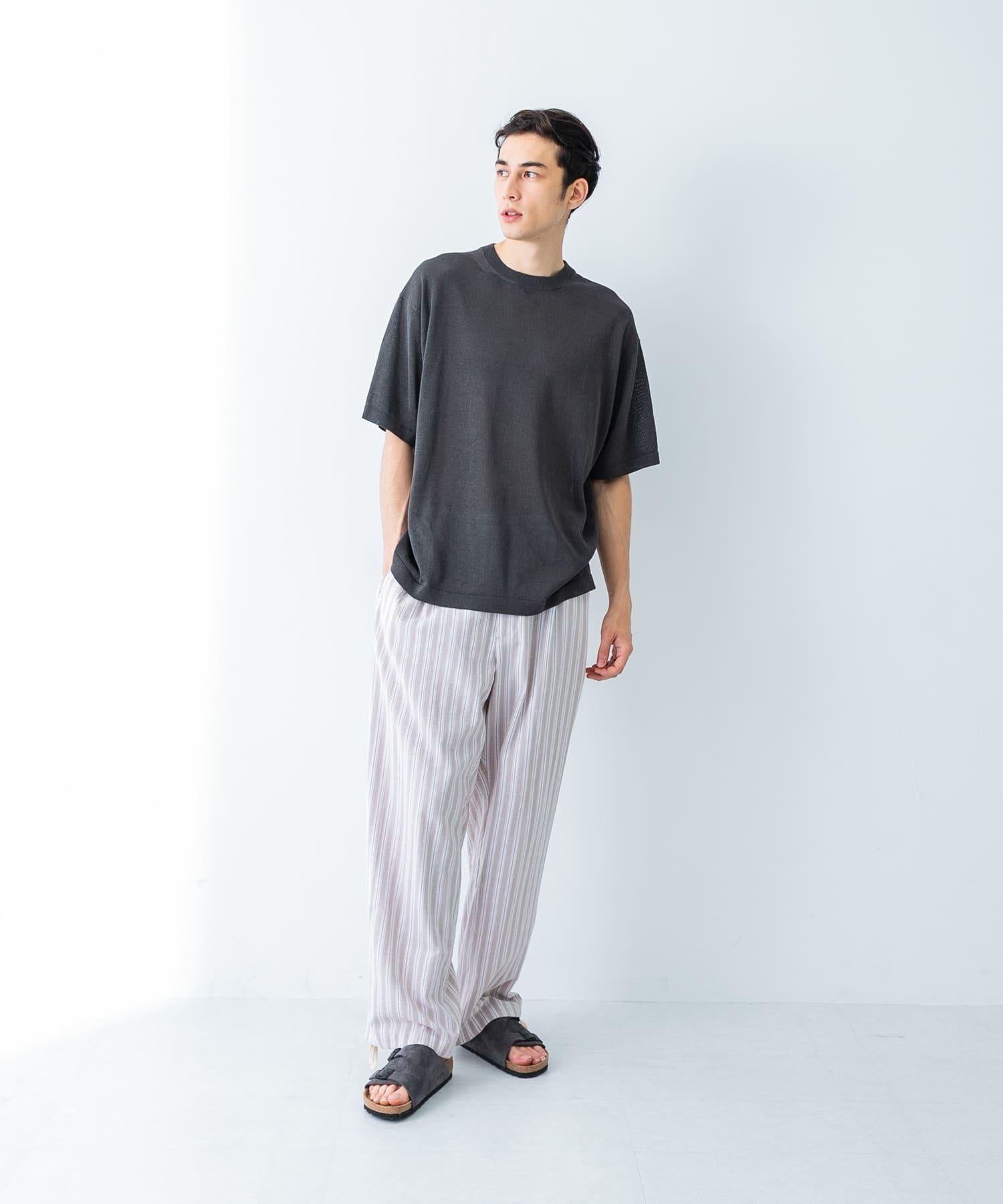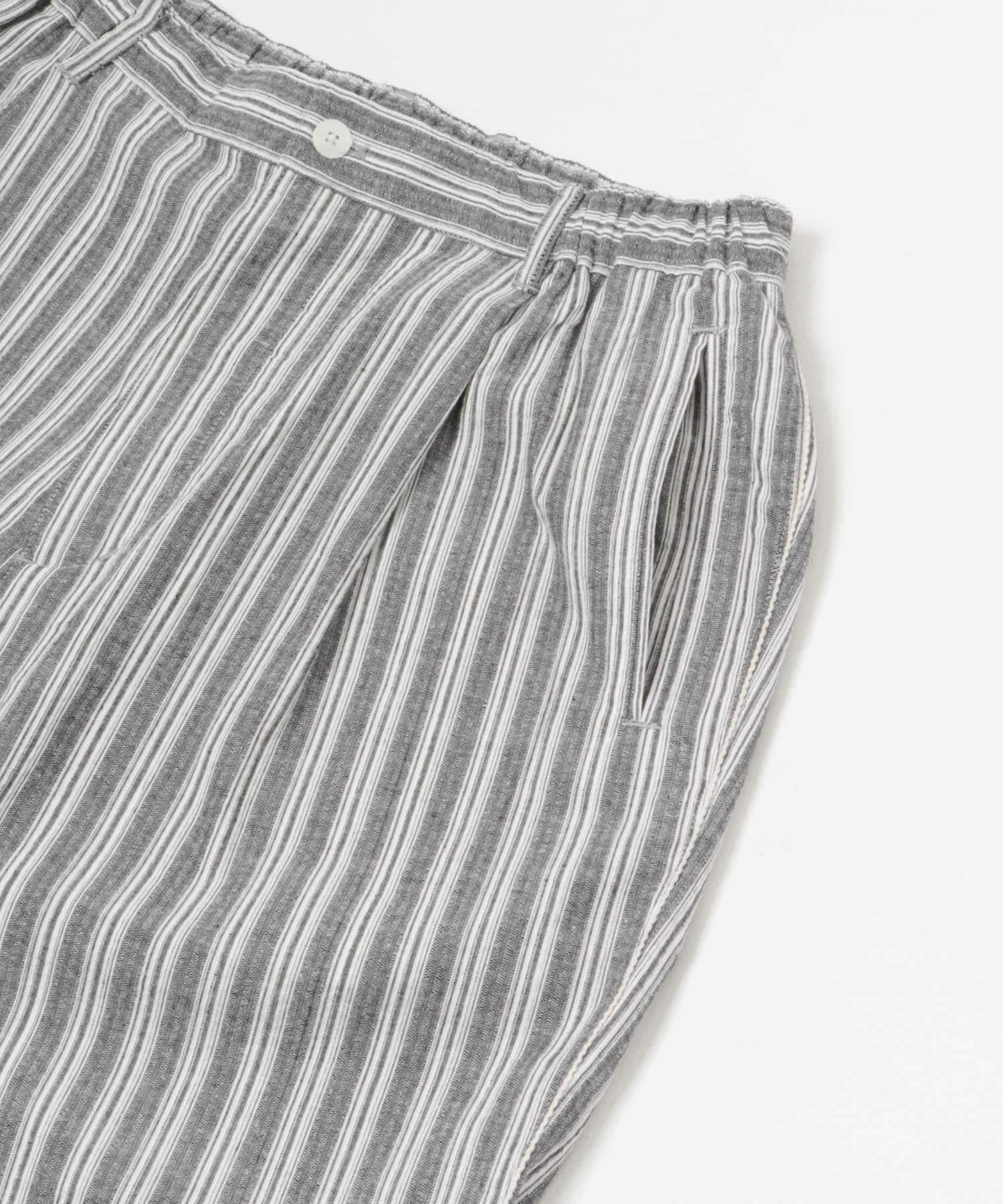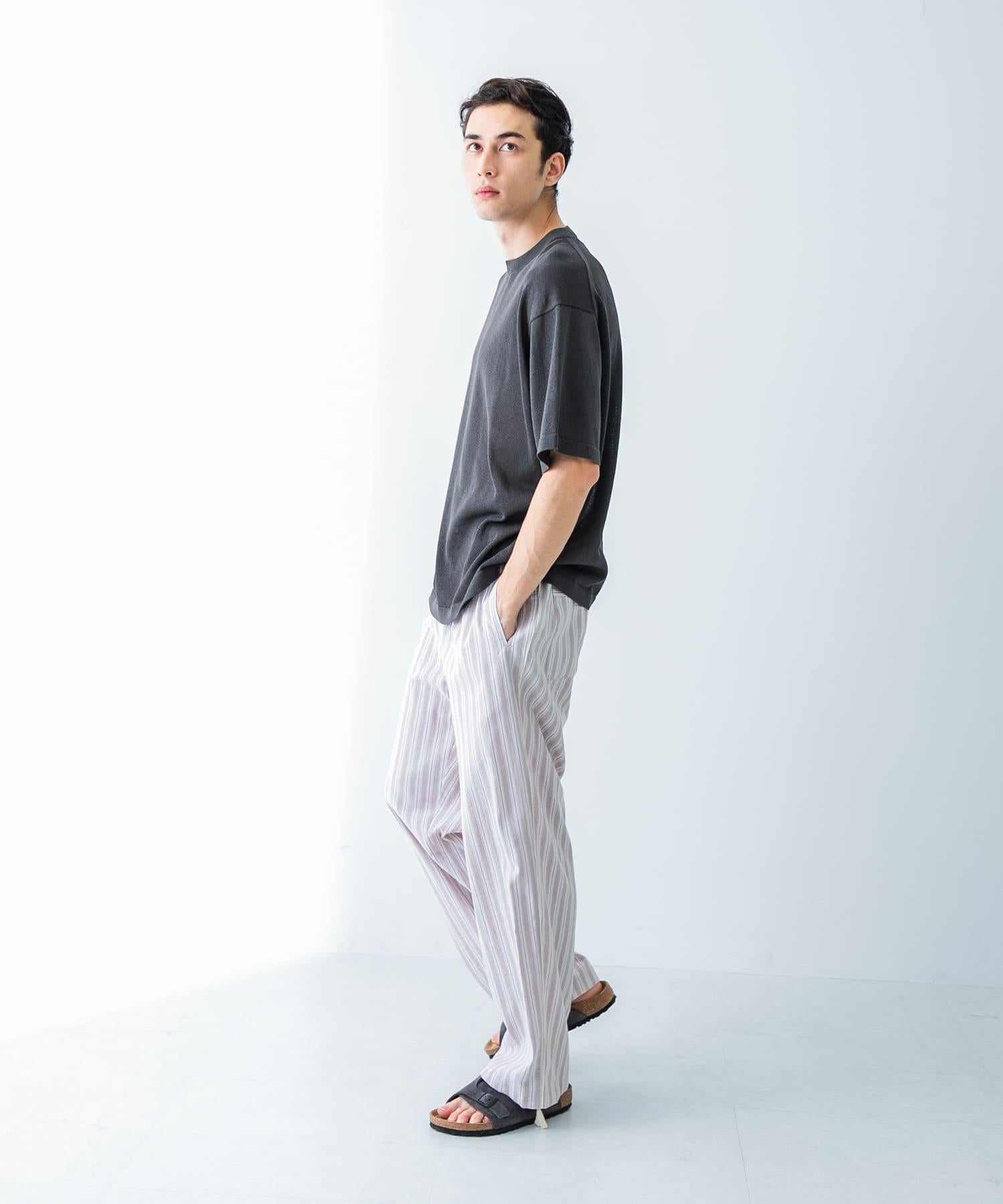 條紋休閒褲採用亞麻乾爽面料,剪裁適度寬鬆。