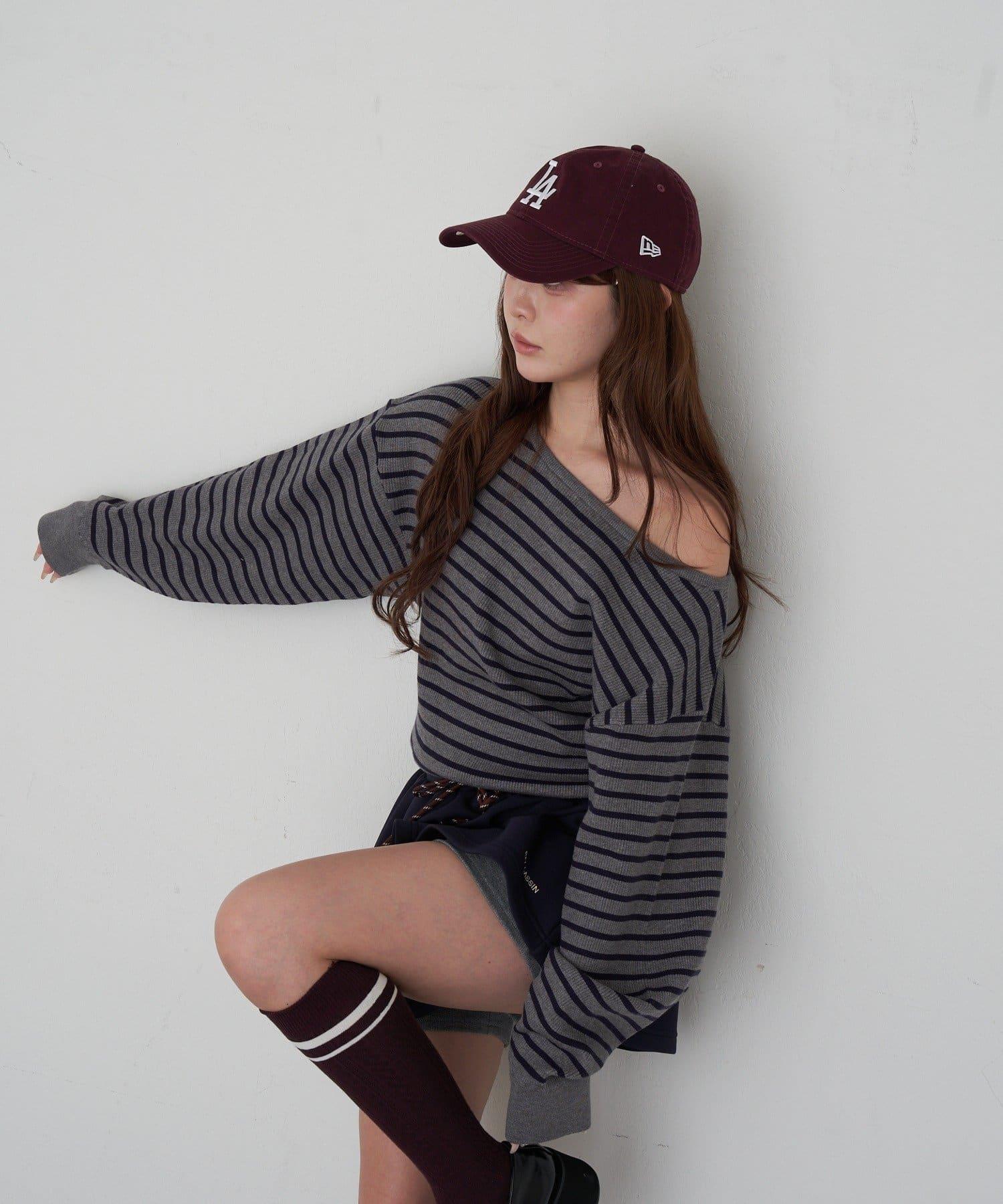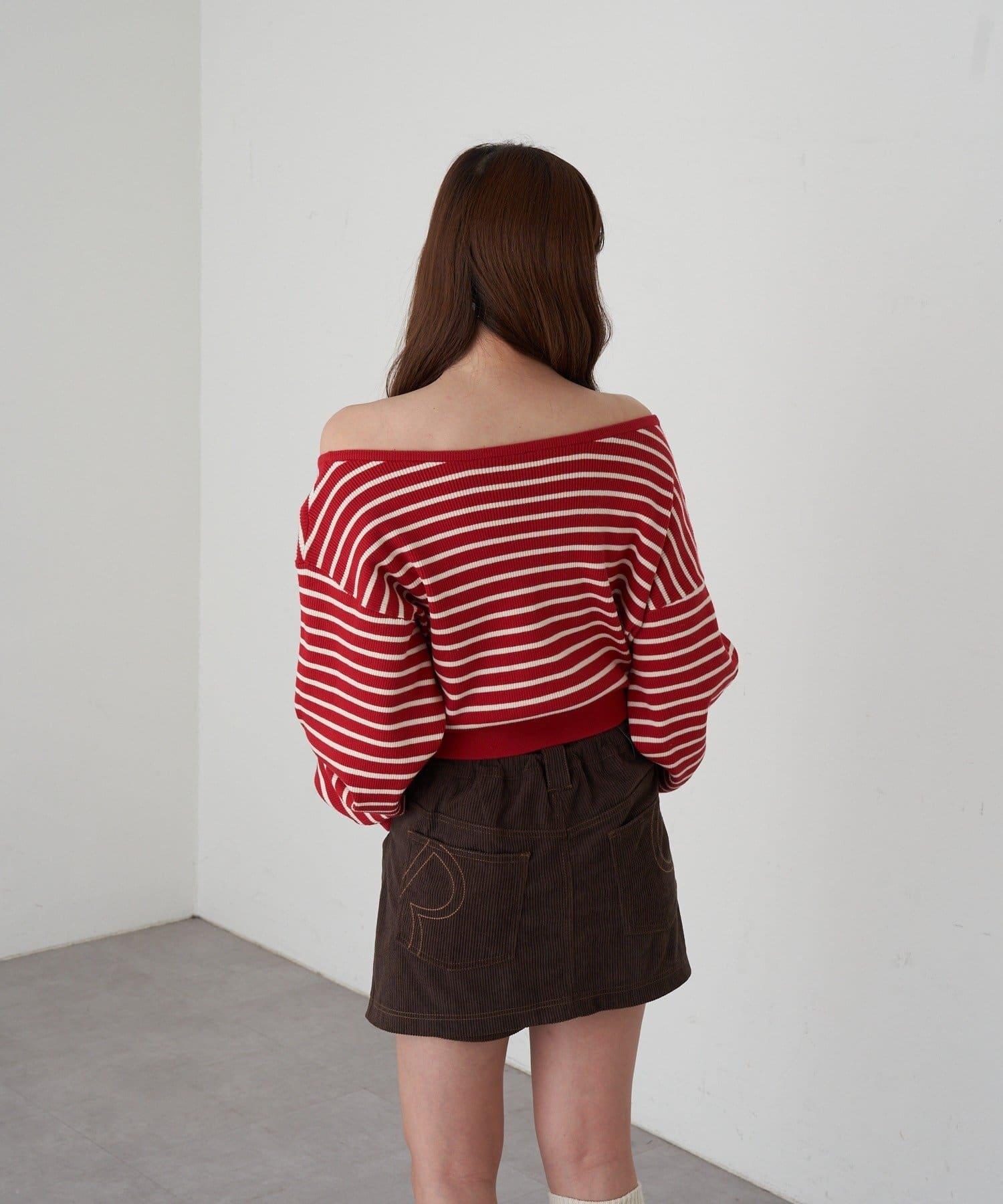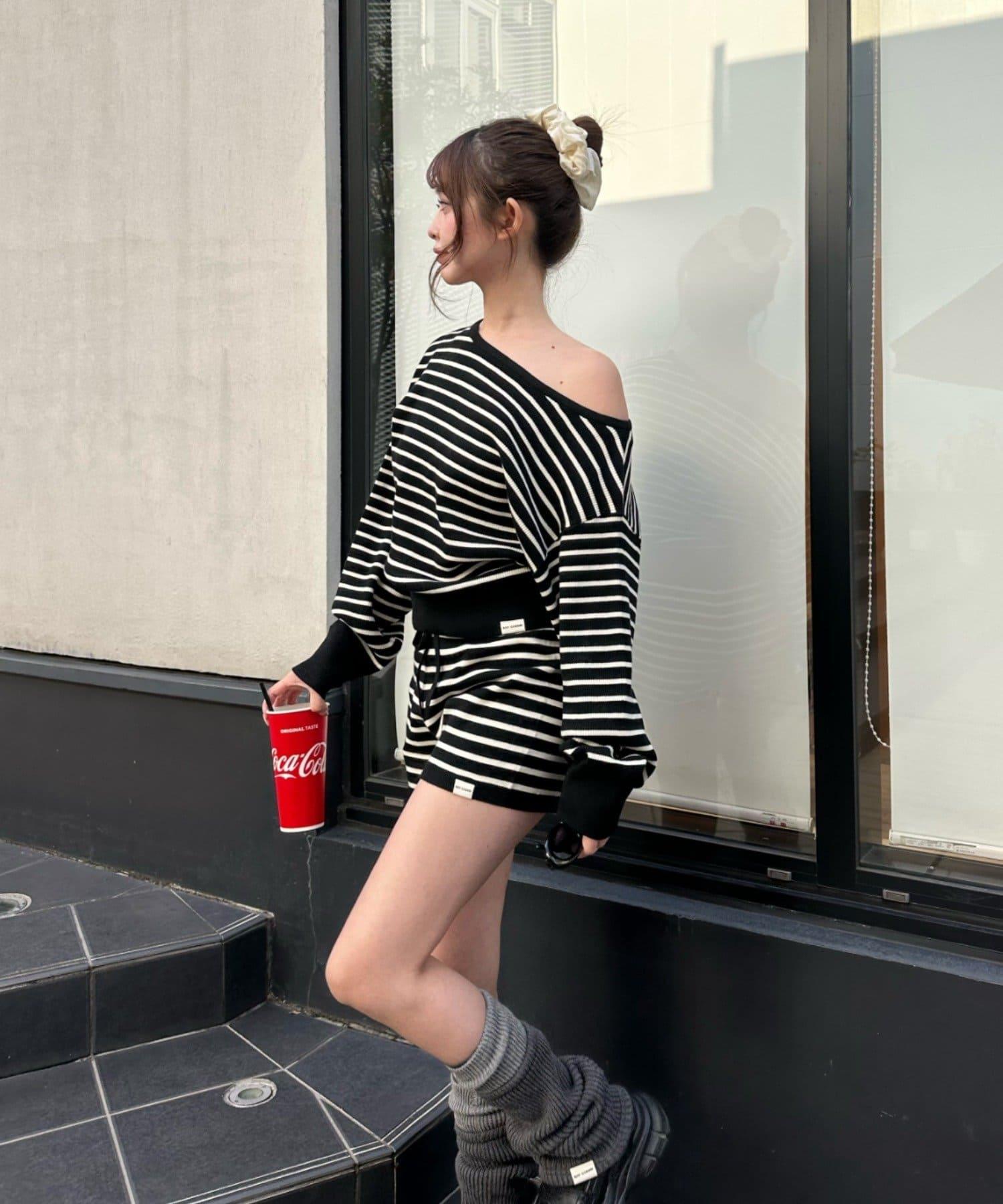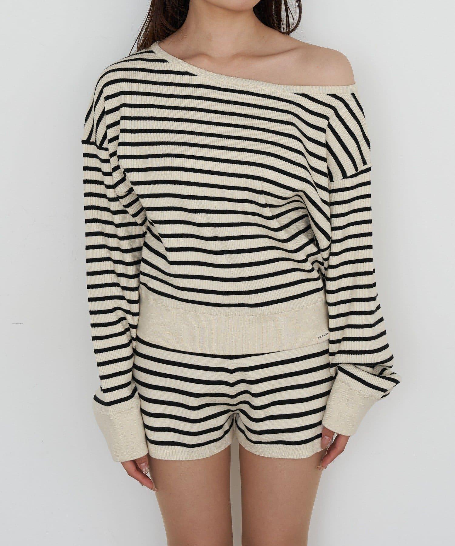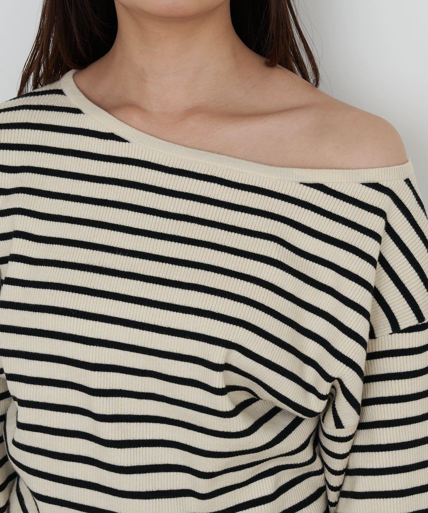 條紋單肩針織衫