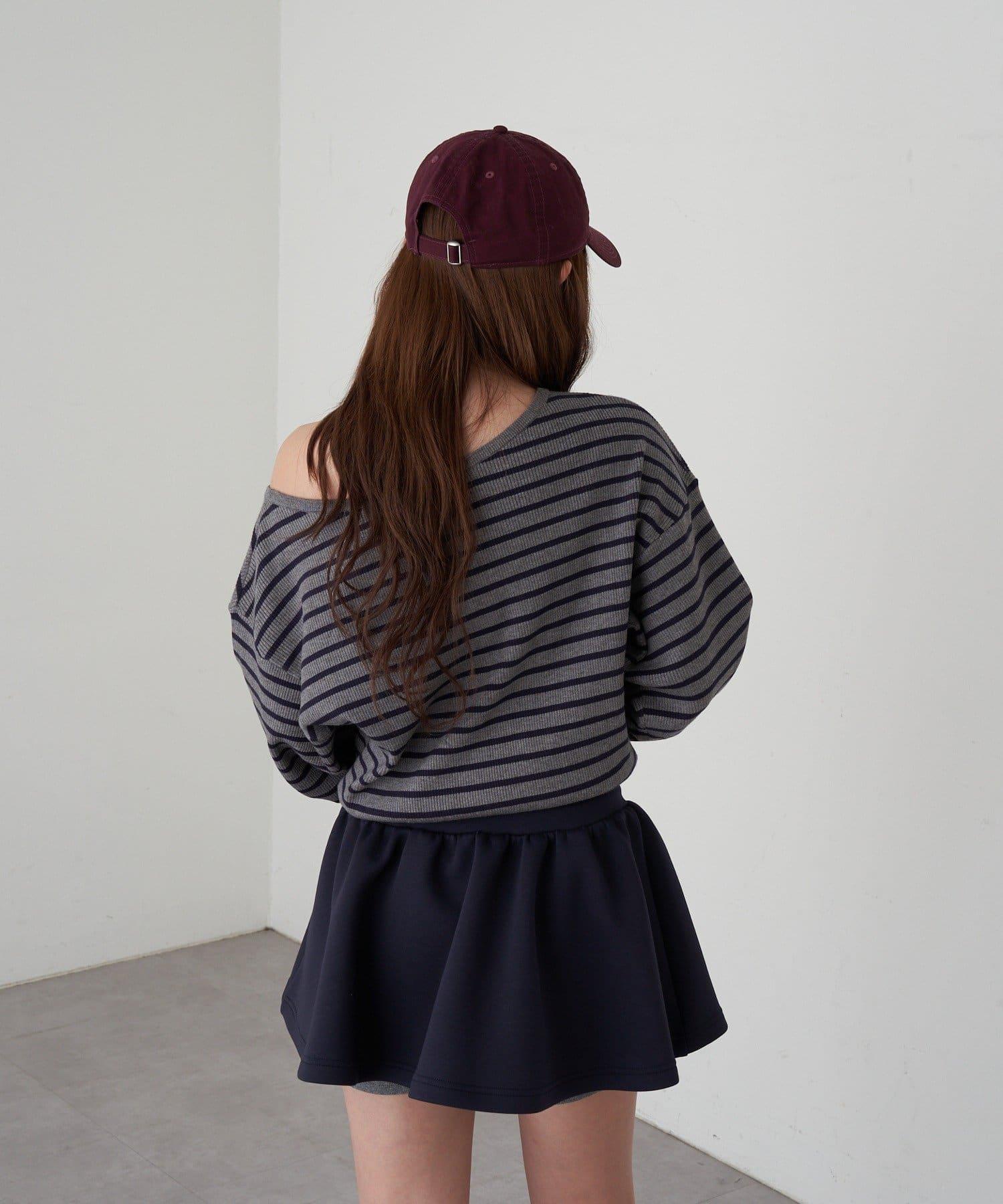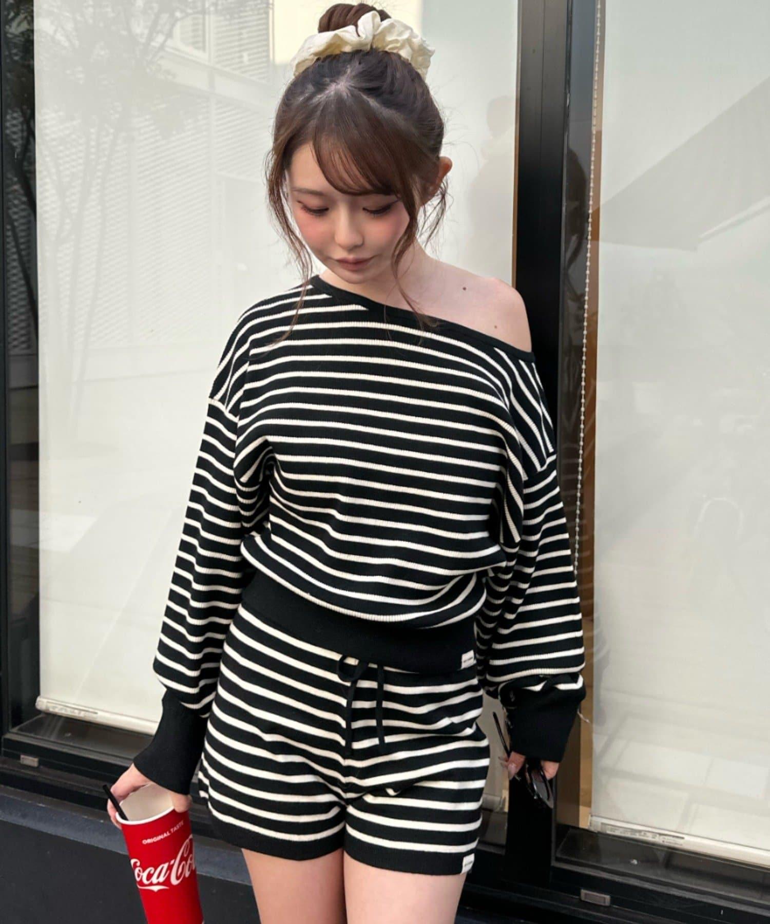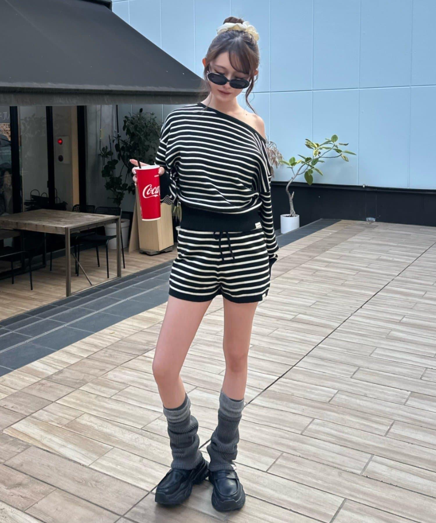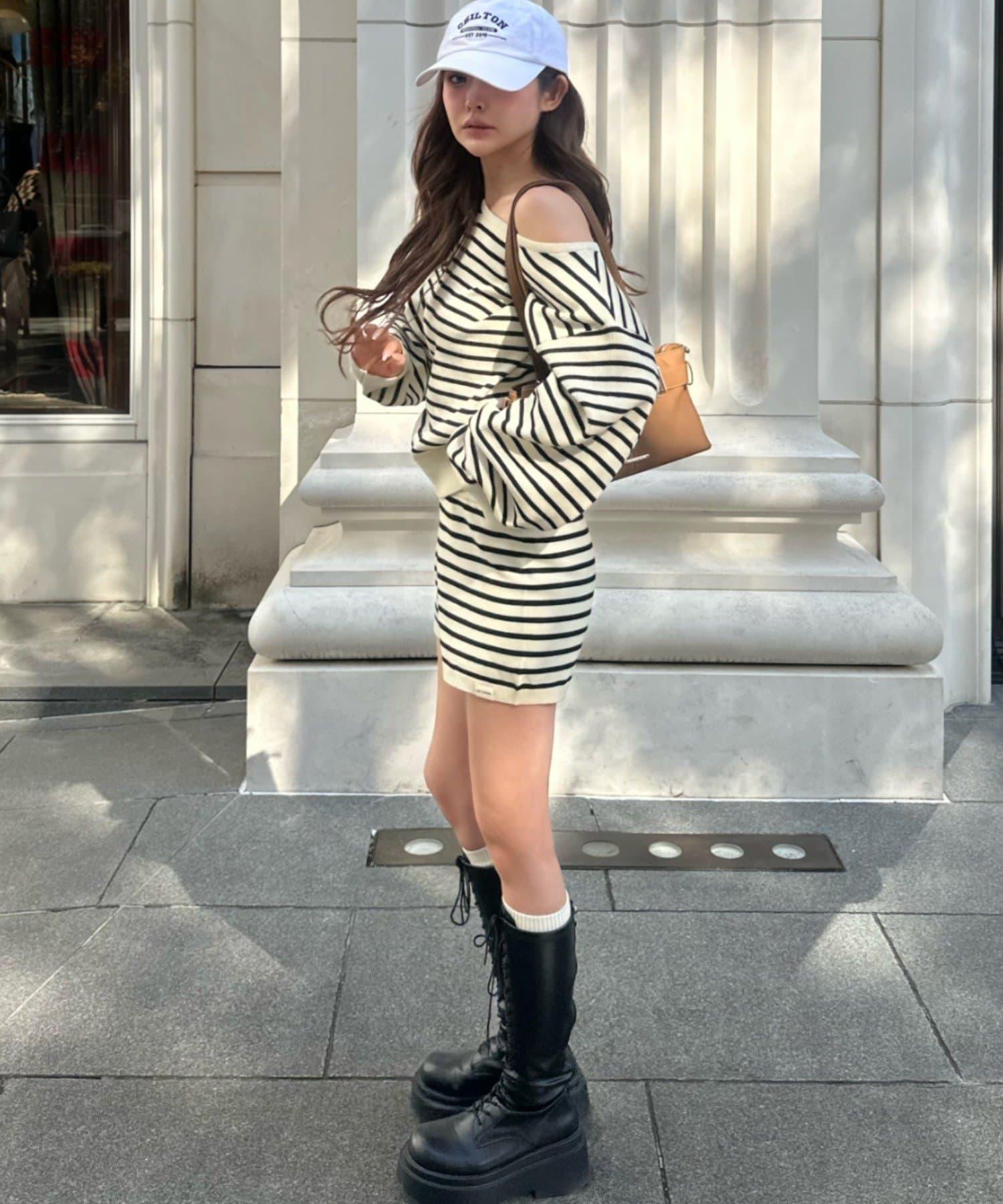 條紋單肩針織衫