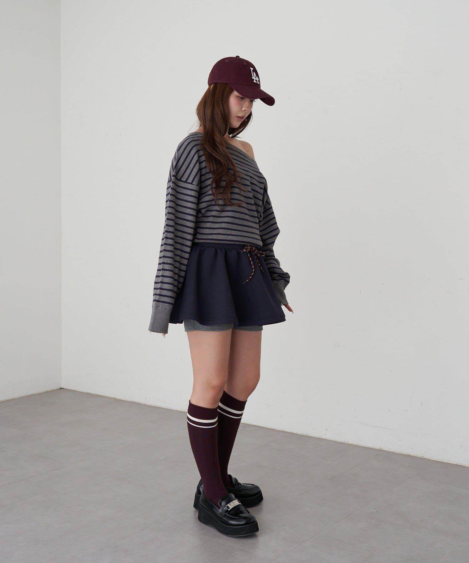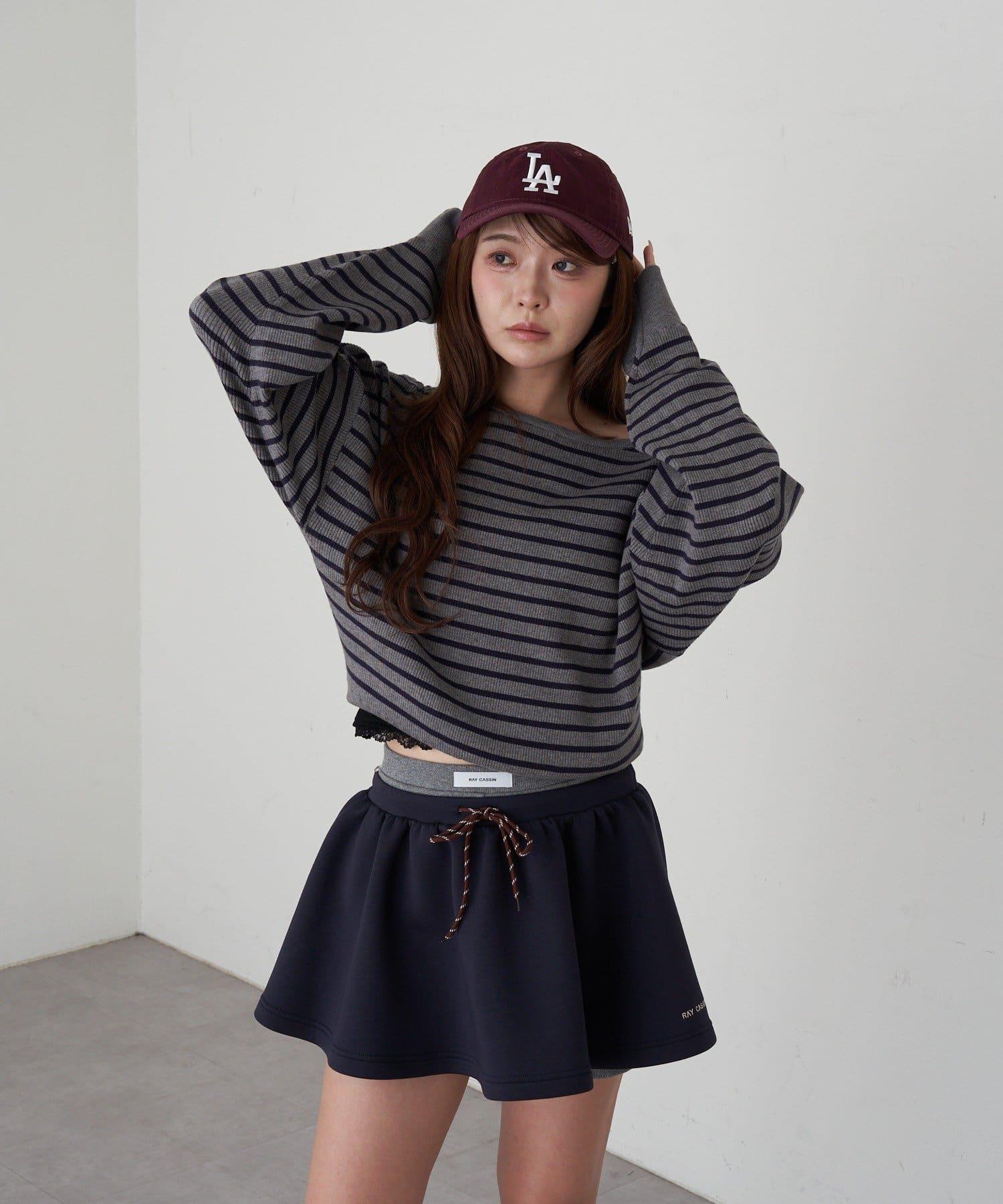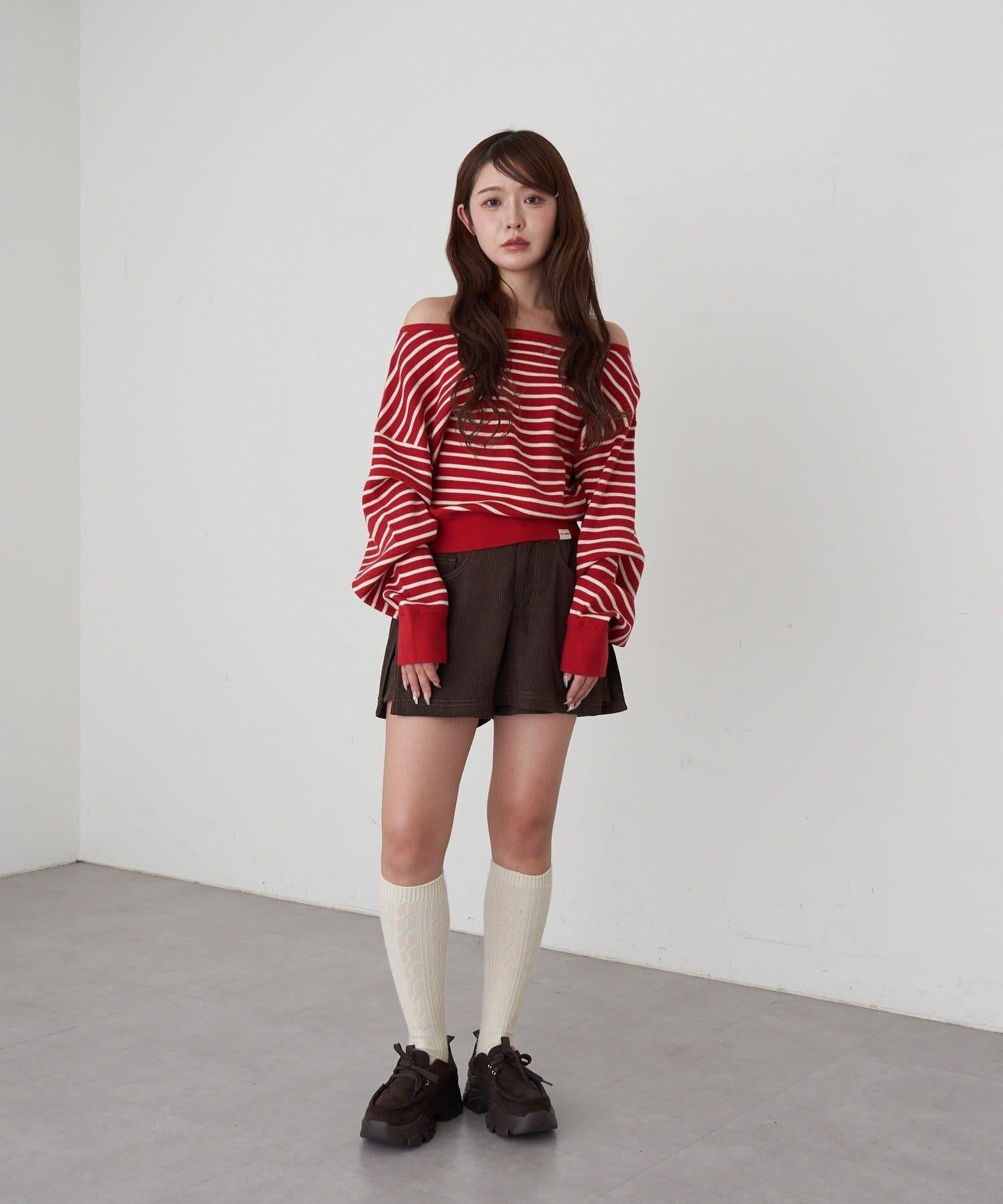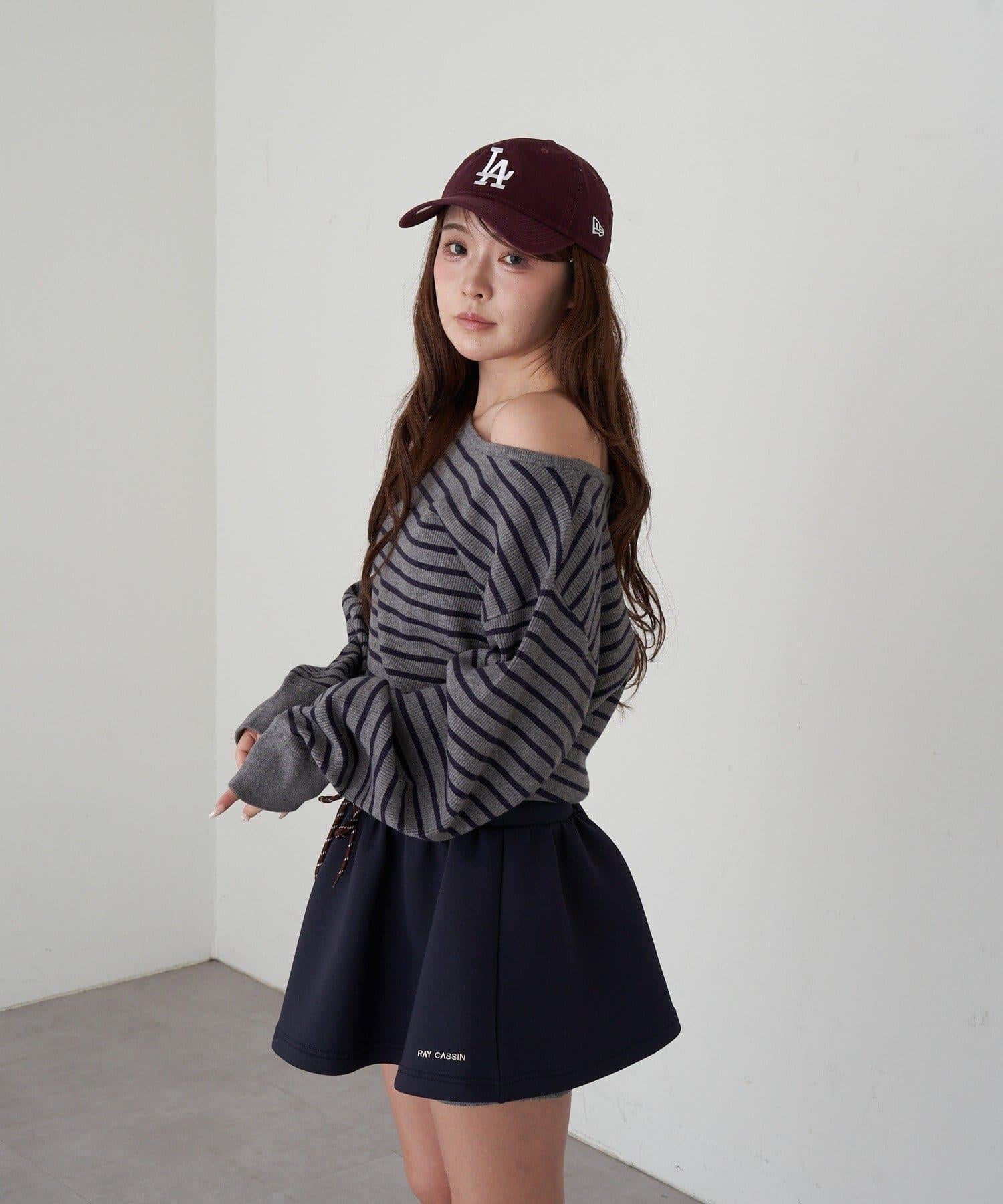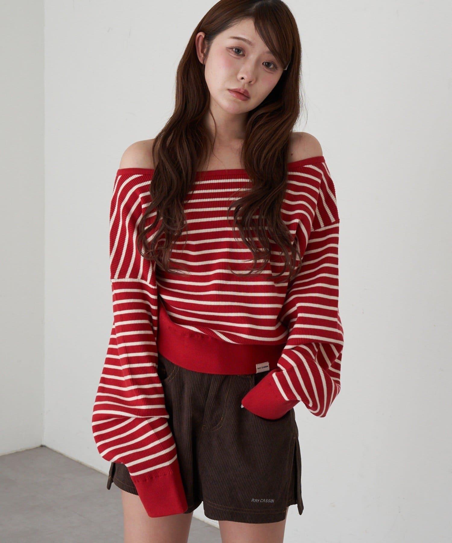 條紋單肩針織衫