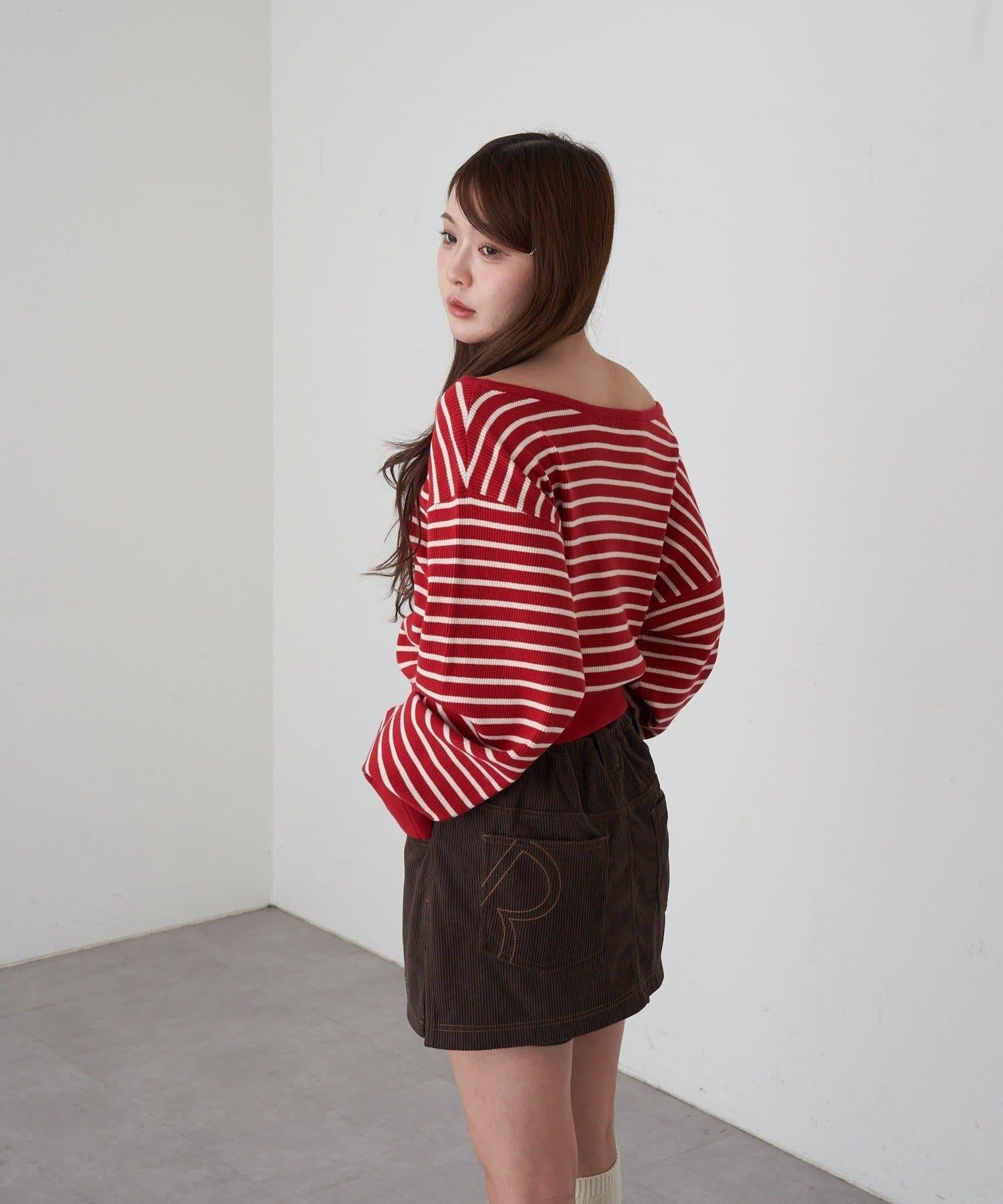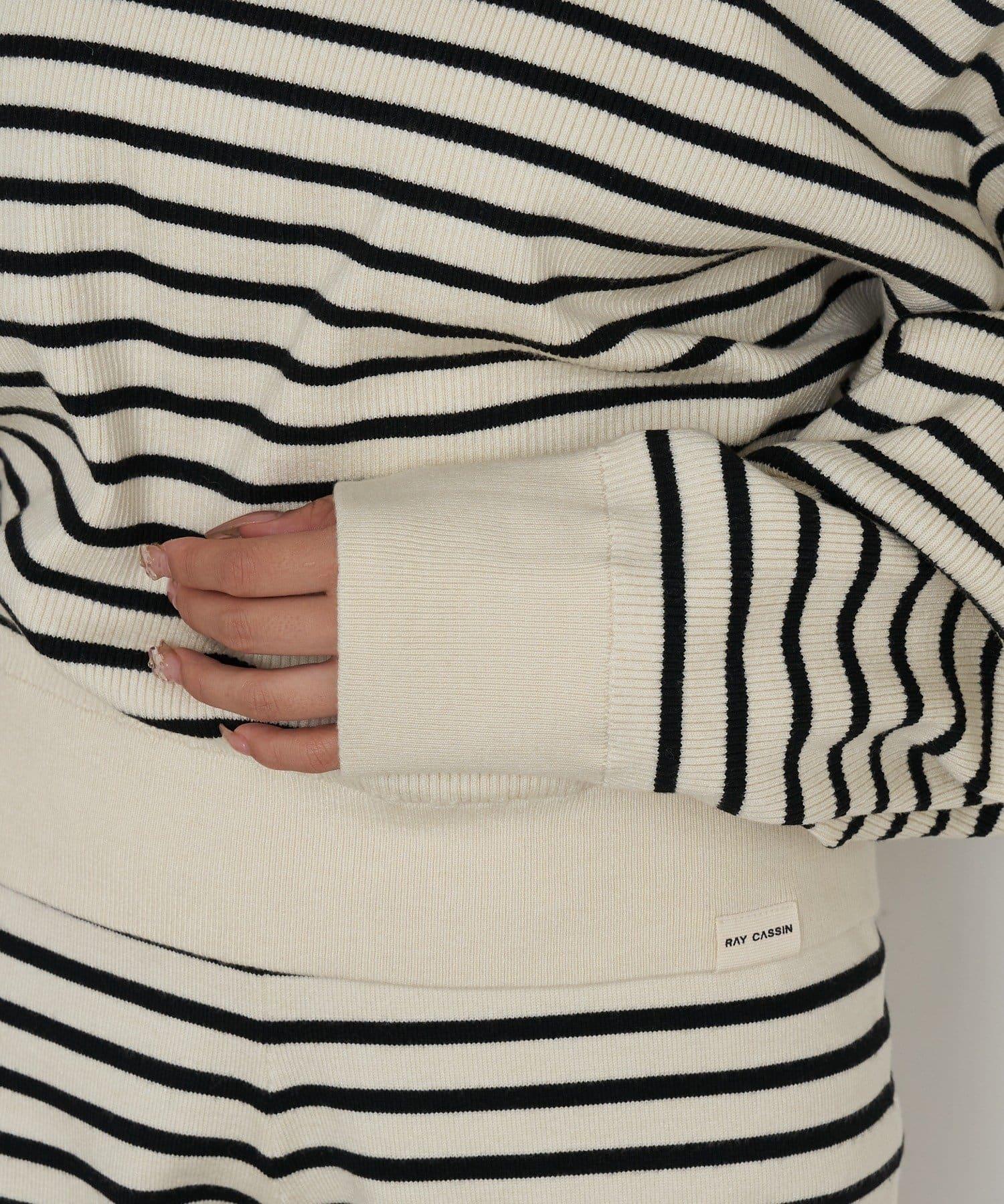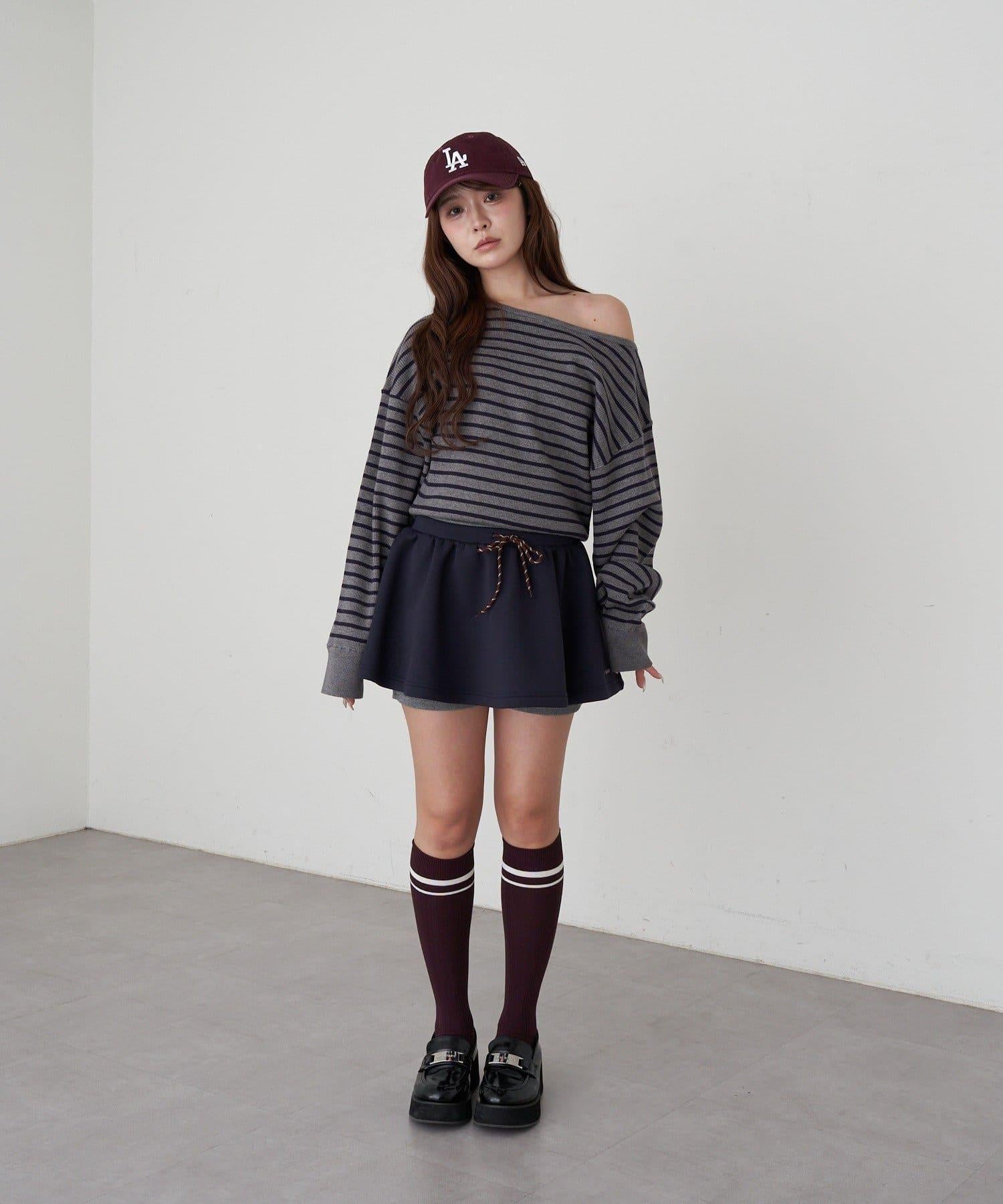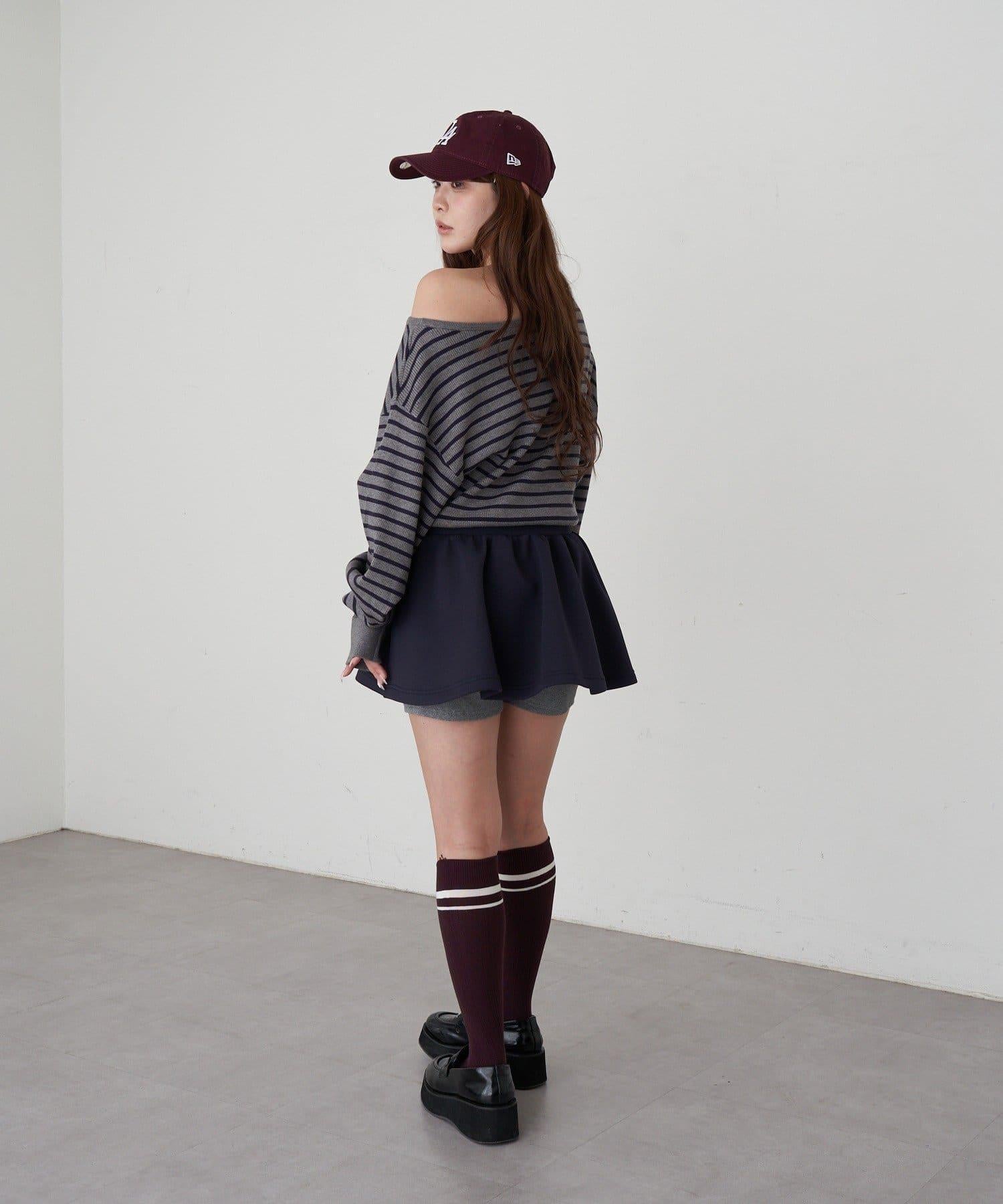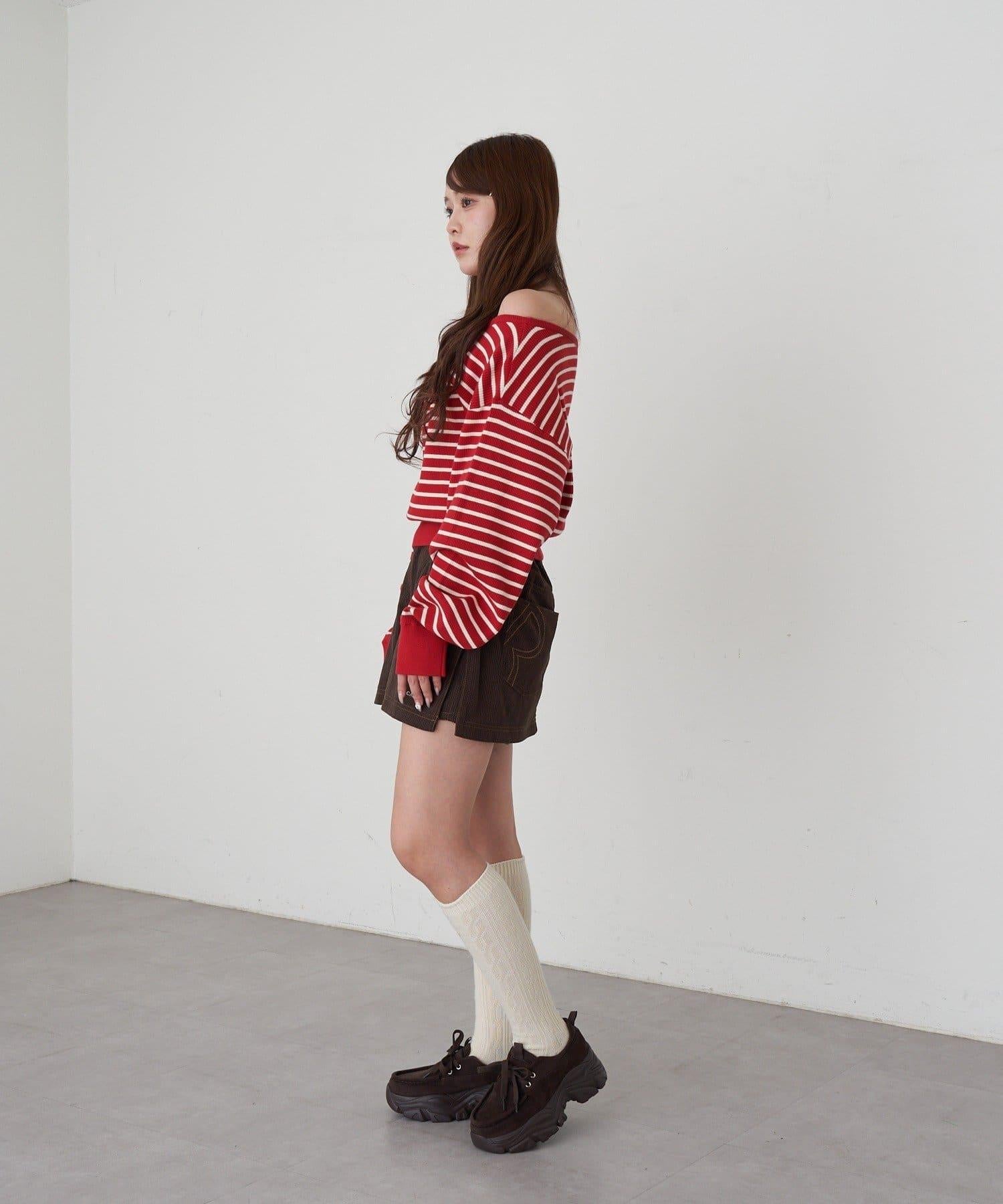 條紋單肩針織衫