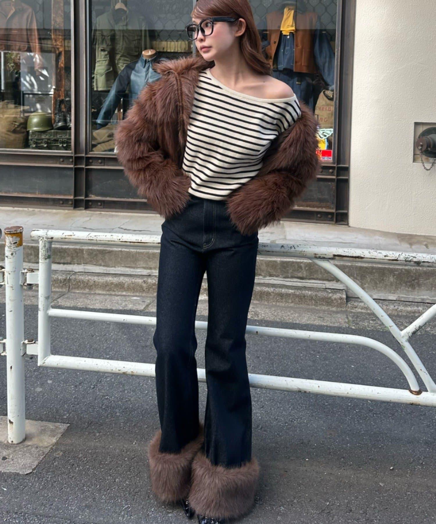 與喇叭牛仔褲搭配,風格優美。