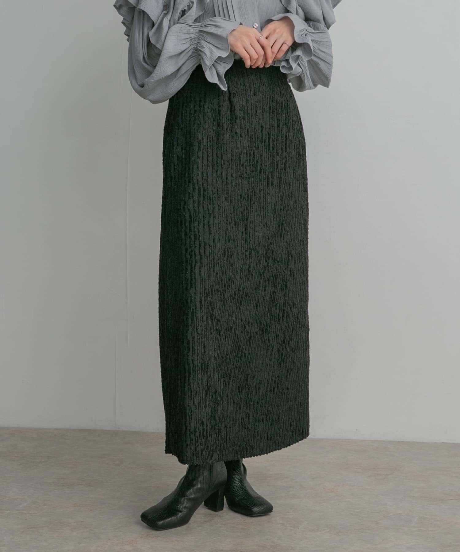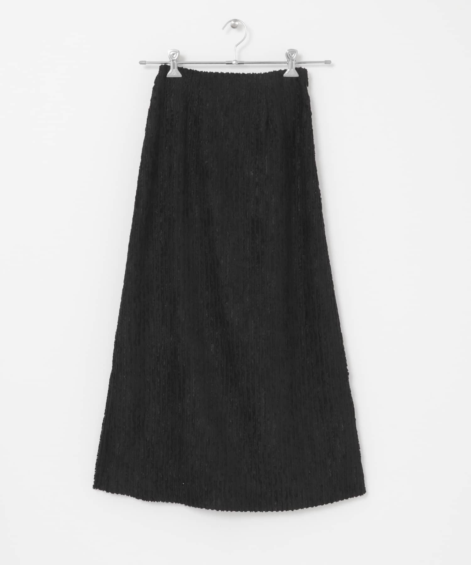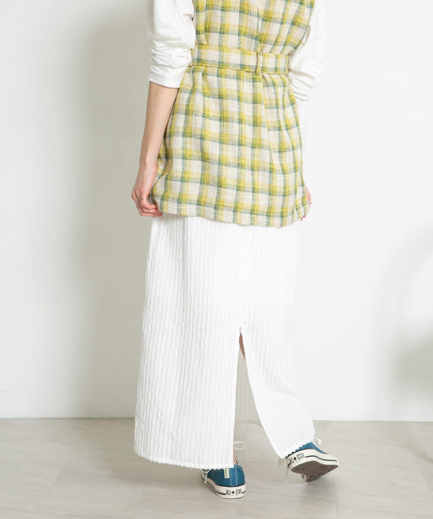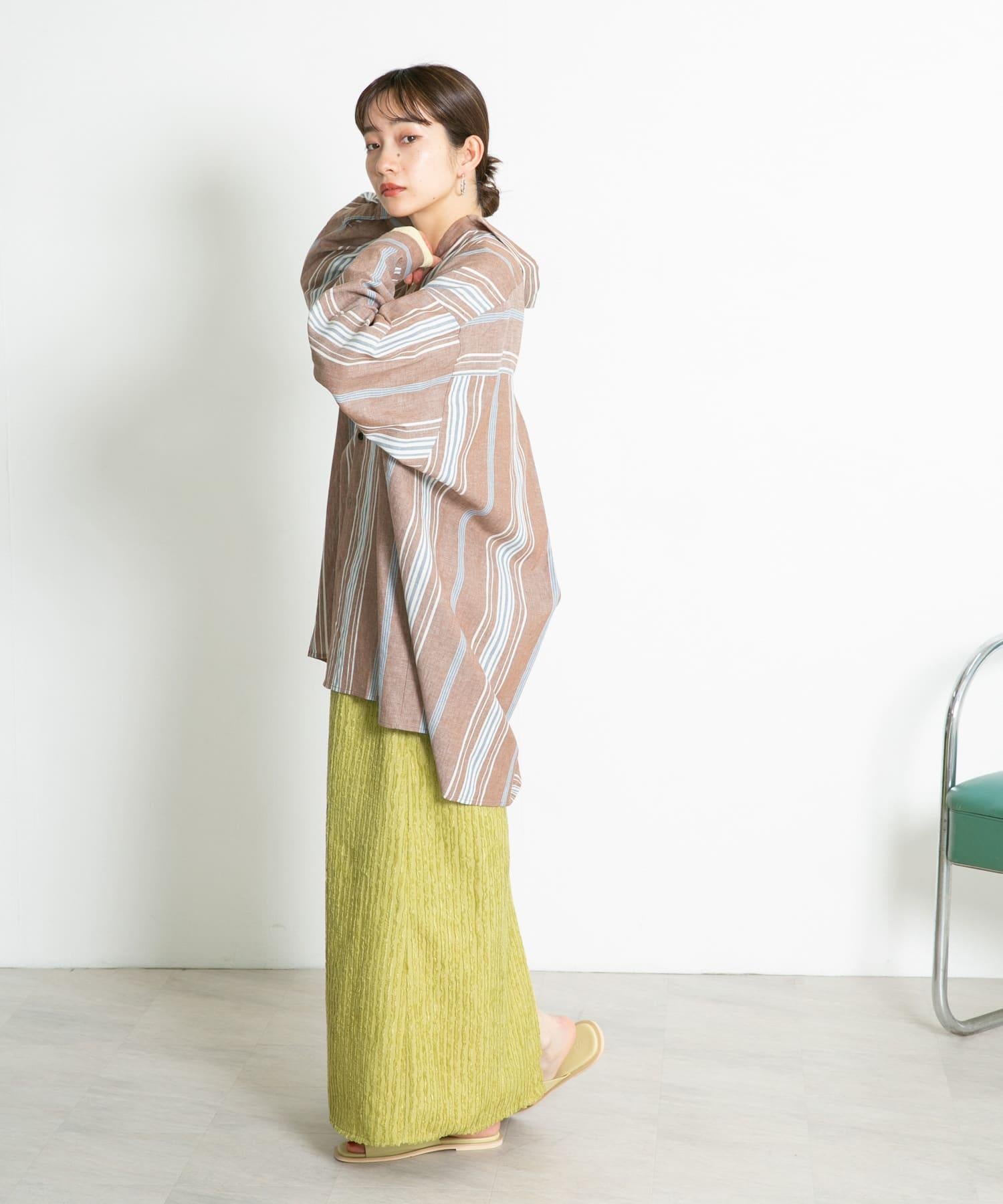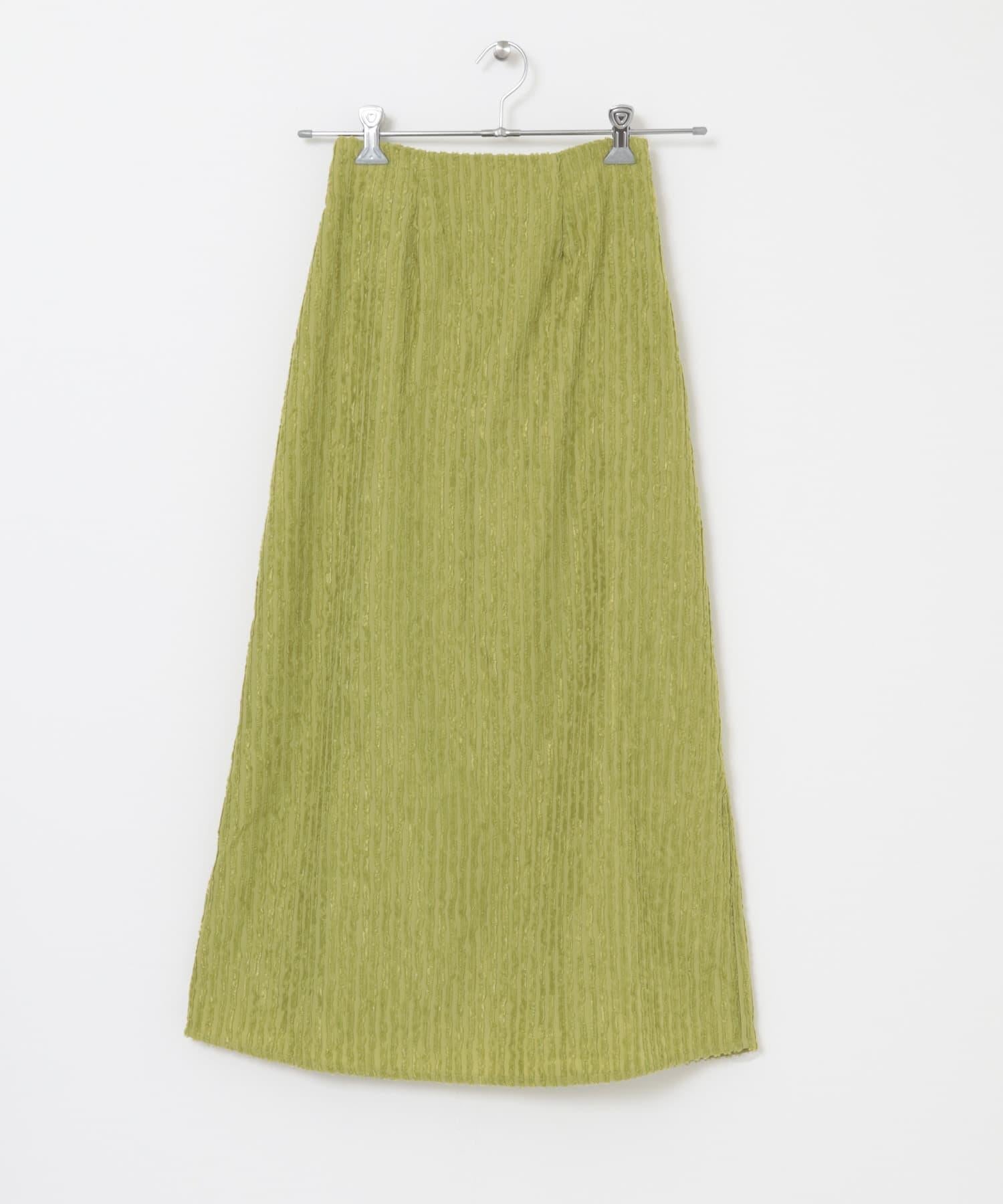 條紋提花圖案的基本款喇叭廓形裙,表面的紋理效果別具一格。值得注意的是,背部的鬆緊設計讓穿著更加舒適,背部的開衩設計營造出良好的休閒感。請選擇您喜歡的顏色。