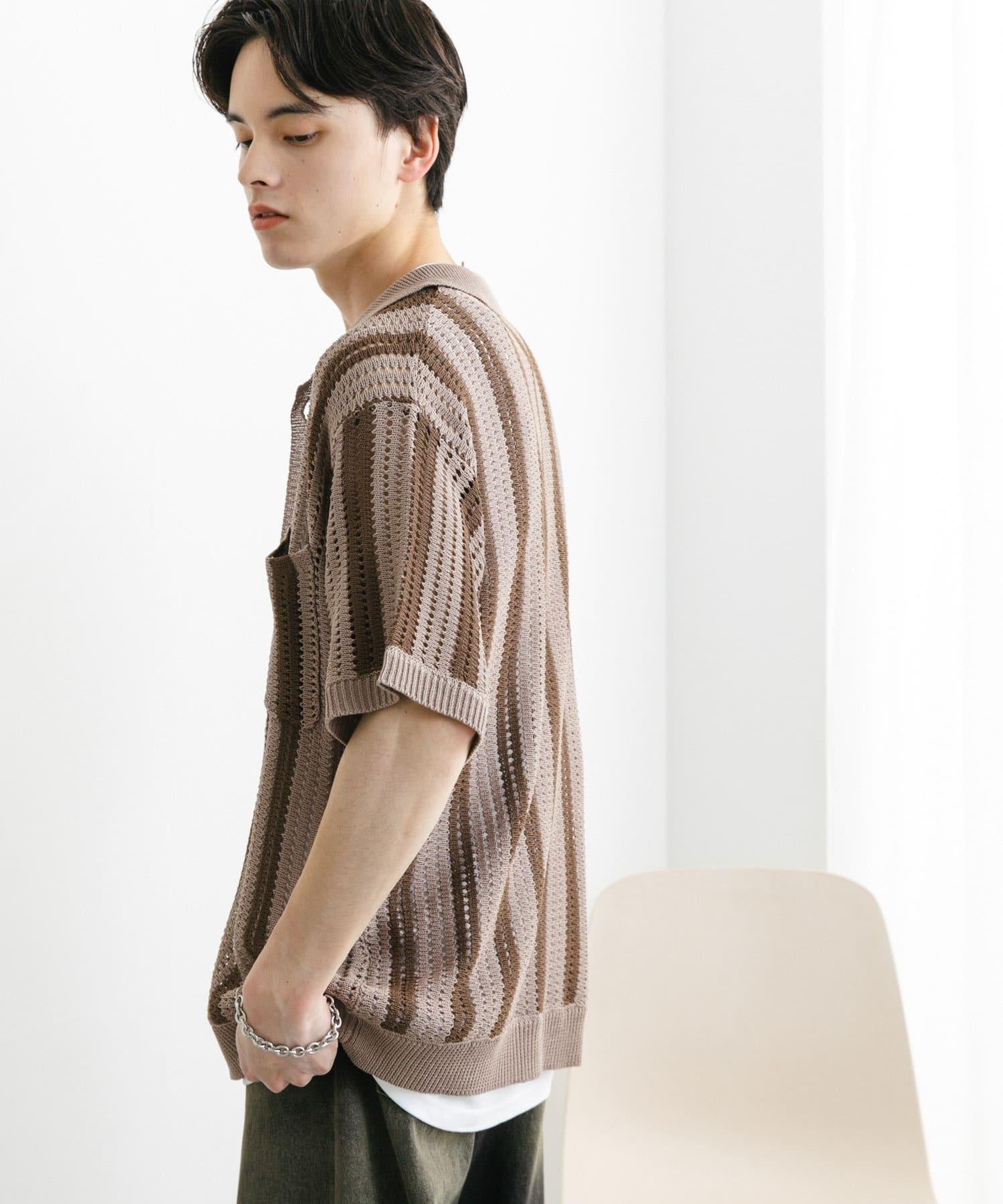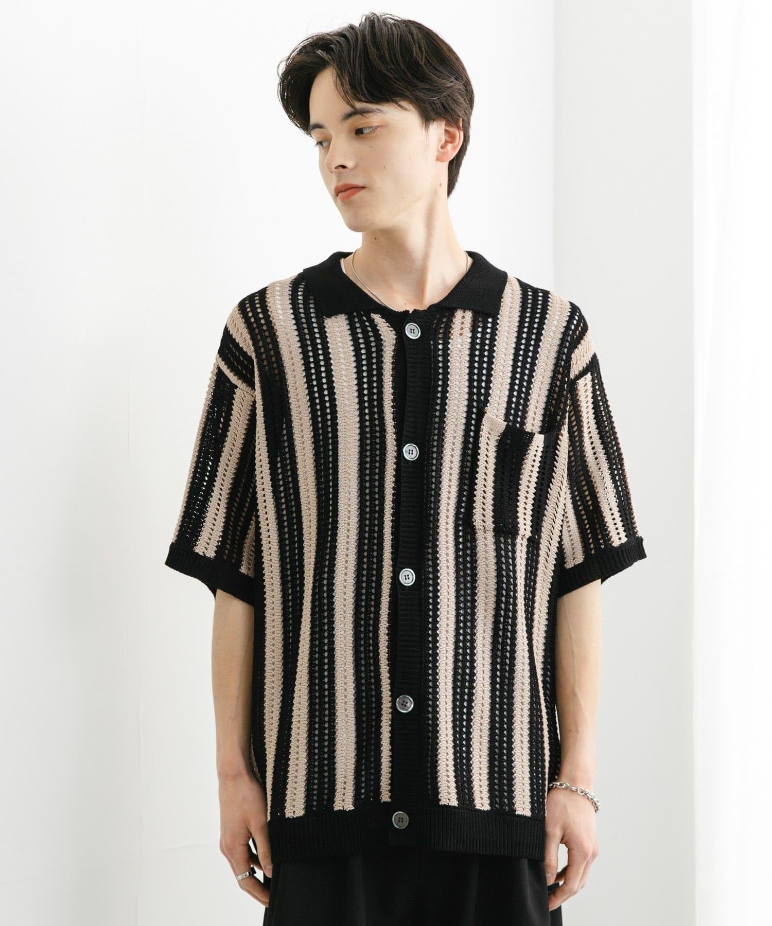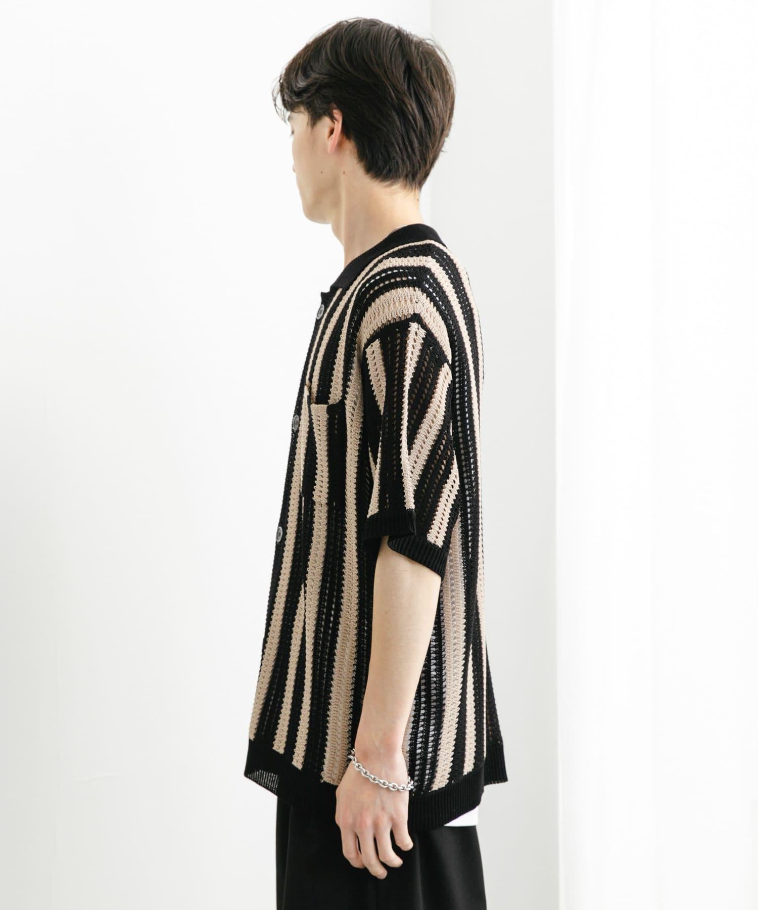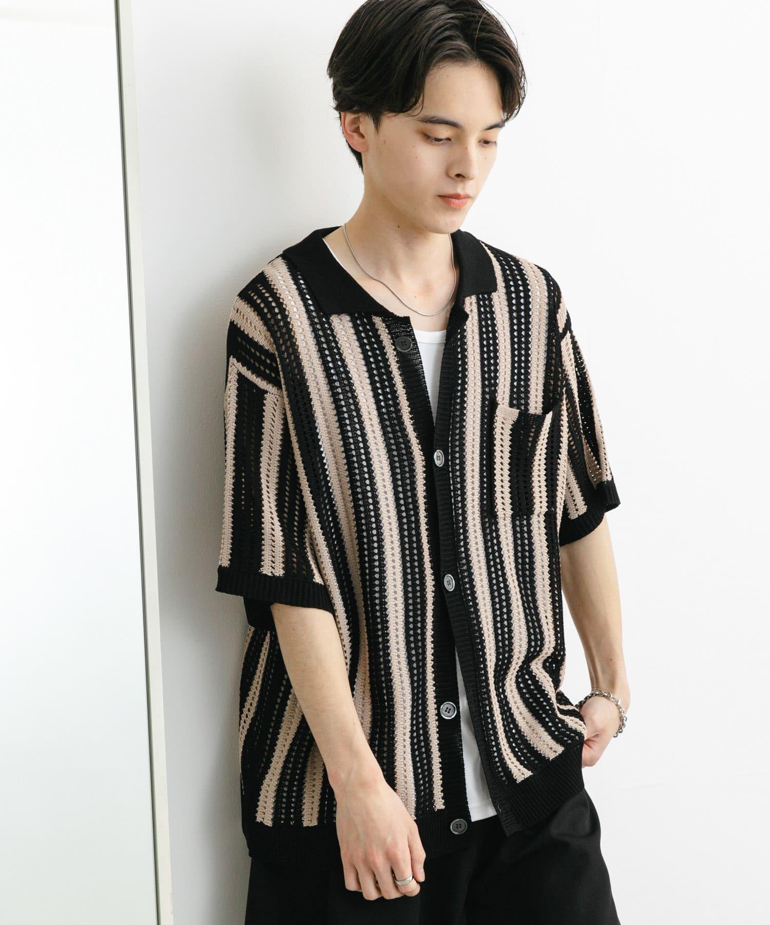 〇條紋圖案搭配透視針織面料,衝擊力十足
