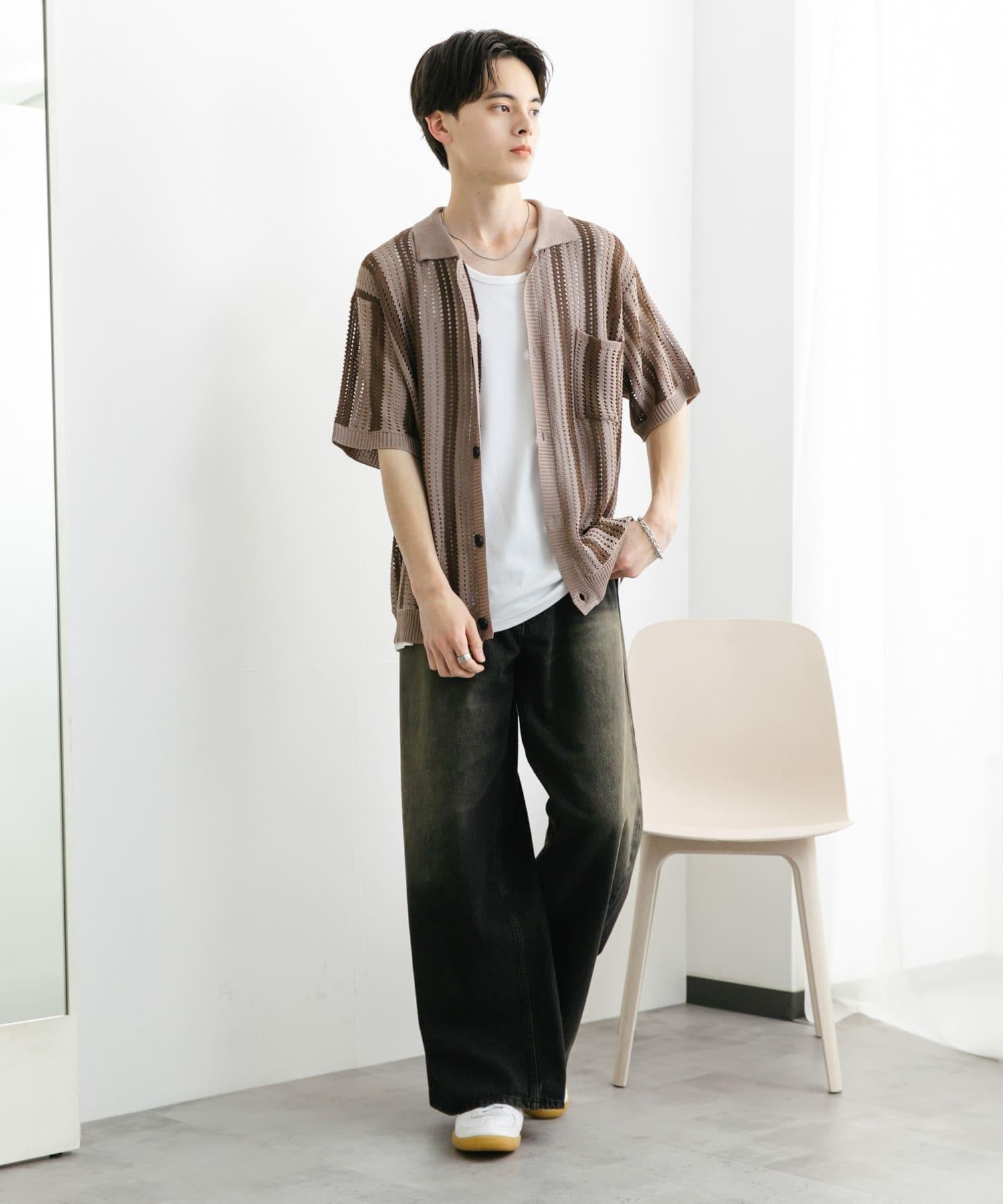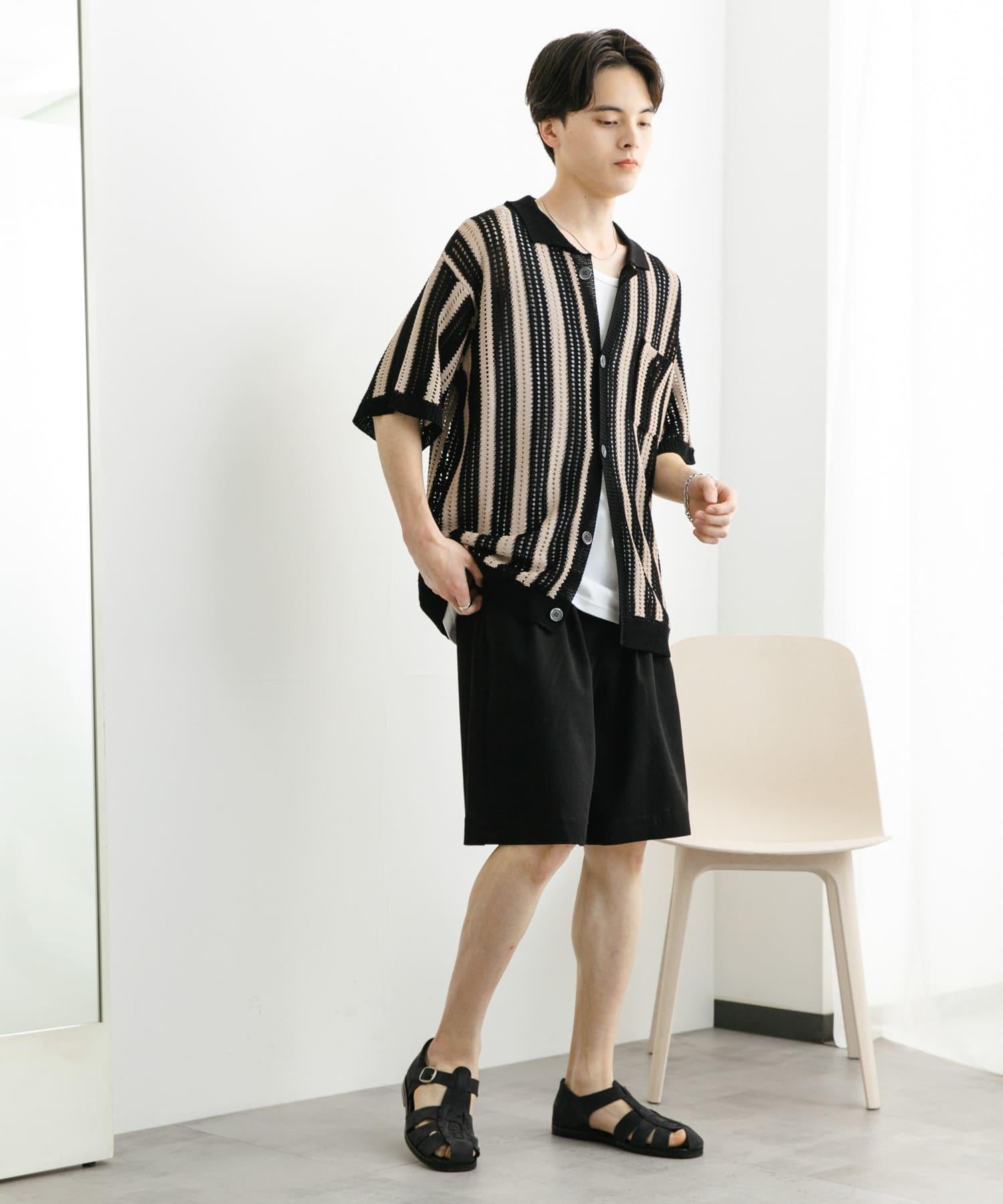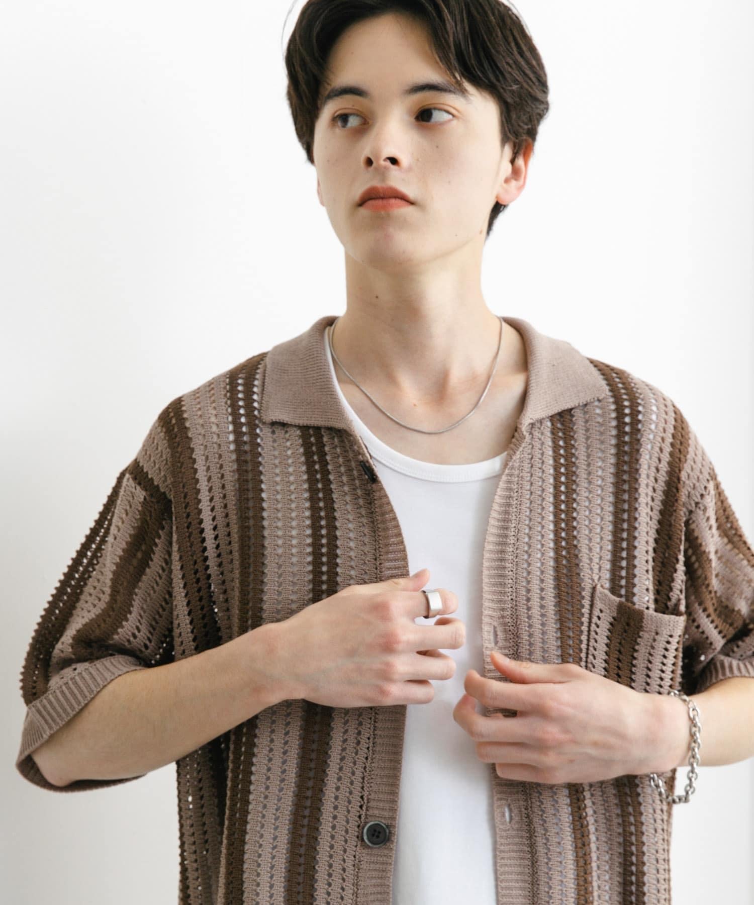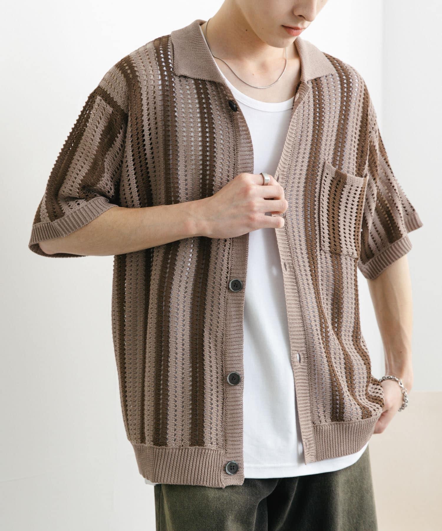 〇條紋圖案搭配透視針織面料,衝擊力十足