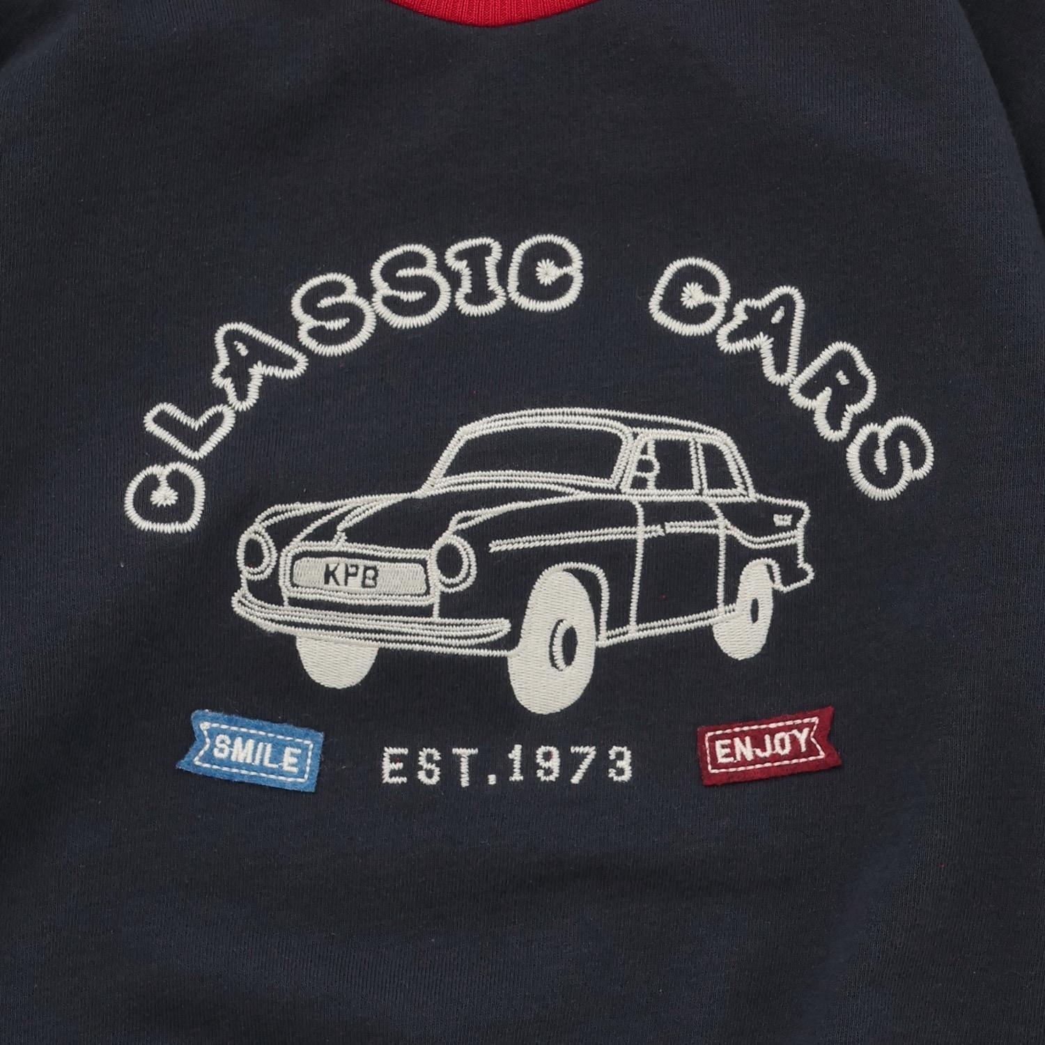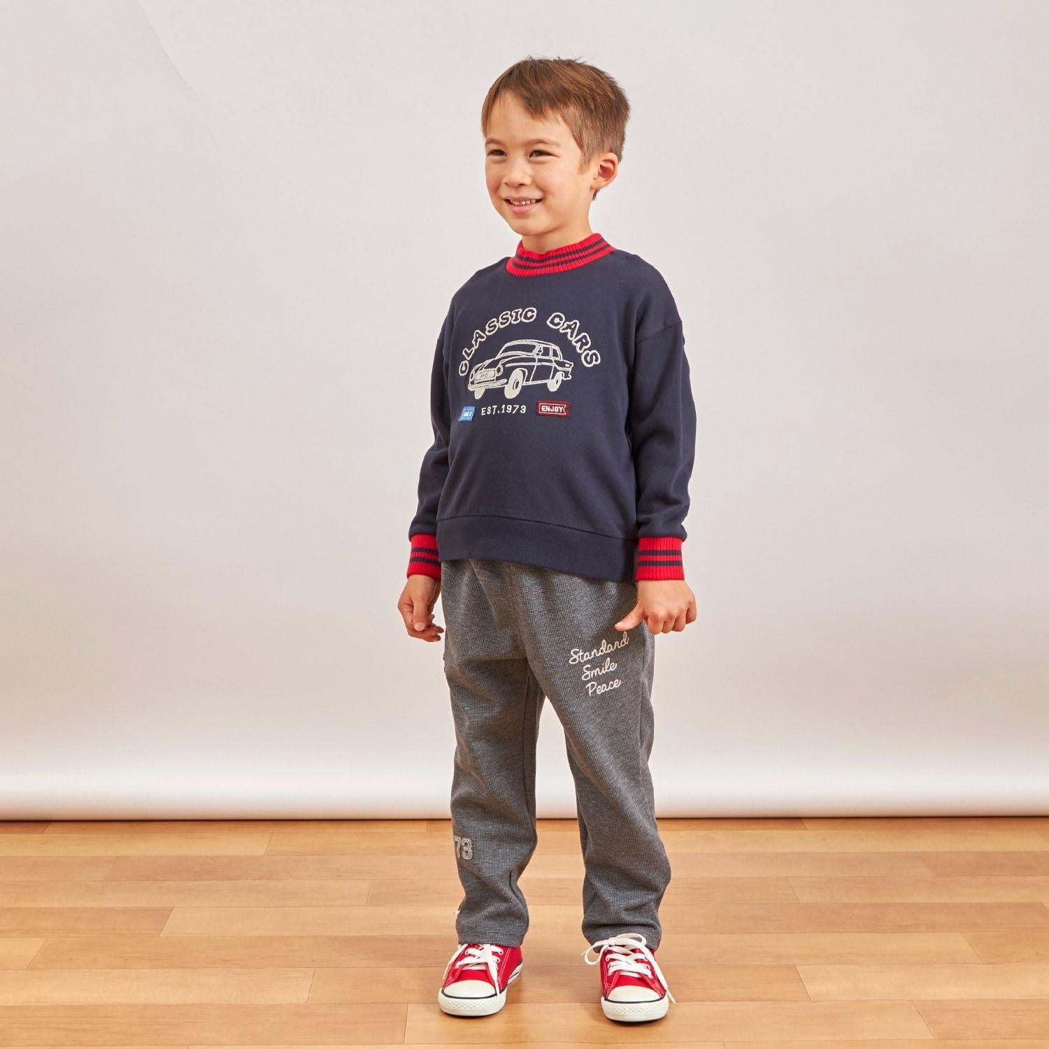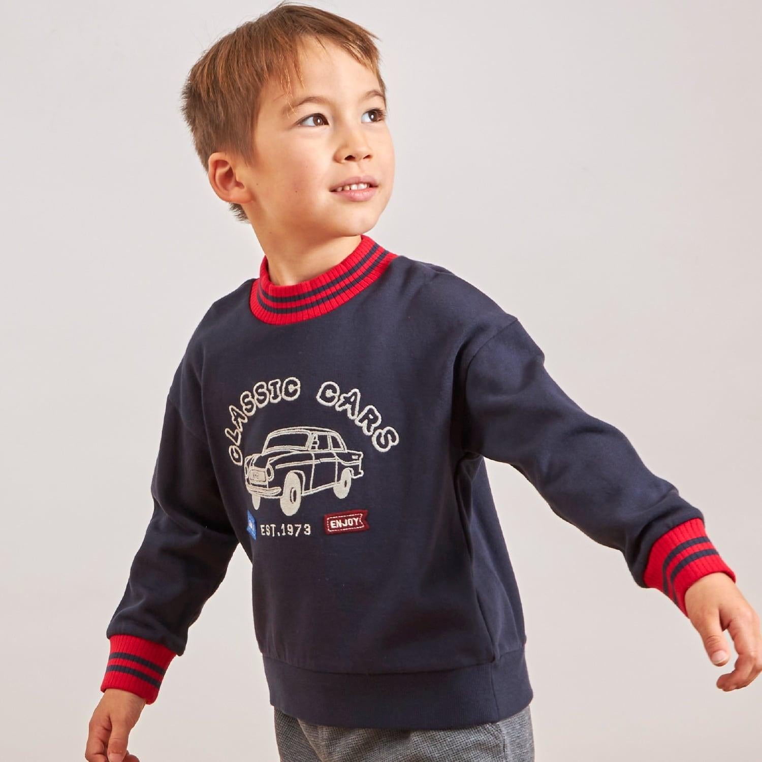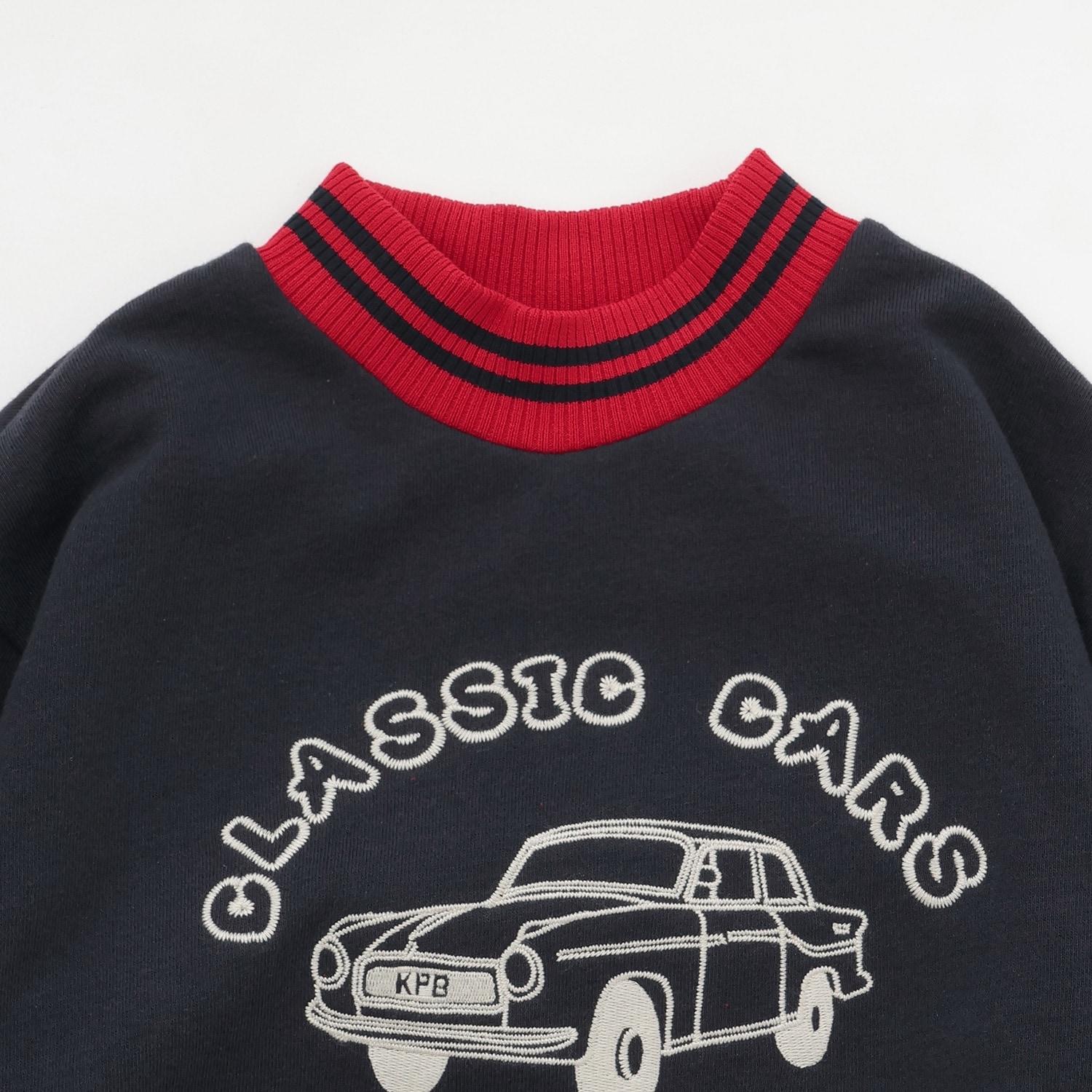 運動衫的領口和袖口採用了色彩協調的線條羅紋。胸前用線描刺繡表現經典汽車圖案,增添了休閒感。背部採用磨毛處理,保暖性好,在接下來的季節和日常使用中都會很活躍。