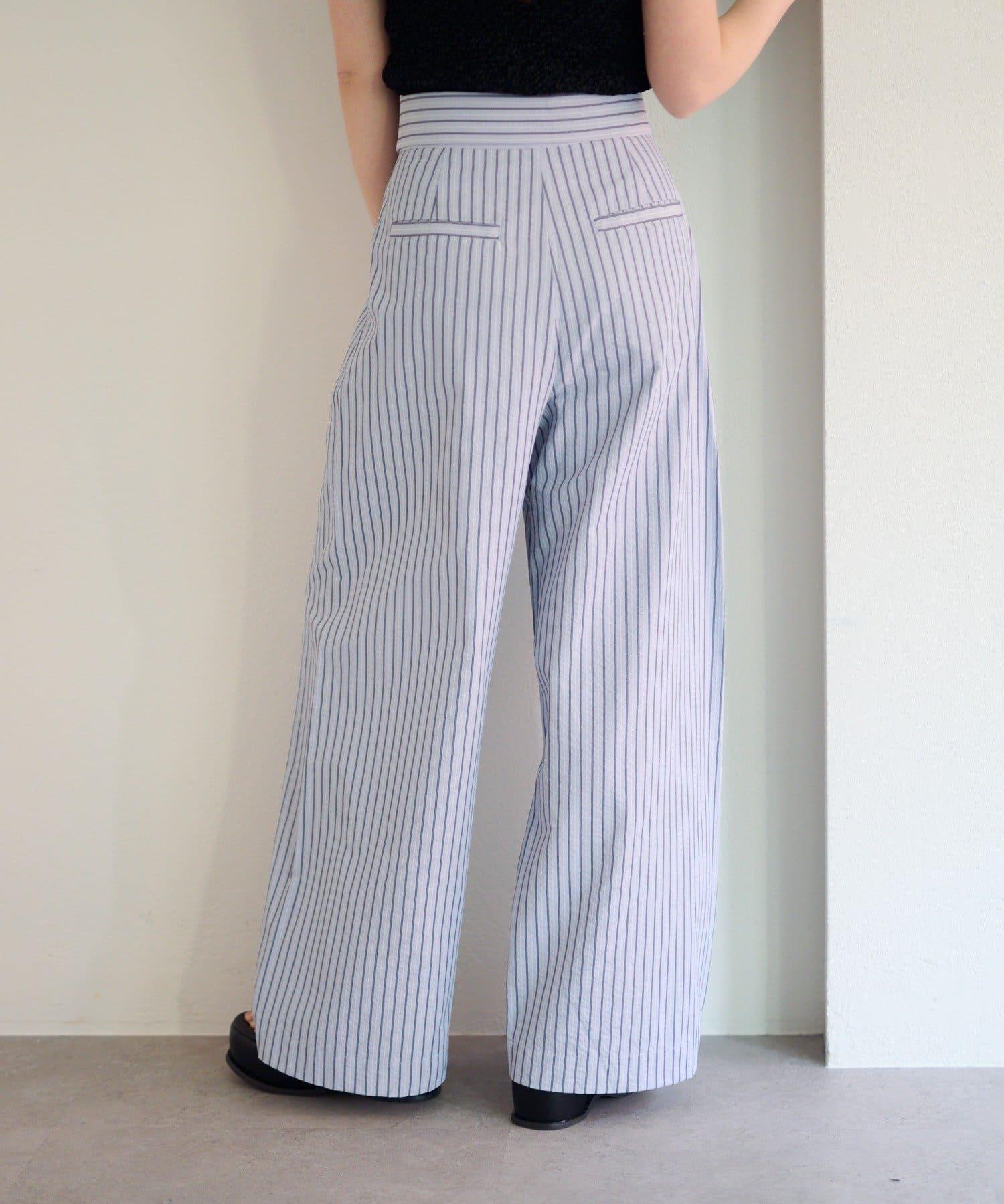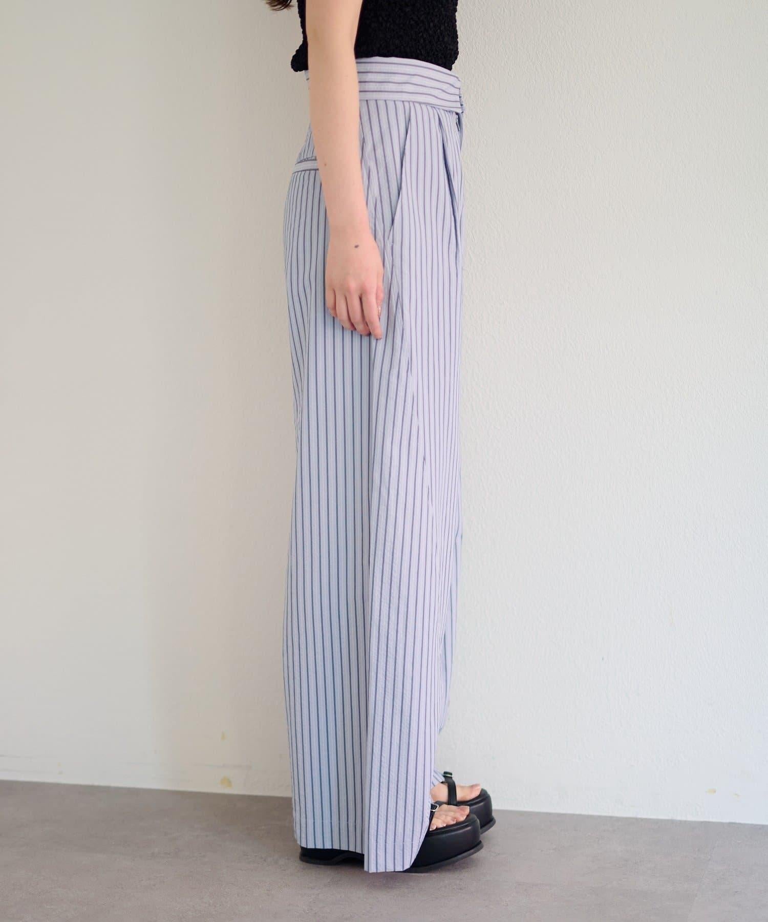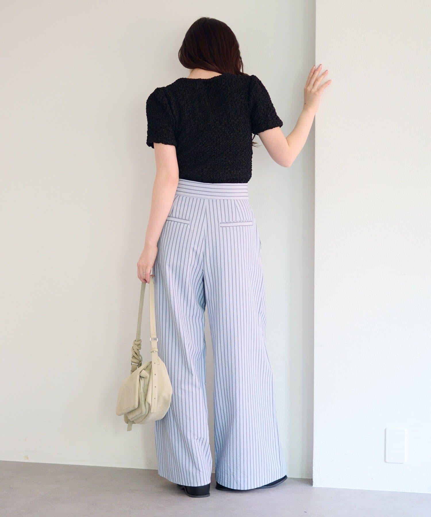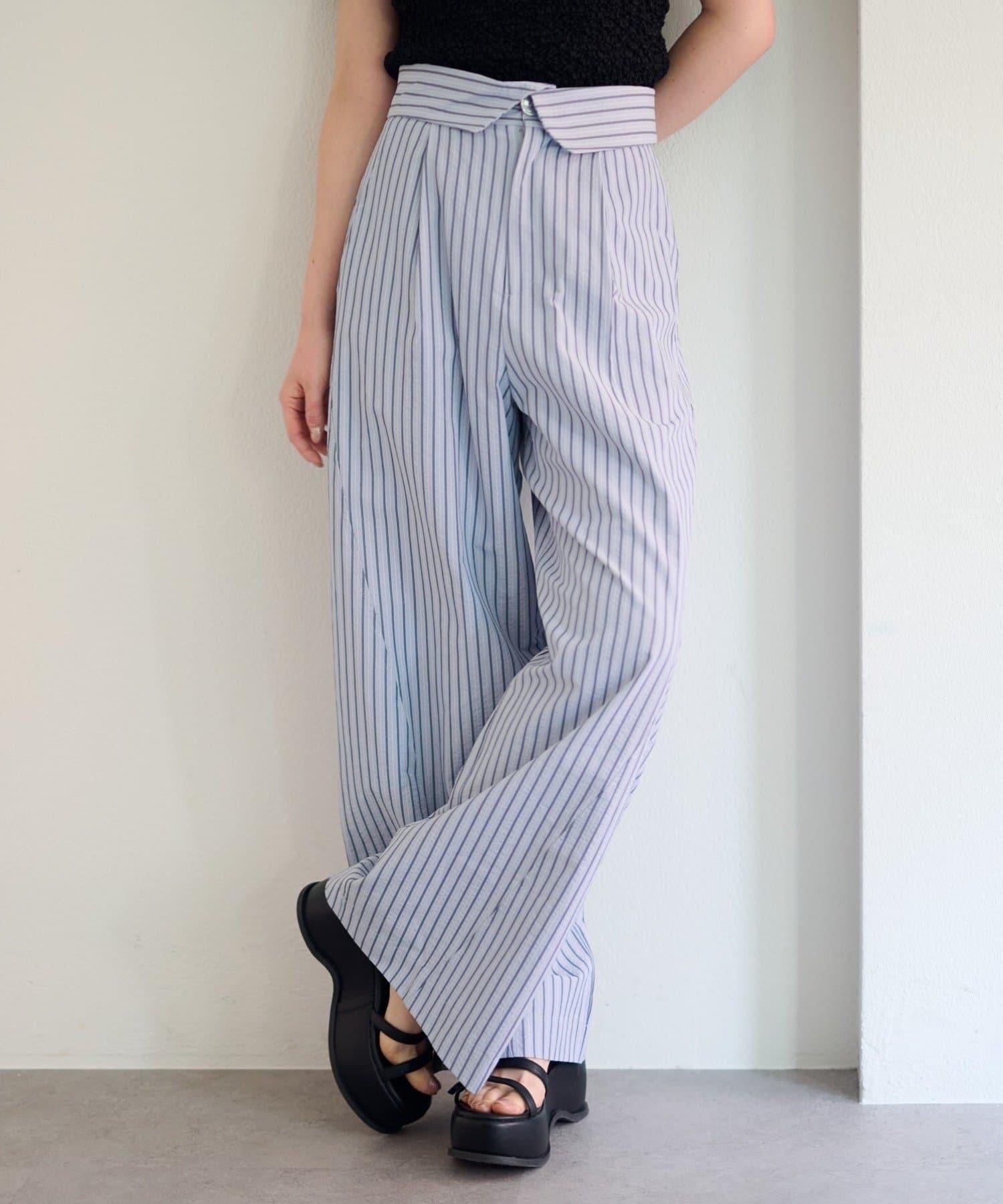 條紋長褲,既寬鬆又整潔。