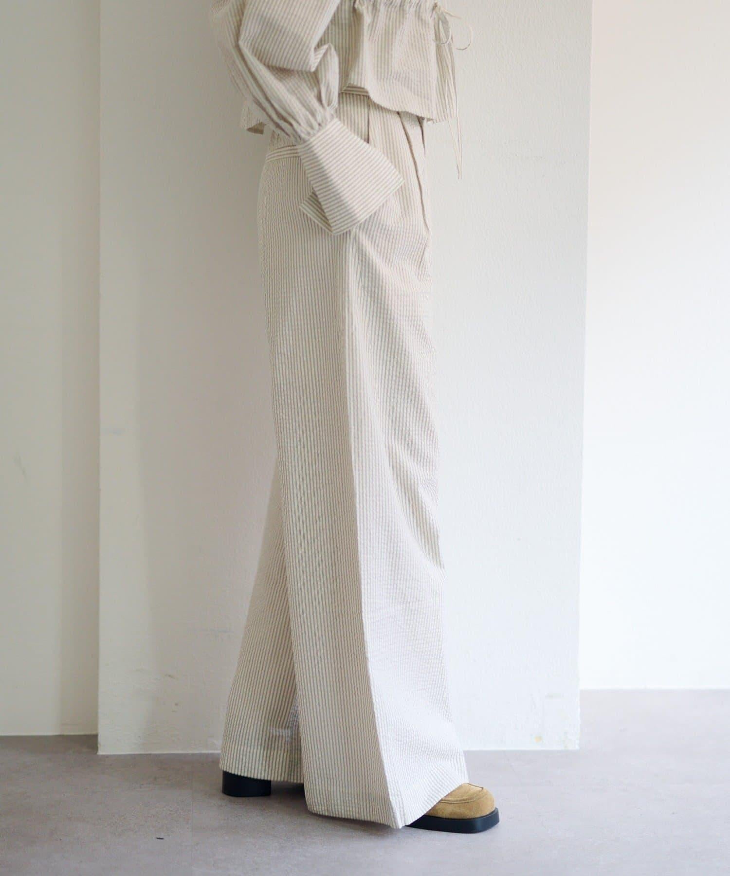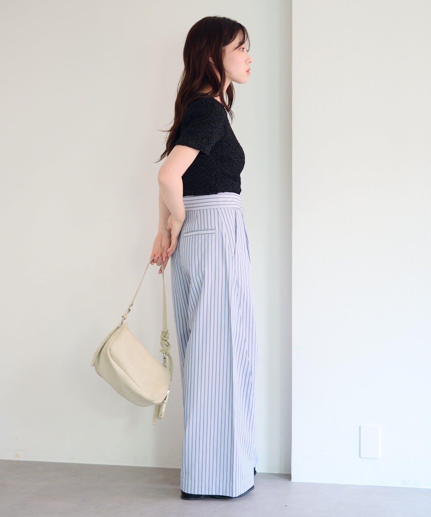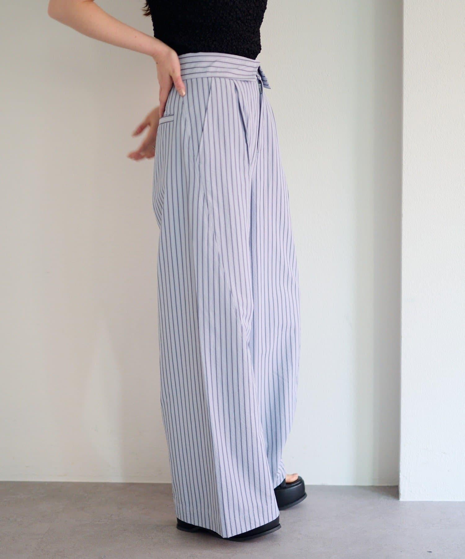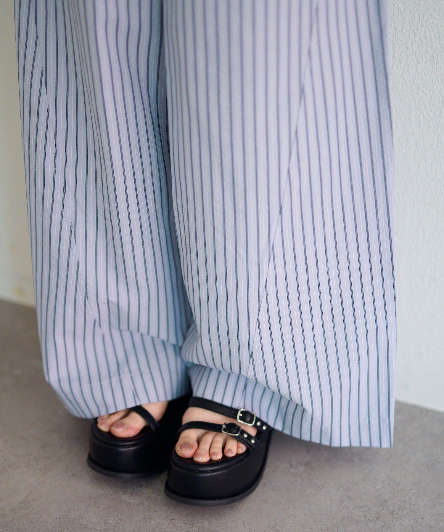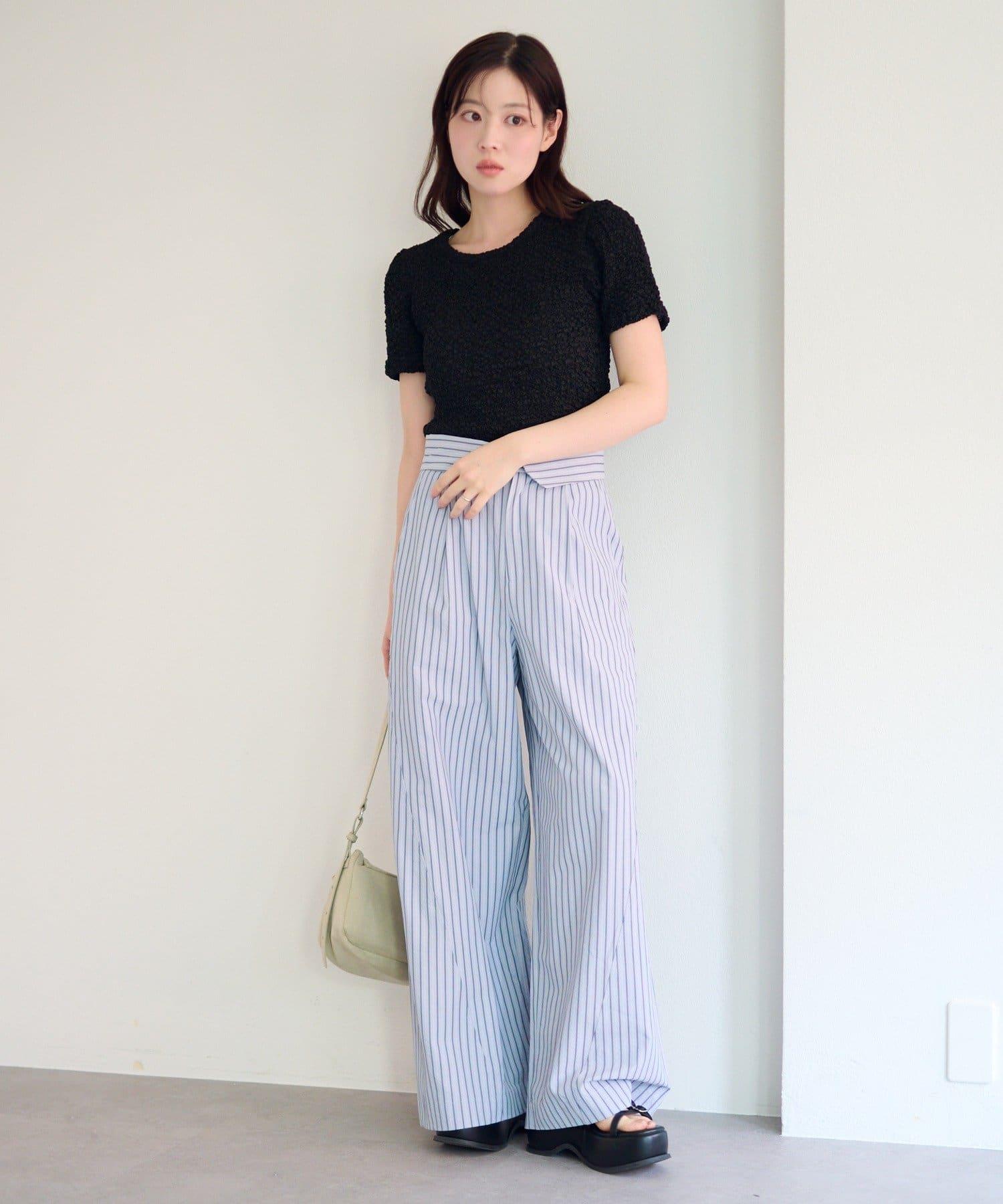 條紋長褲,既寬鬆又整潔。