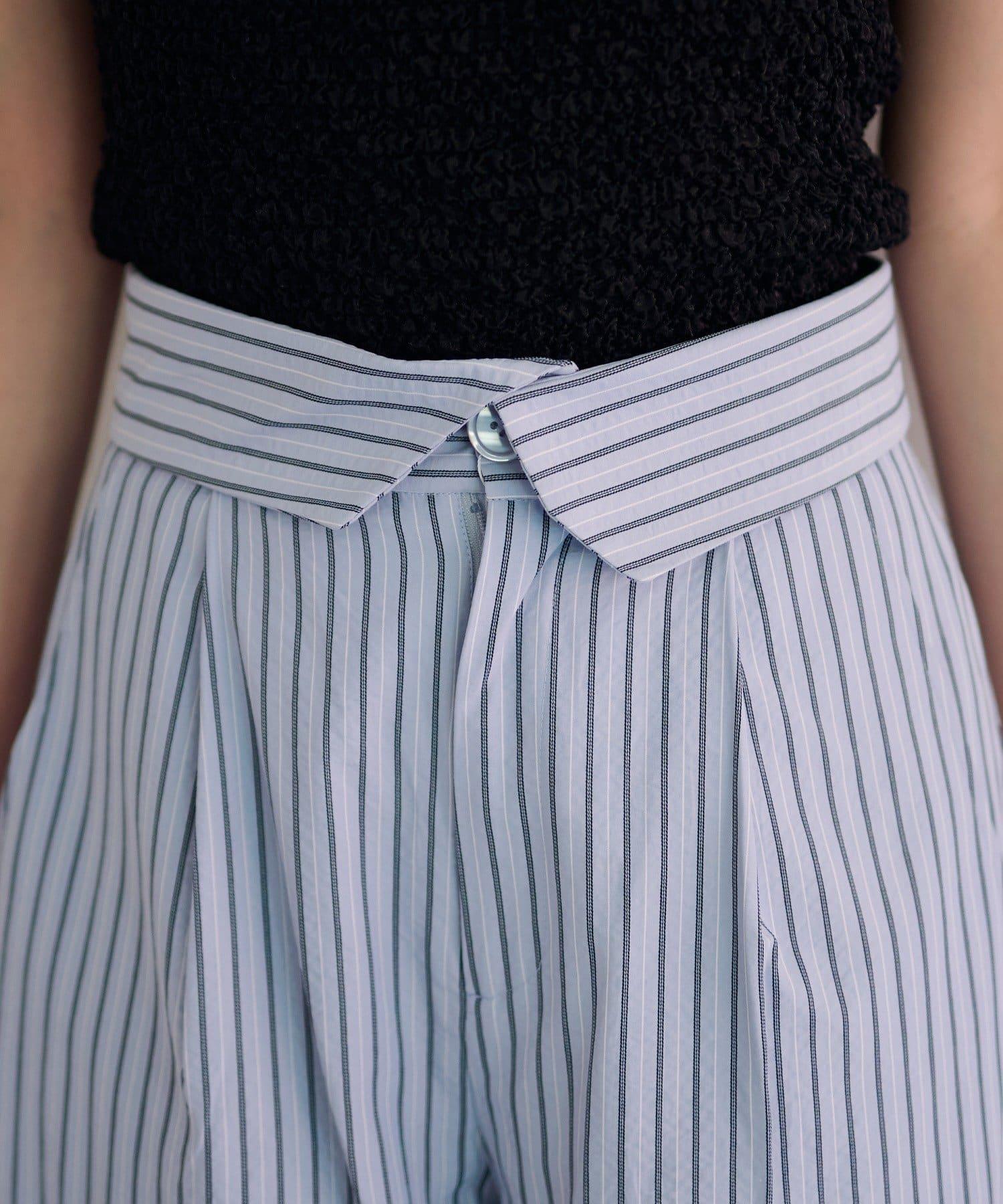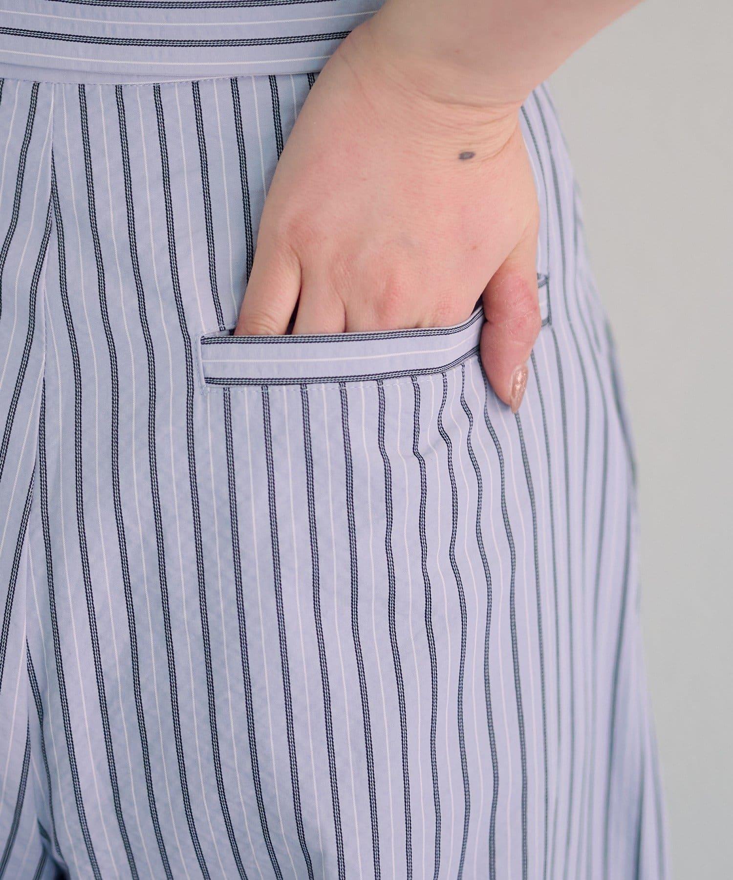 條紋翻蓋設計褲子
