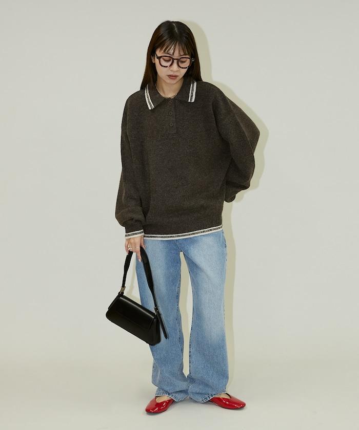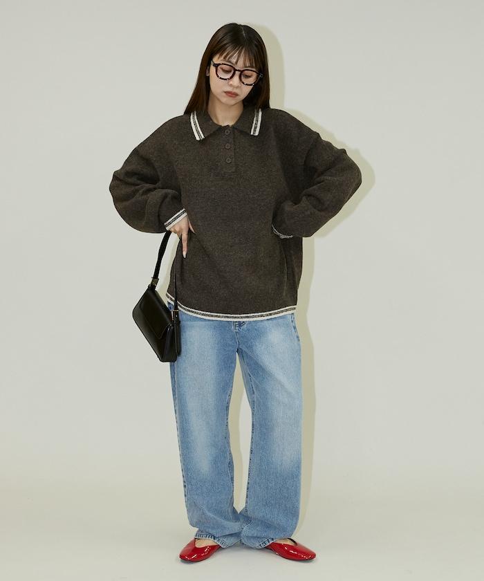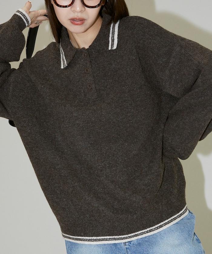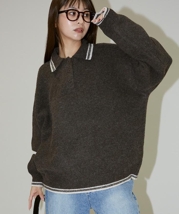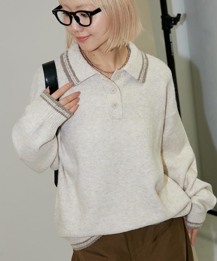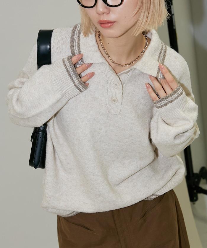 領口和袖口以線條點綴。Polo 針織衫非常適合成人休閒裝。