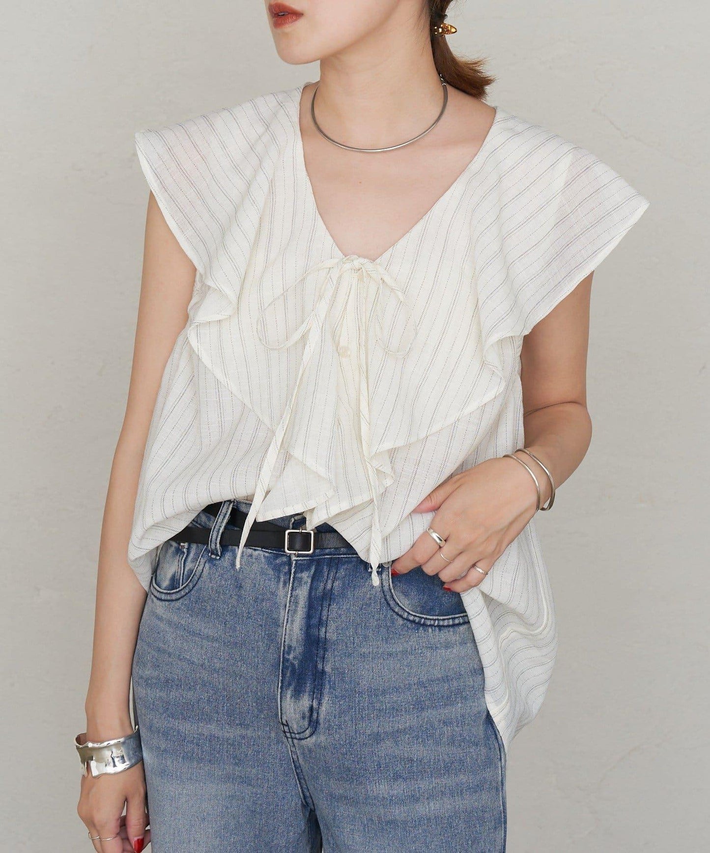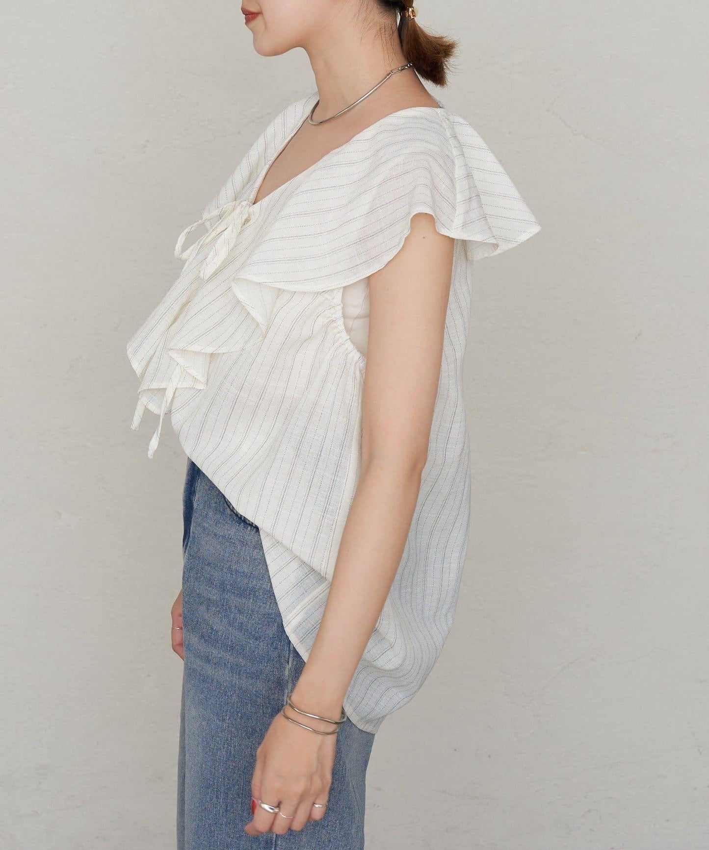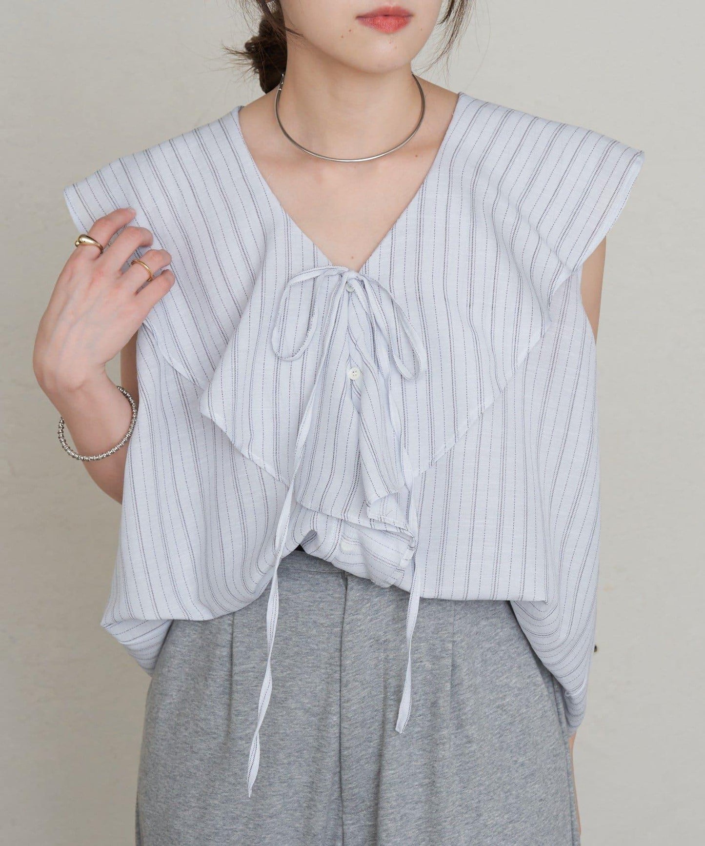 帶流蘇的大領子給人環繞臉部的華麗印象。