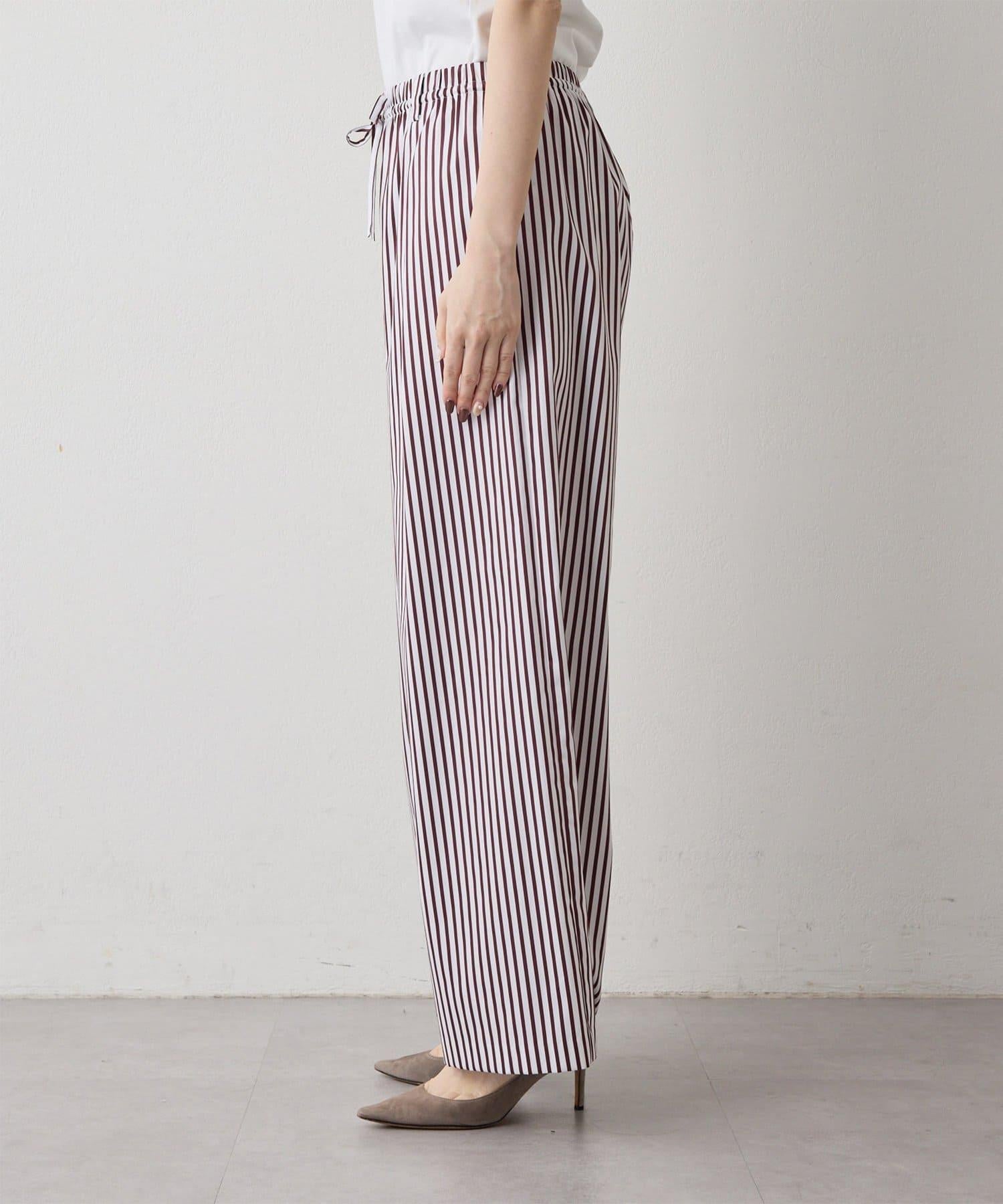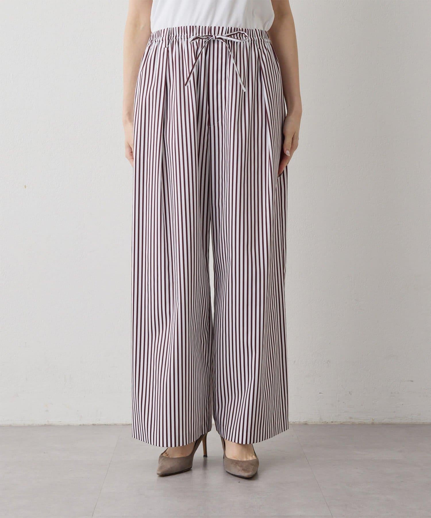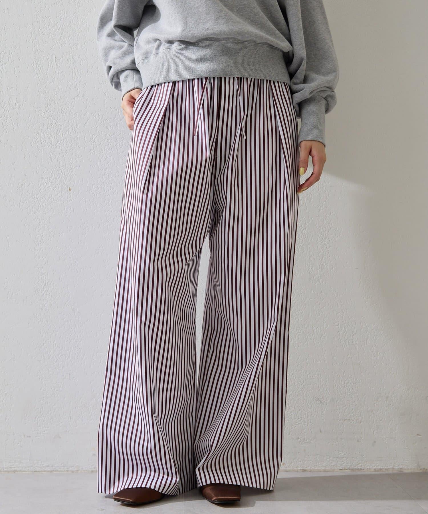 條紋圖案寬褲,強調垂直線條,外觀簡潔。