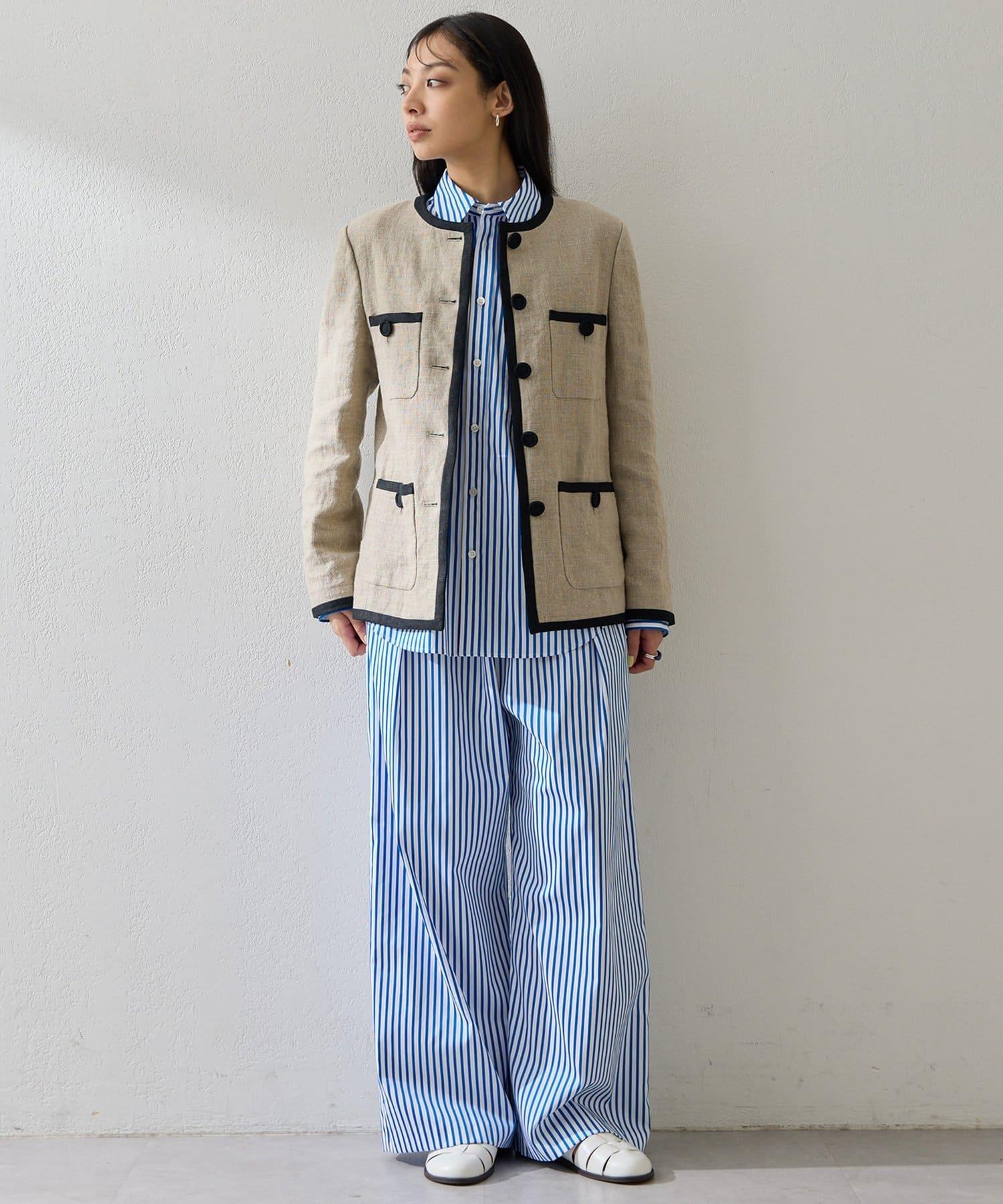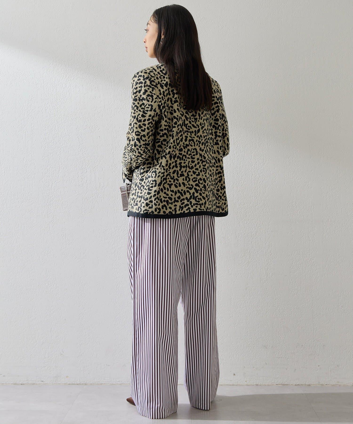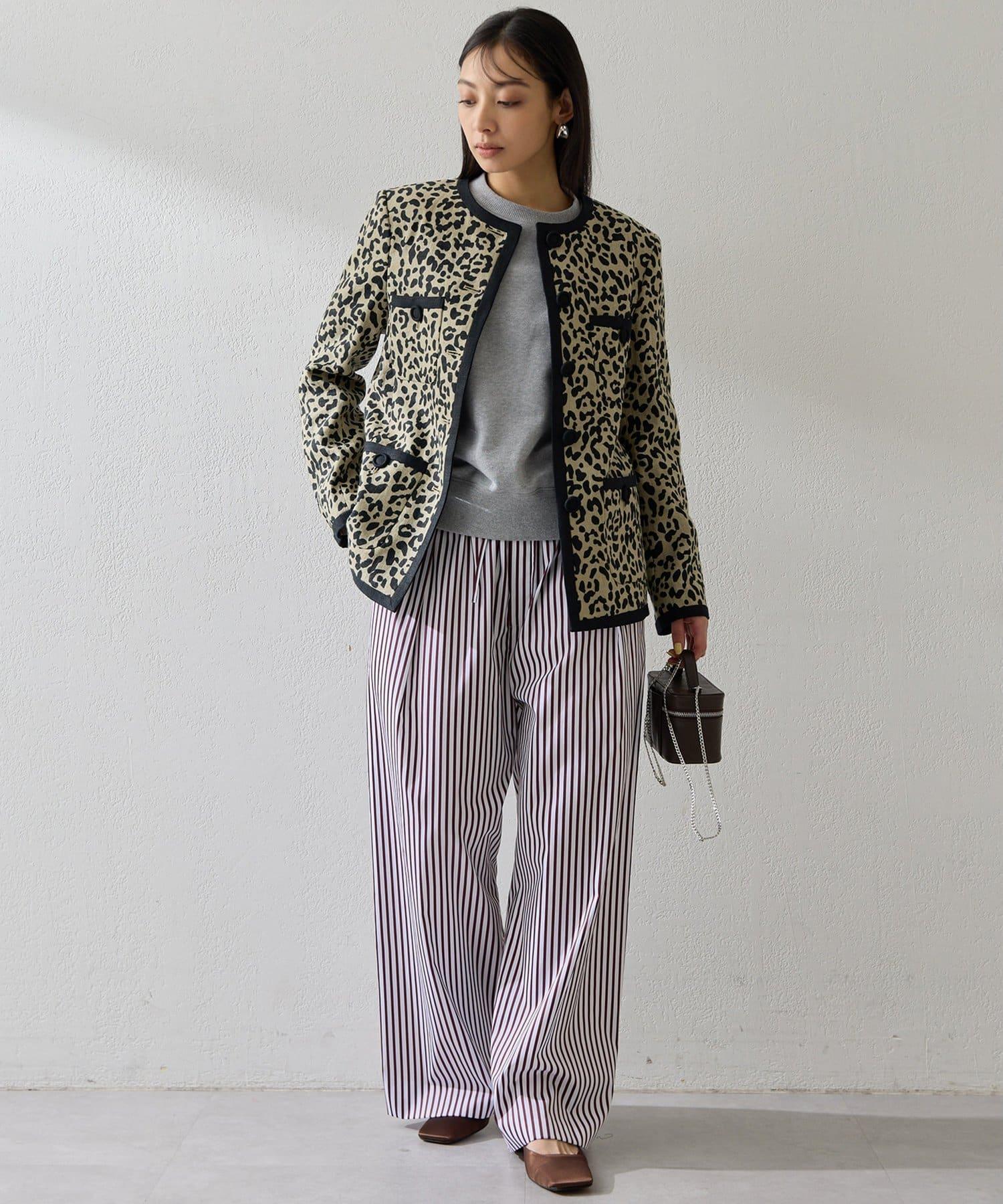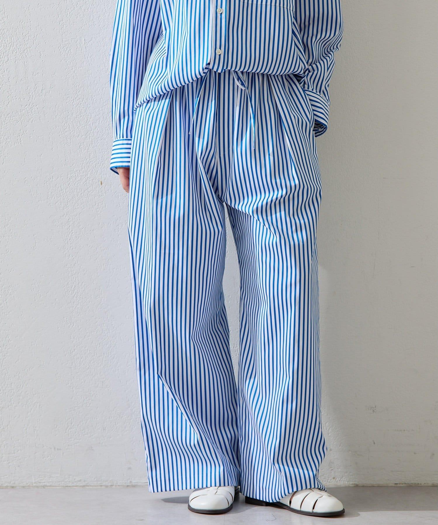 條紋圖案寬褲,強調垂直線條,外觀簡潔。