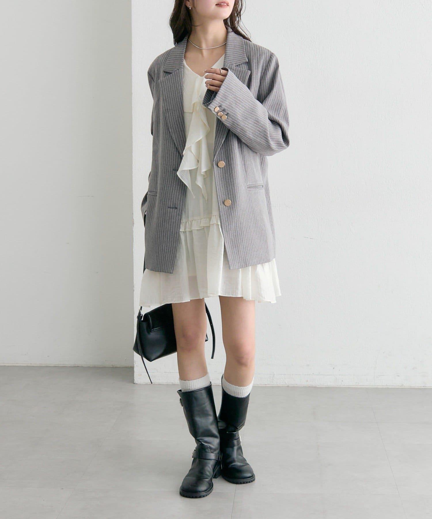 外搭迷你連衣裙,盡顯成熟女性風範。