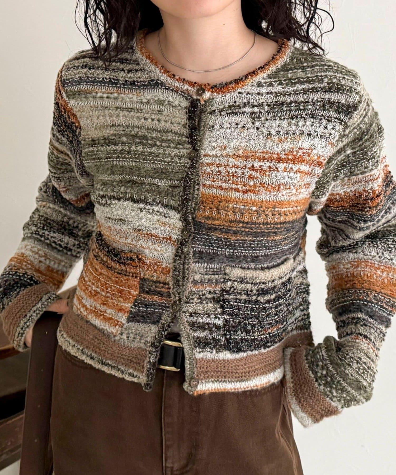 粗花呢條紋開衫
