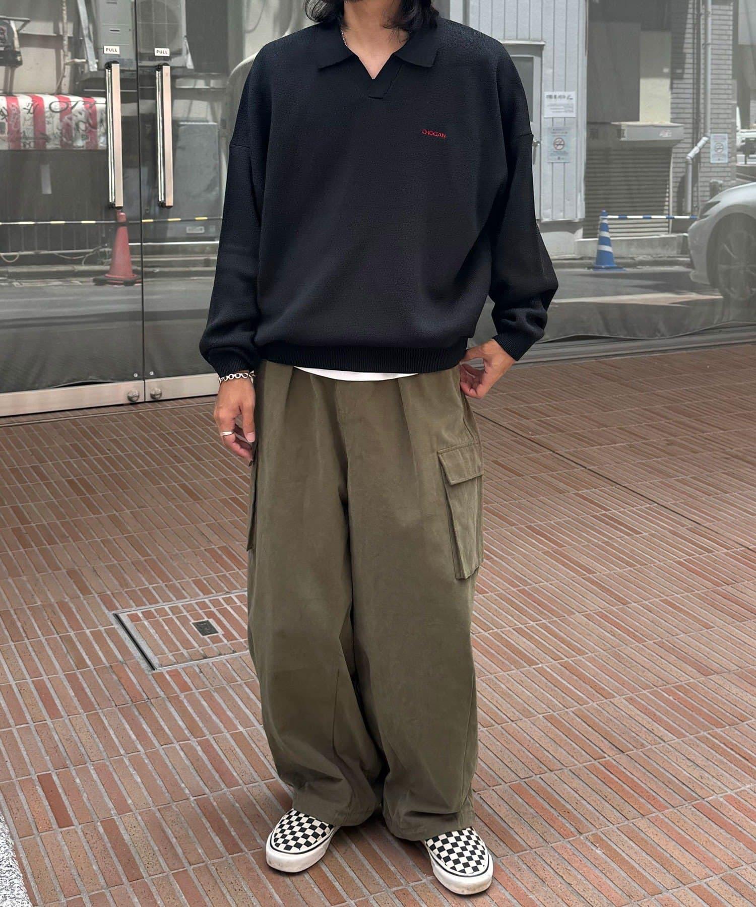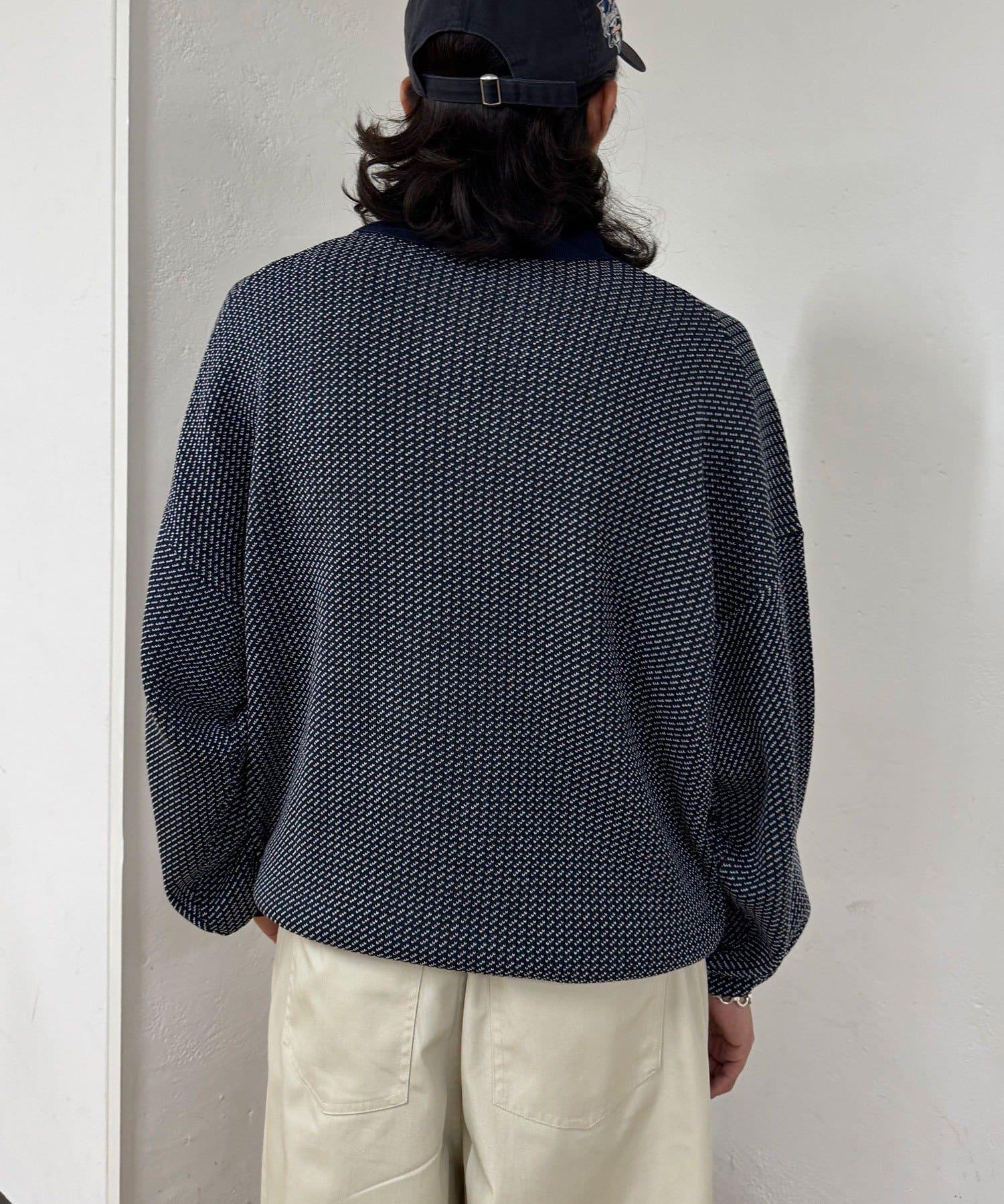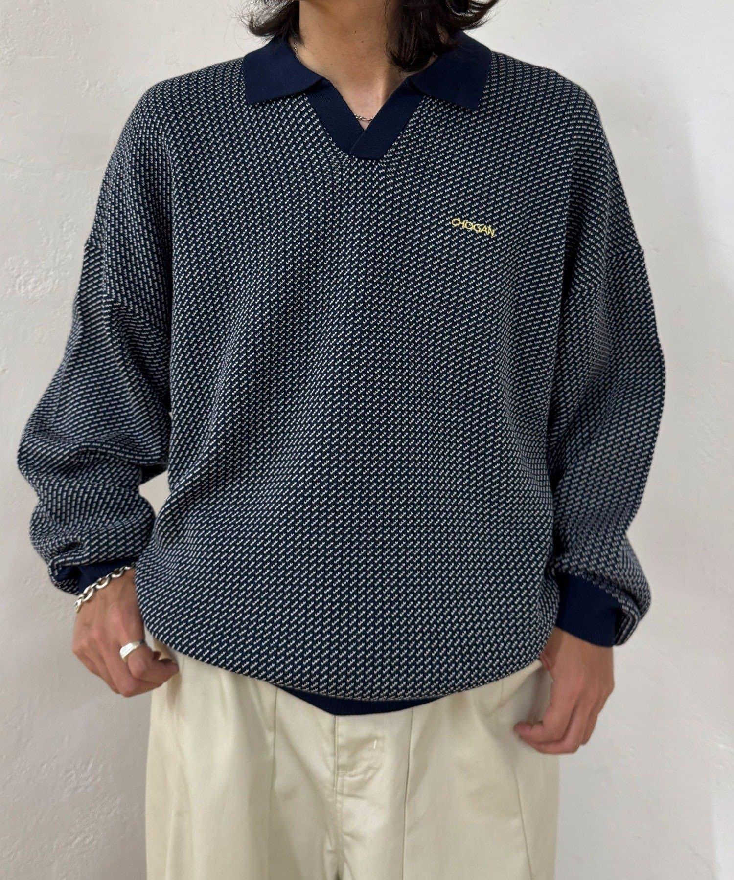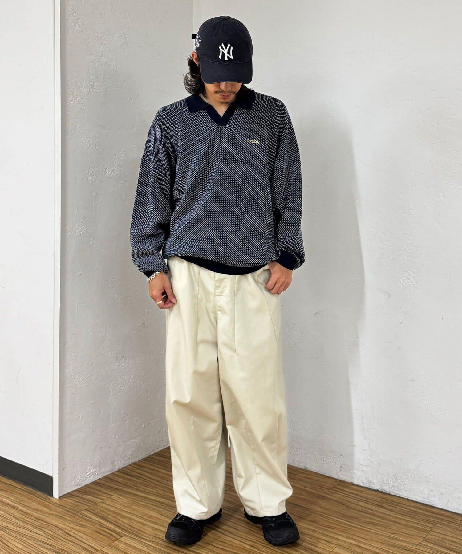 寬鬆廓形的針織 Polo 衫,看起來十分摩登。