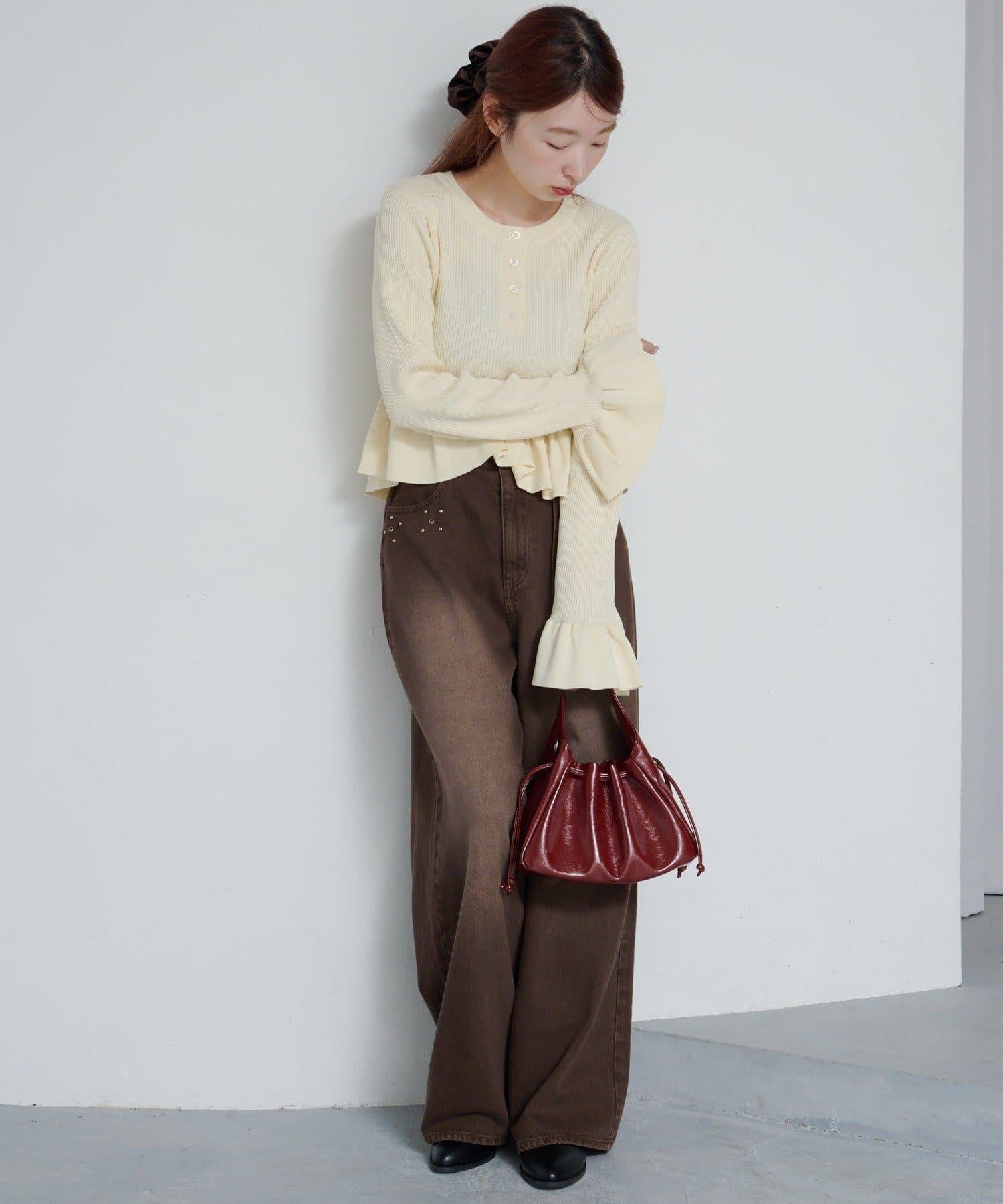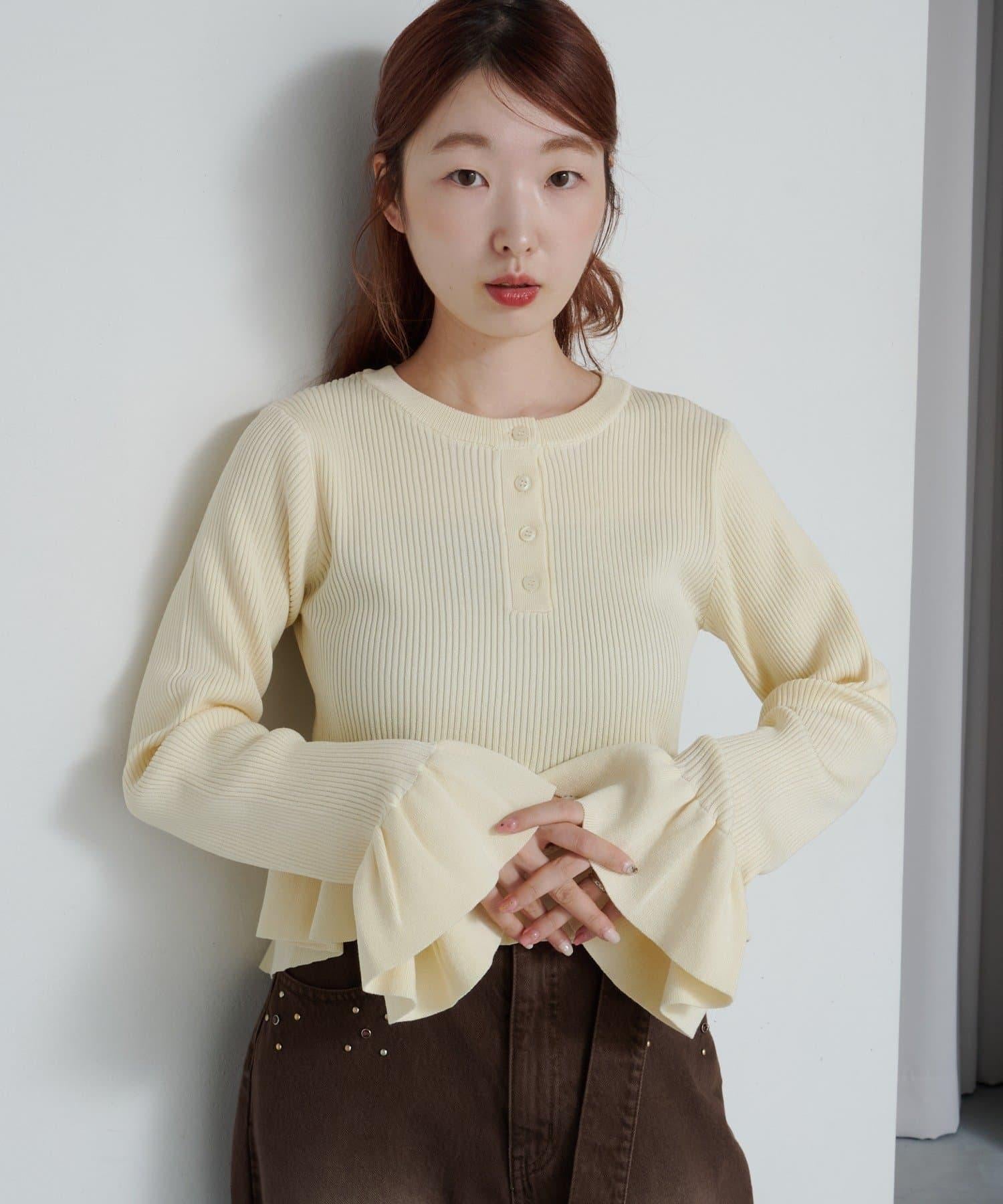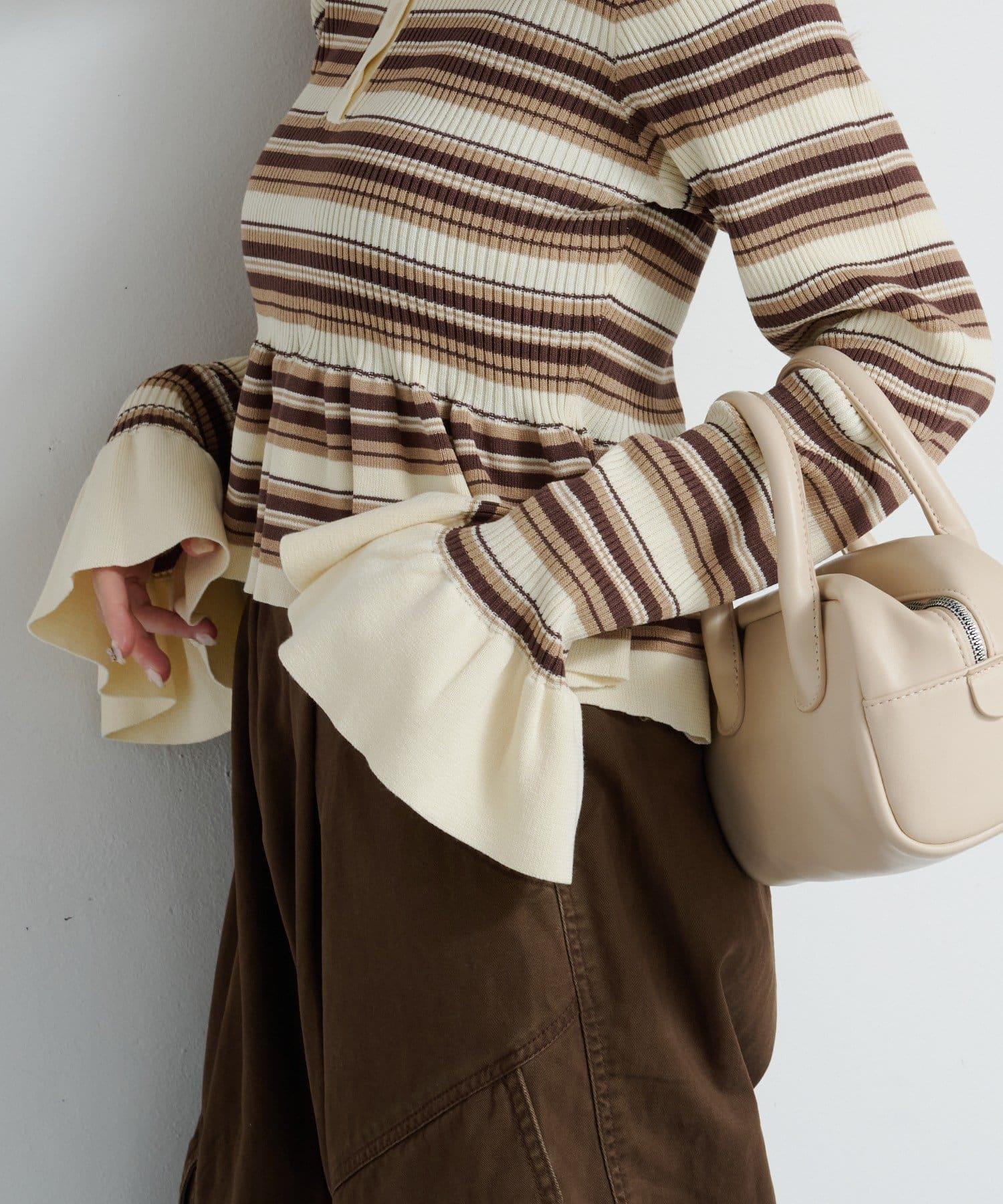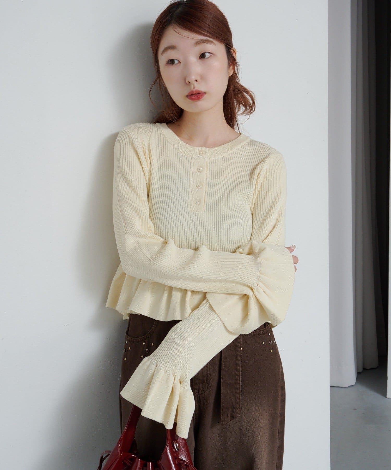 下襬和袖口處的飄帶式褶邊增添了簡約而柔美的氣質。