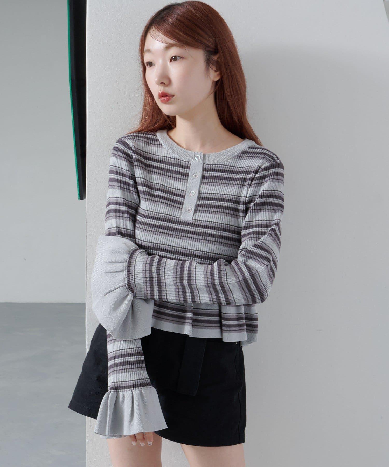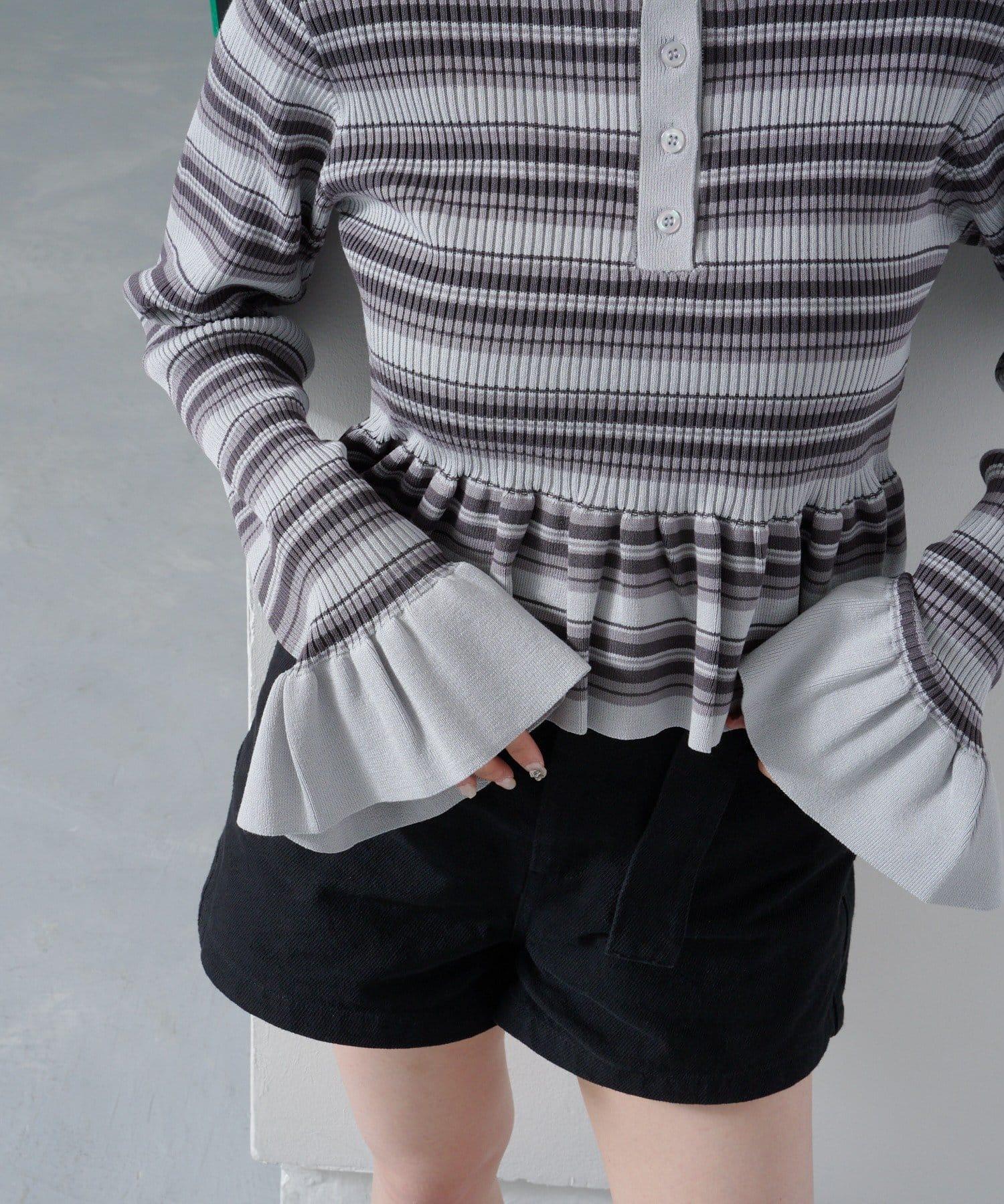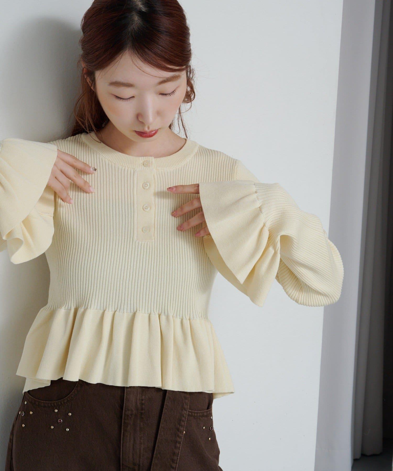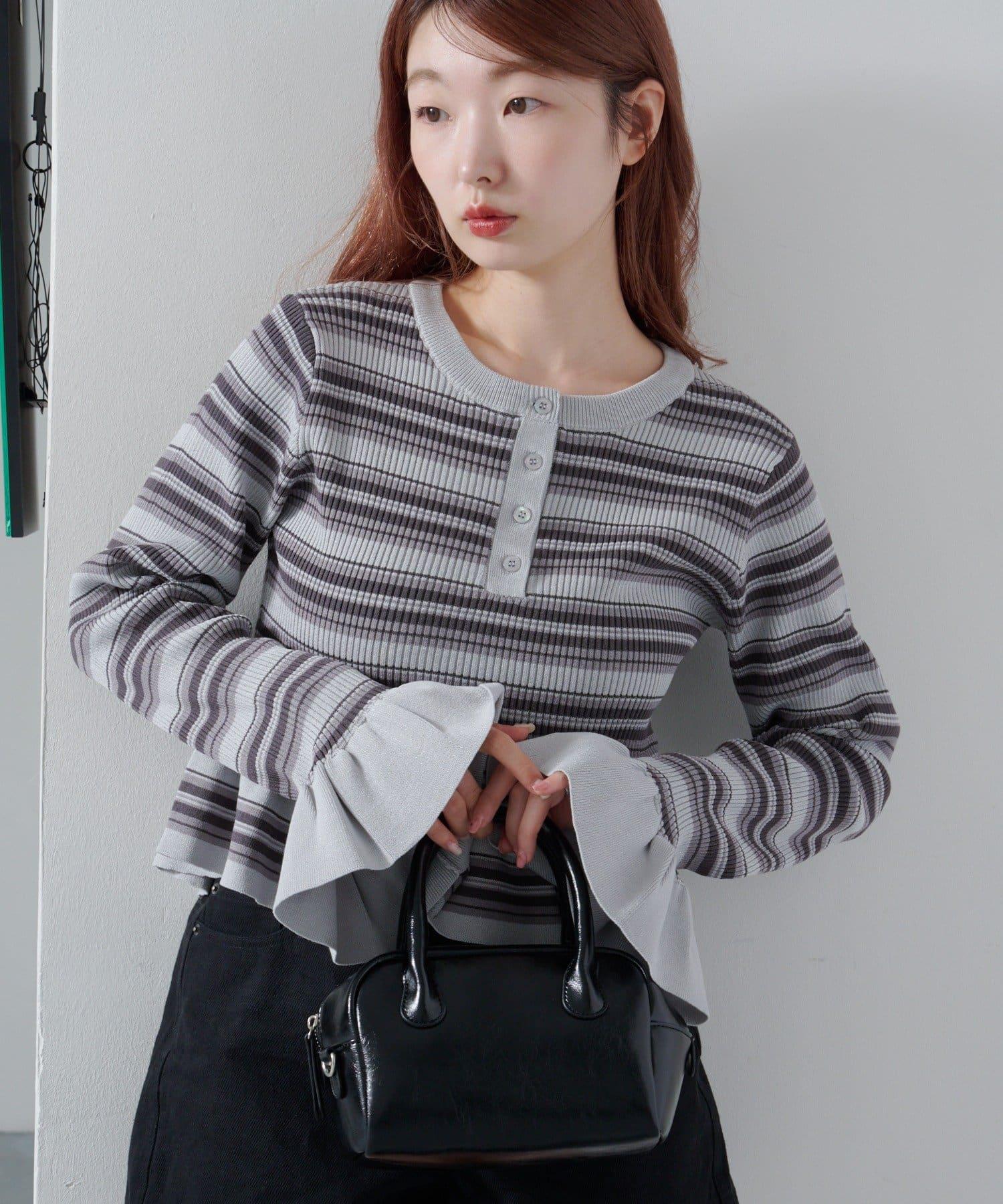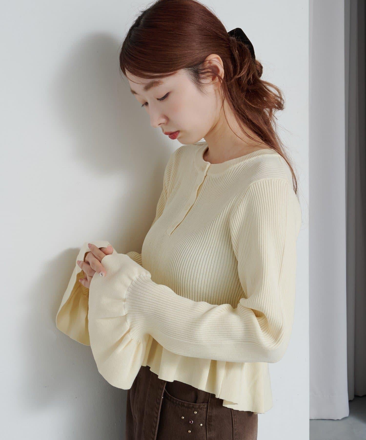 下襬和袖口處的飄帶式褶邊增添了簡約而柔美的氣質。