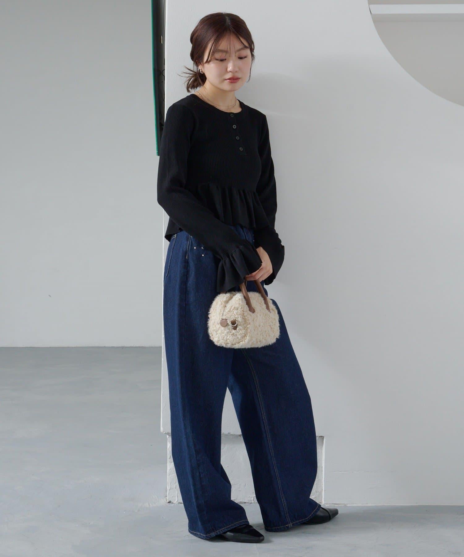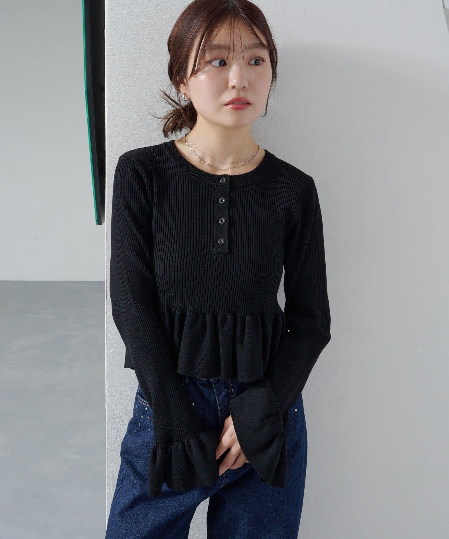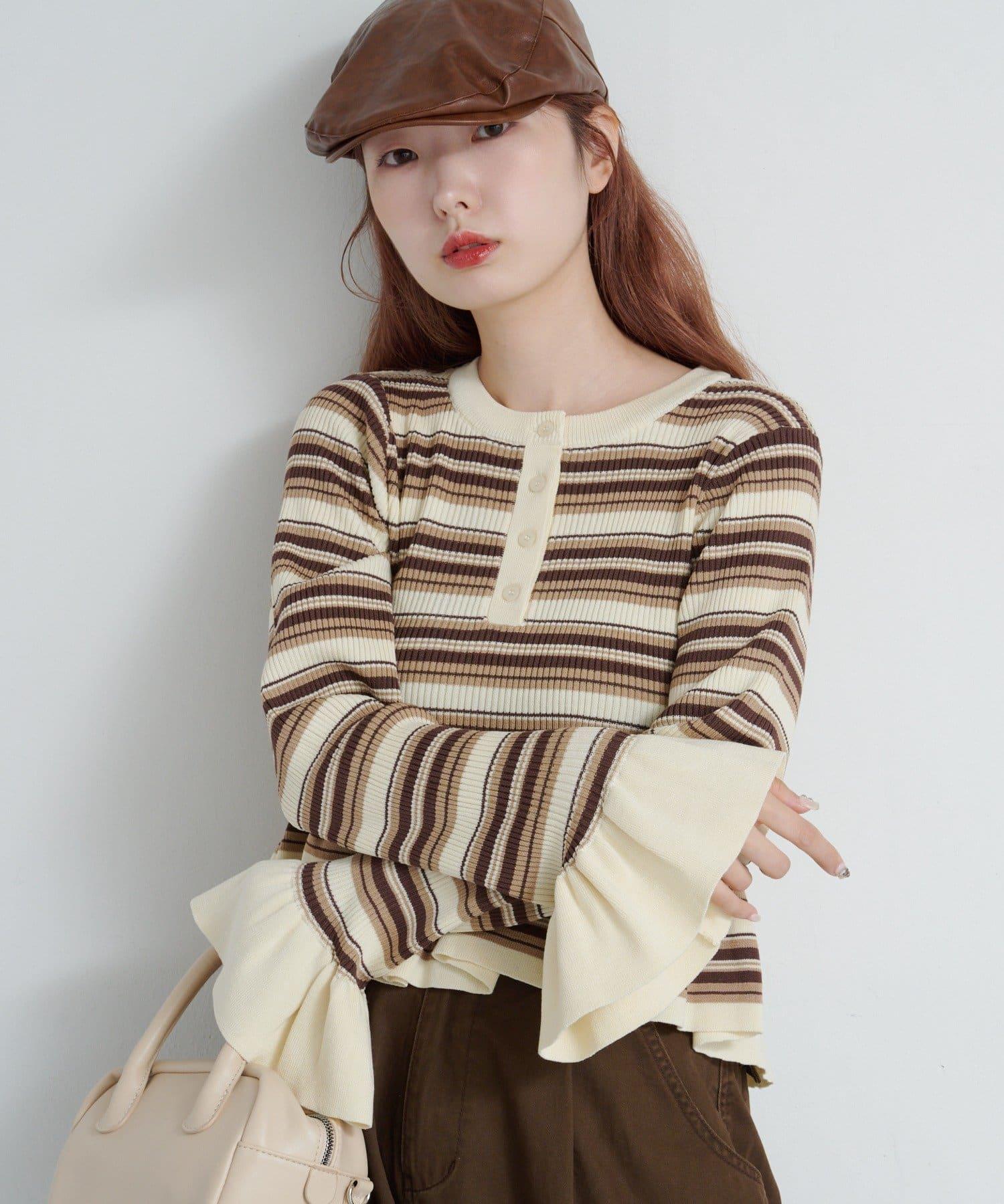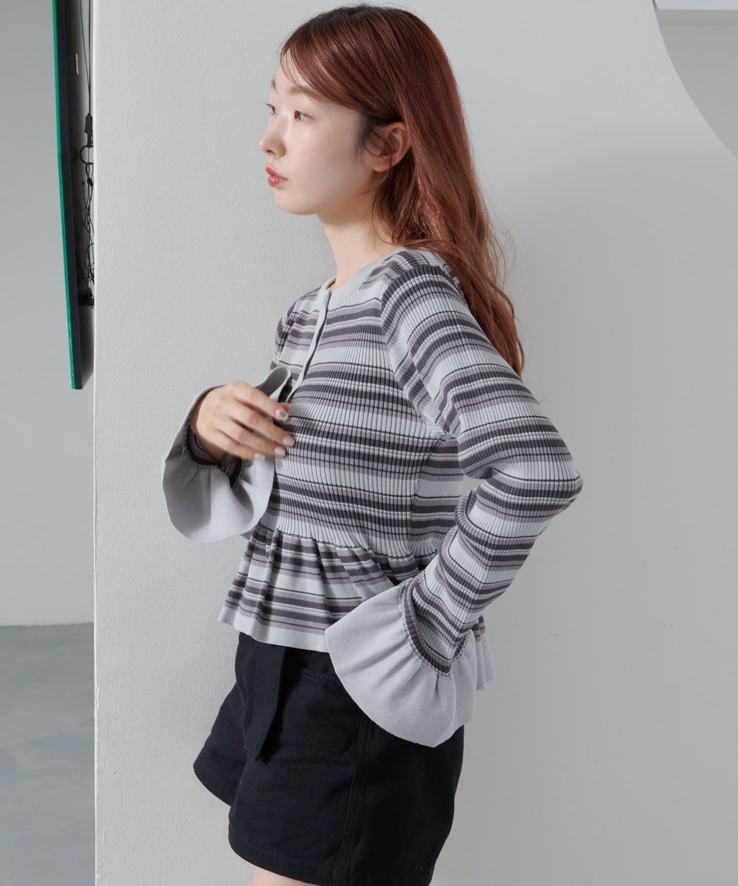 下襬和袖口處的飄帶式褶邊增添了簡約而柔美的氣質。