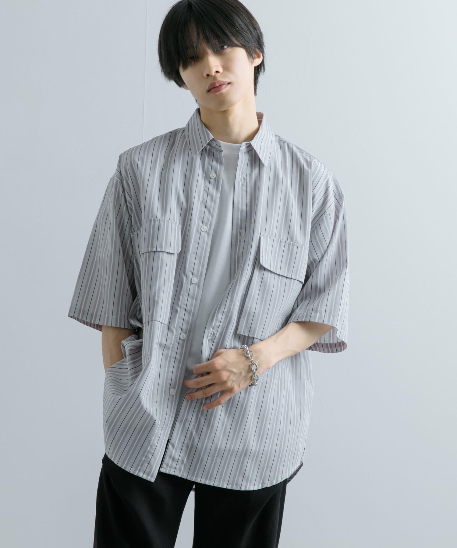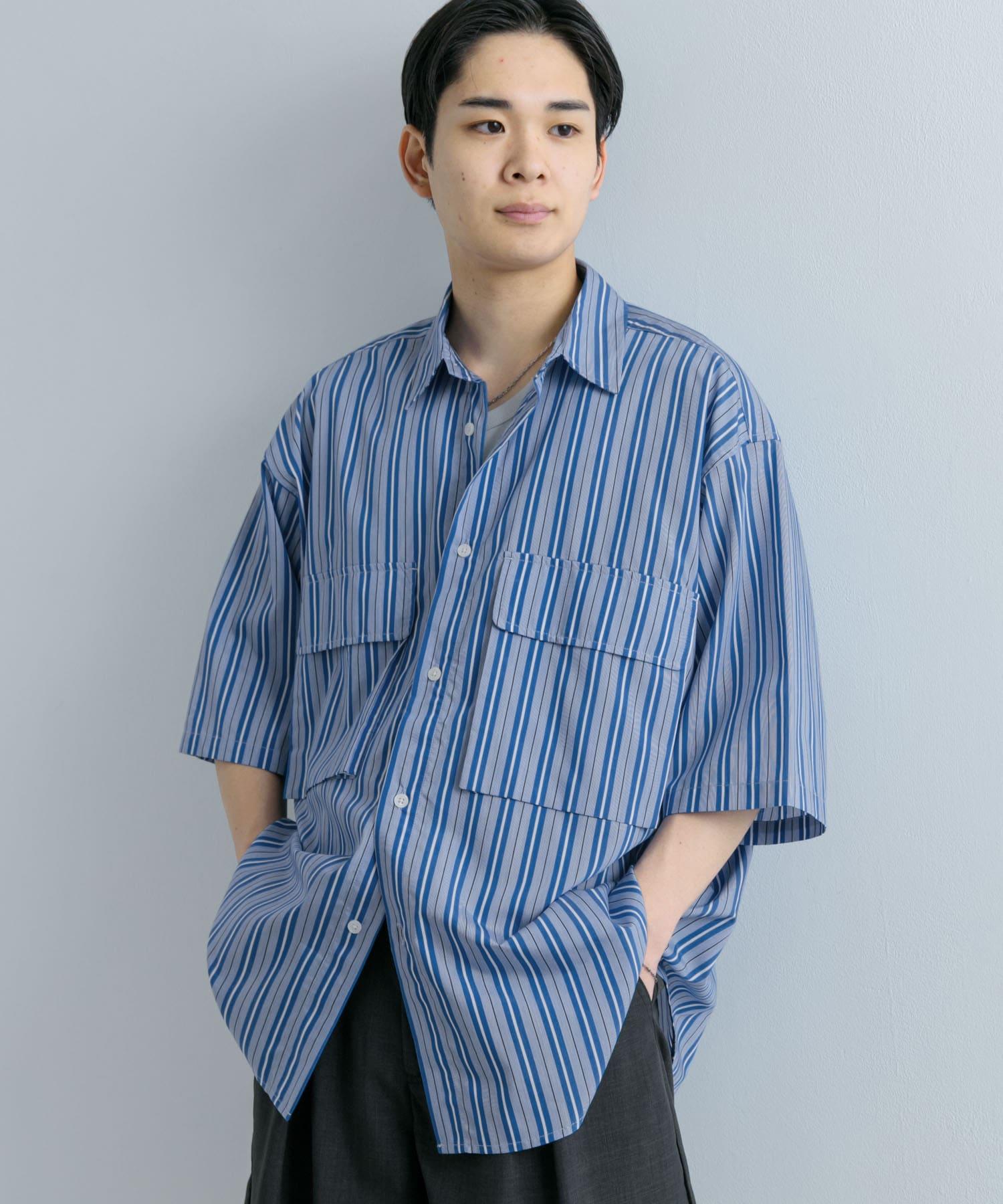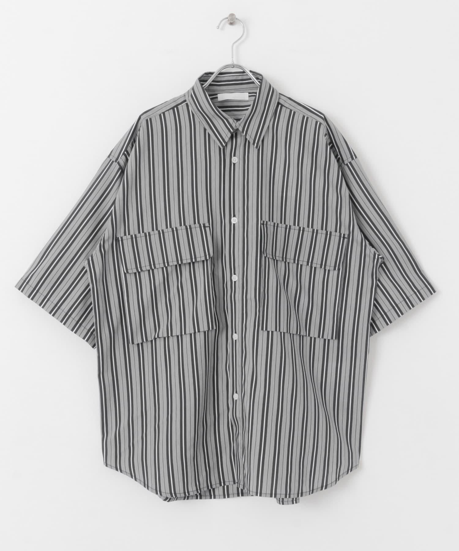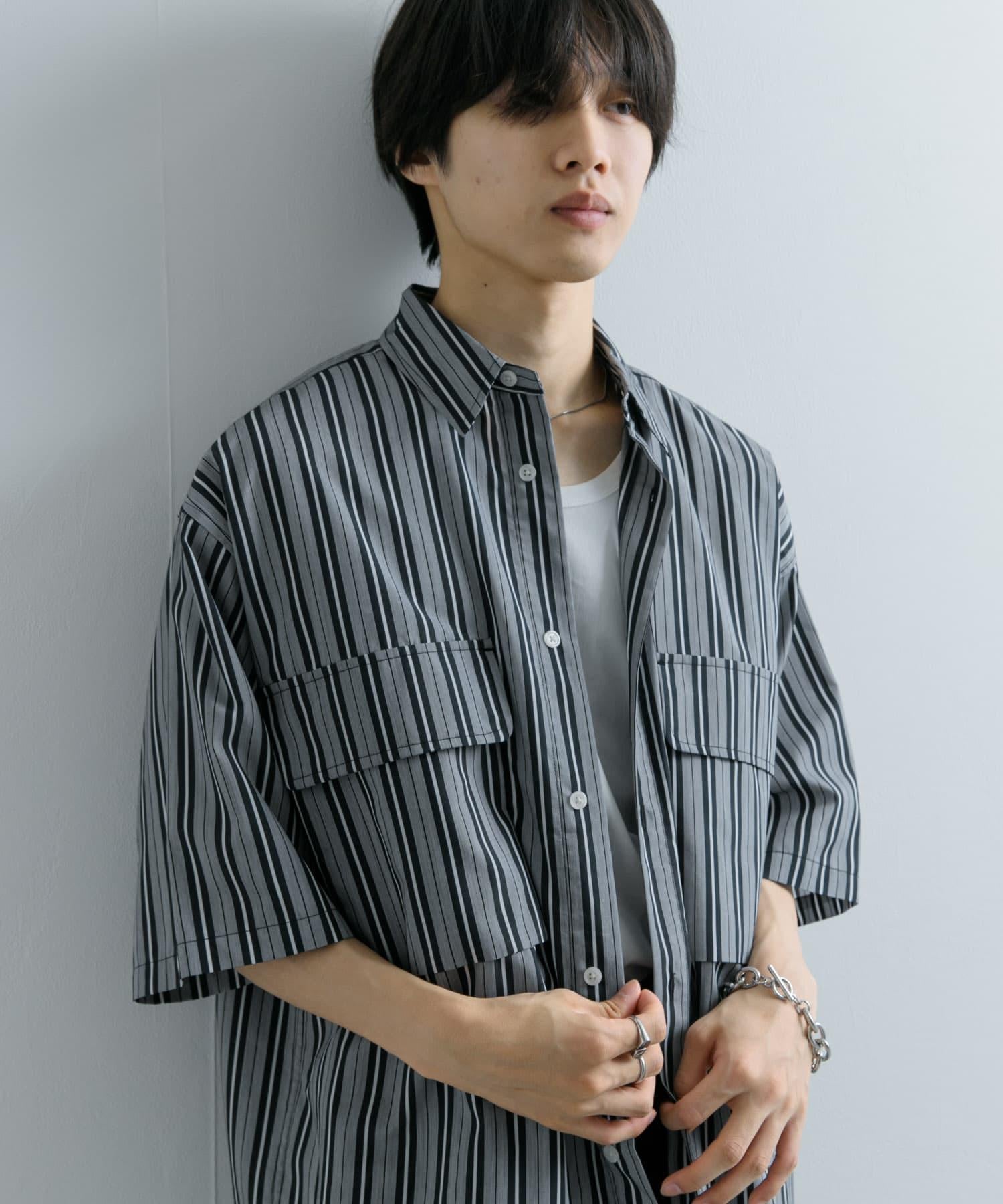 條紋CPO寬鬆襯衫(五分袖)