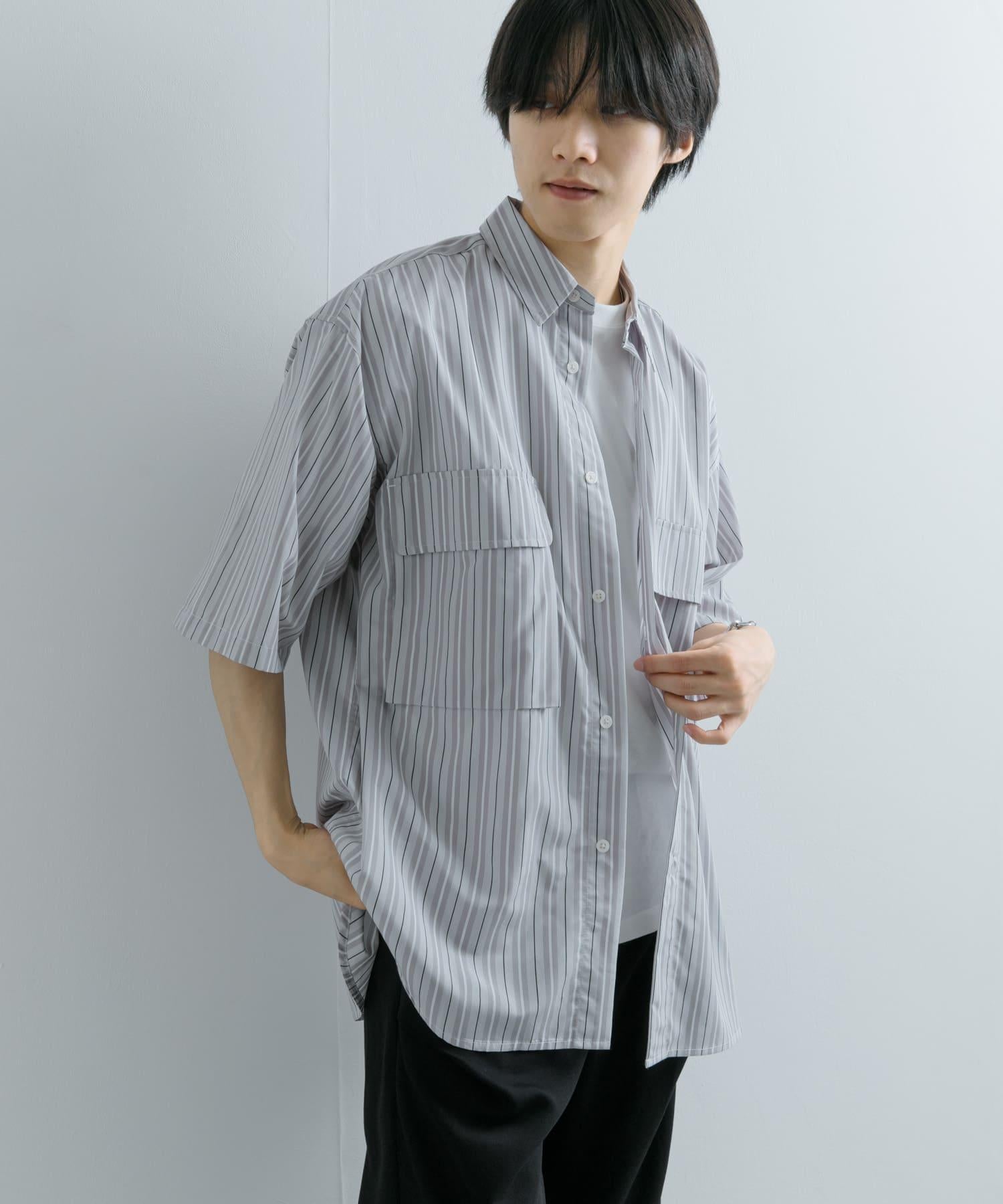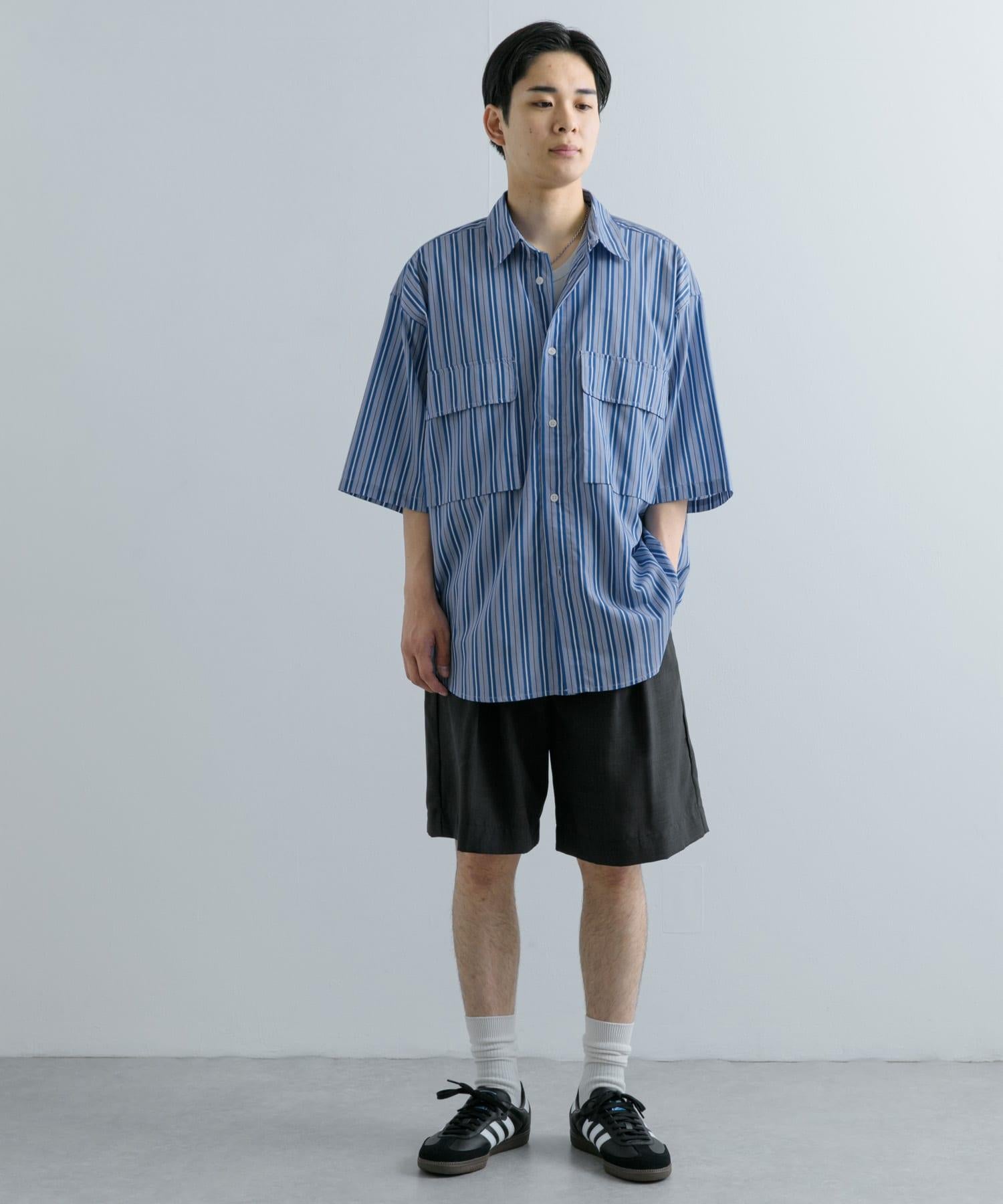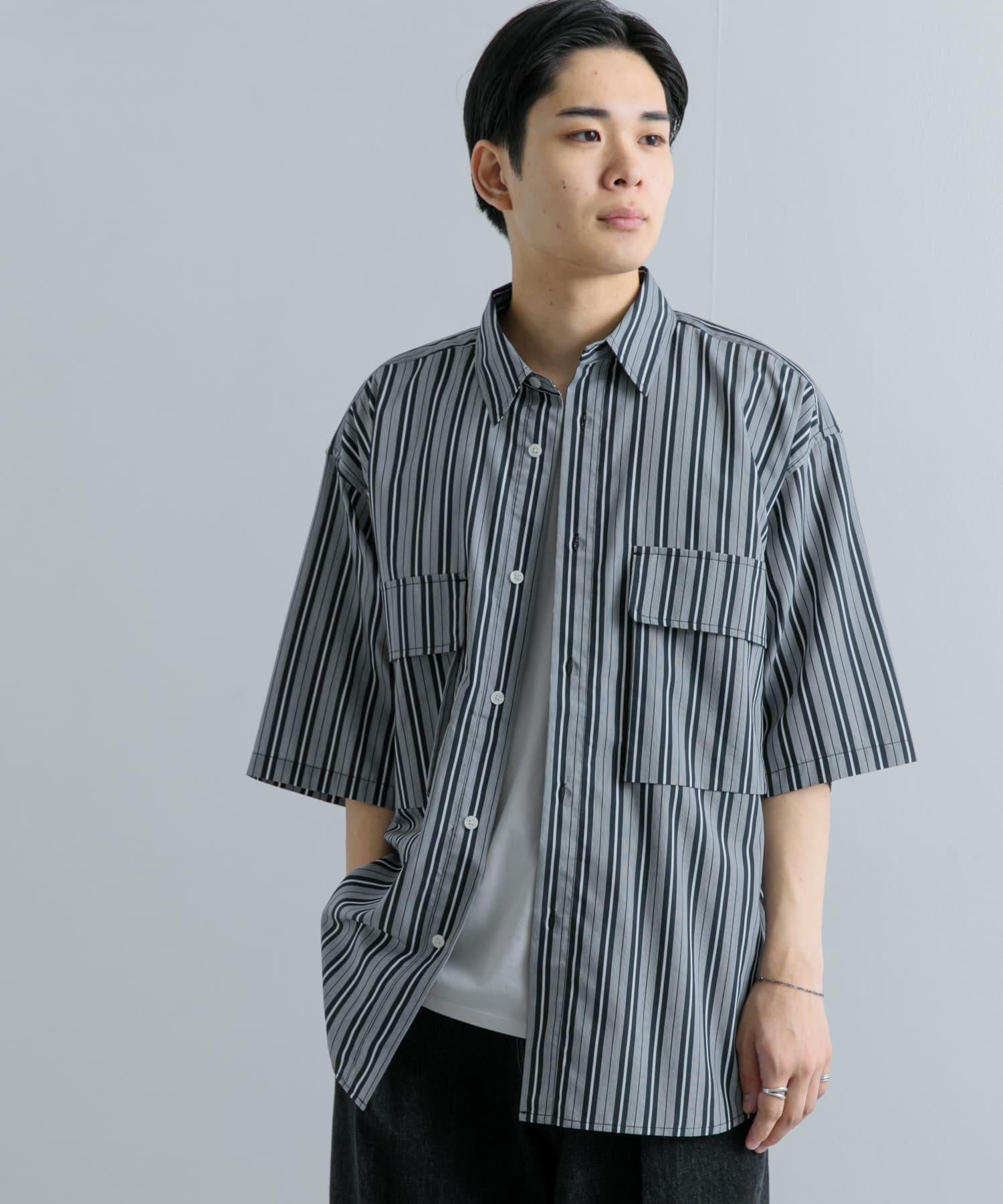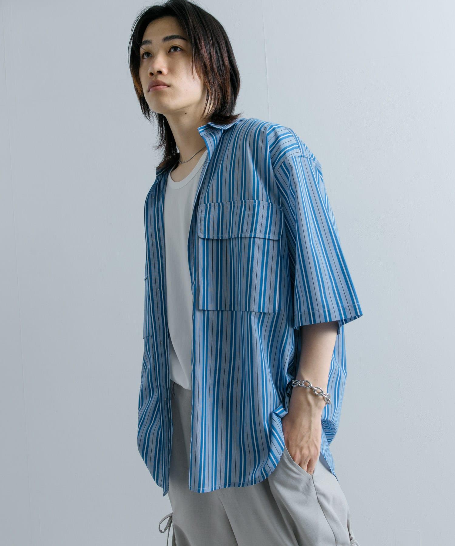 條紋CPO寬鬆襯衫(五分袖)